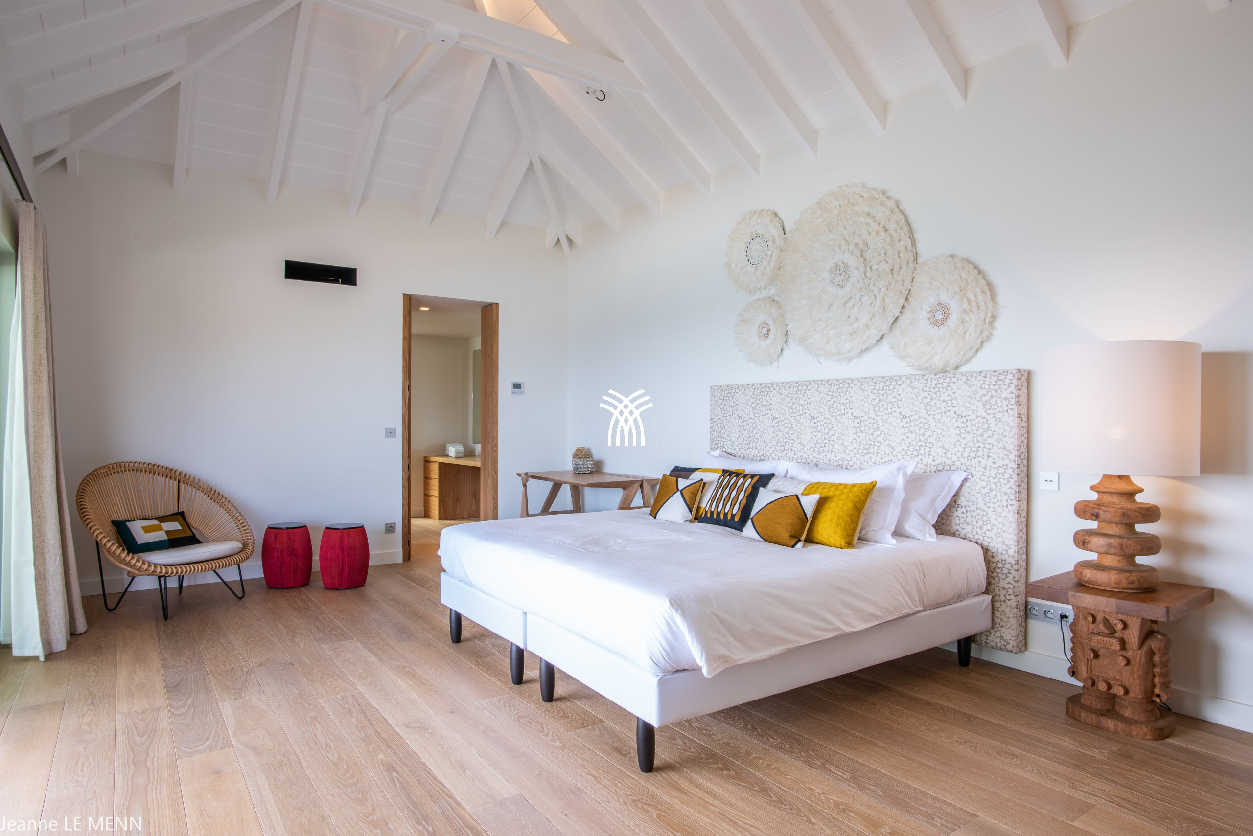 Nestled in the prestigious private Domain of Levant in Petit Cul-de-Sac, Villa Lagon Vert illustrates the art of luxury villa rental in Saint-Barth. Recently renovated, this exceptional property now features 7 elegant suites, each with high ceilings, large openings allowing an abundance of natural light, a private bathroom, and king-size beds that can be converted into twin beds according to your needs.