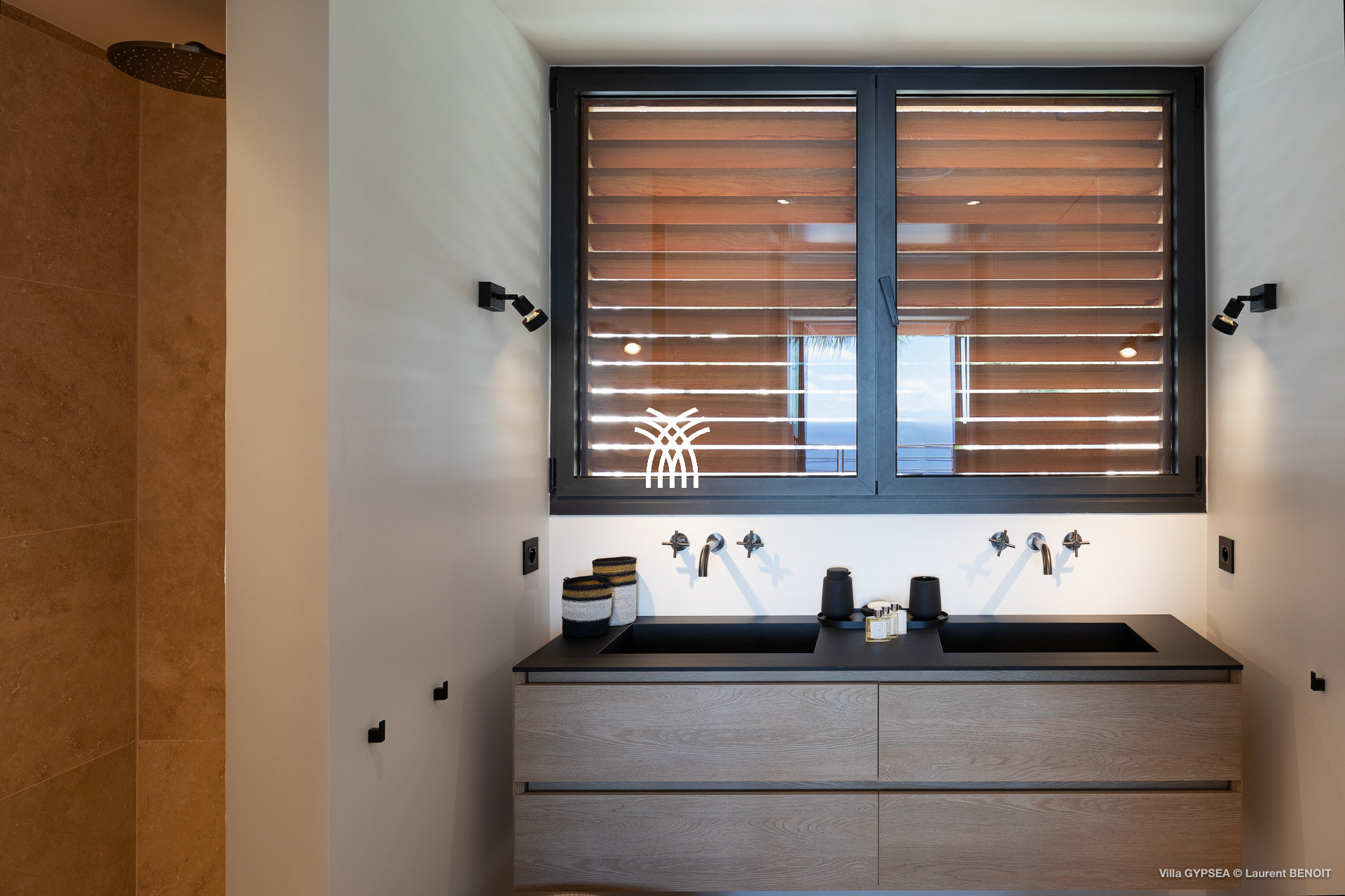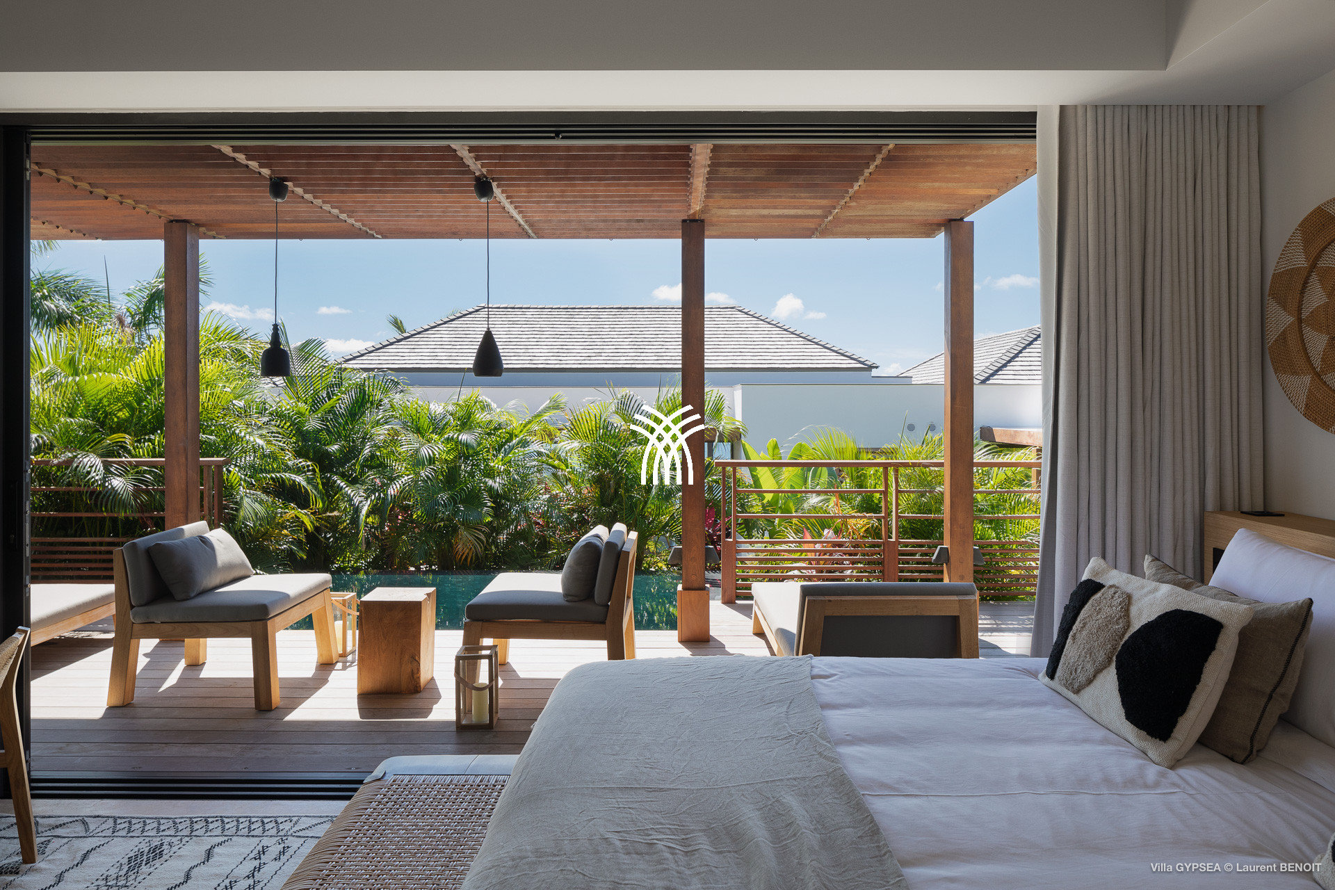 The modern design of the villa, its clean lines and spacious layout create an atmosphere that is both warm and sophisticated. The four bedrooms, all air-conditioned, have private bathrooms, and some have direct access to the terrace or pool.