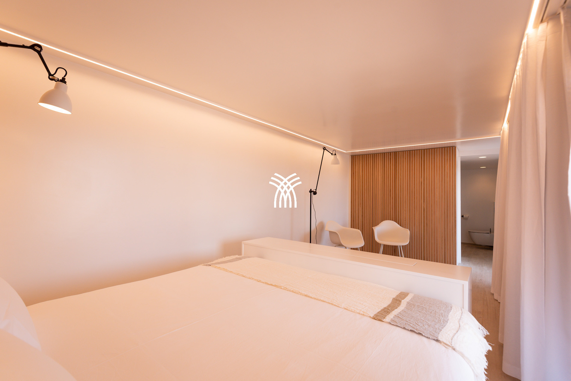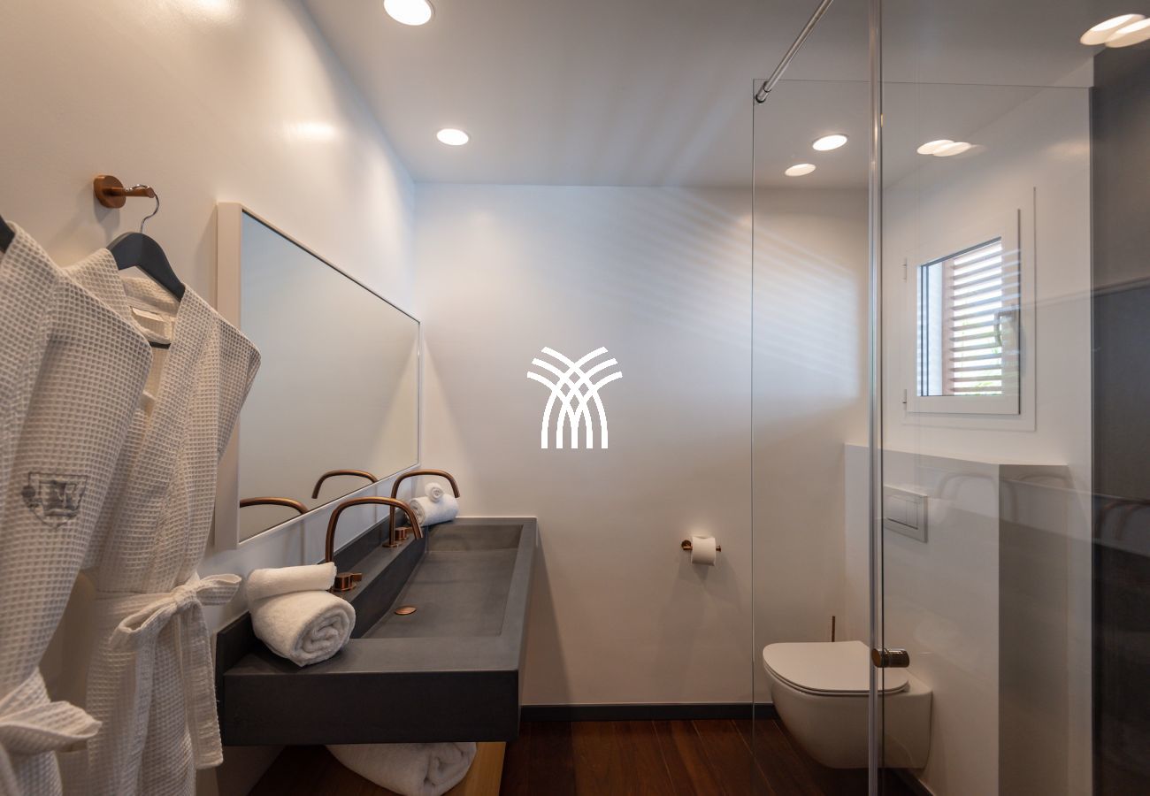 Completely renovated, the villa spans two levels with a refined and warm decoration that highlights natural wood and elegant lines. The spacious indoor living room opens onto a shaded terrace and a heated infinity pool that runs across the entire facade, complemented by a shallow pool ideal for children.