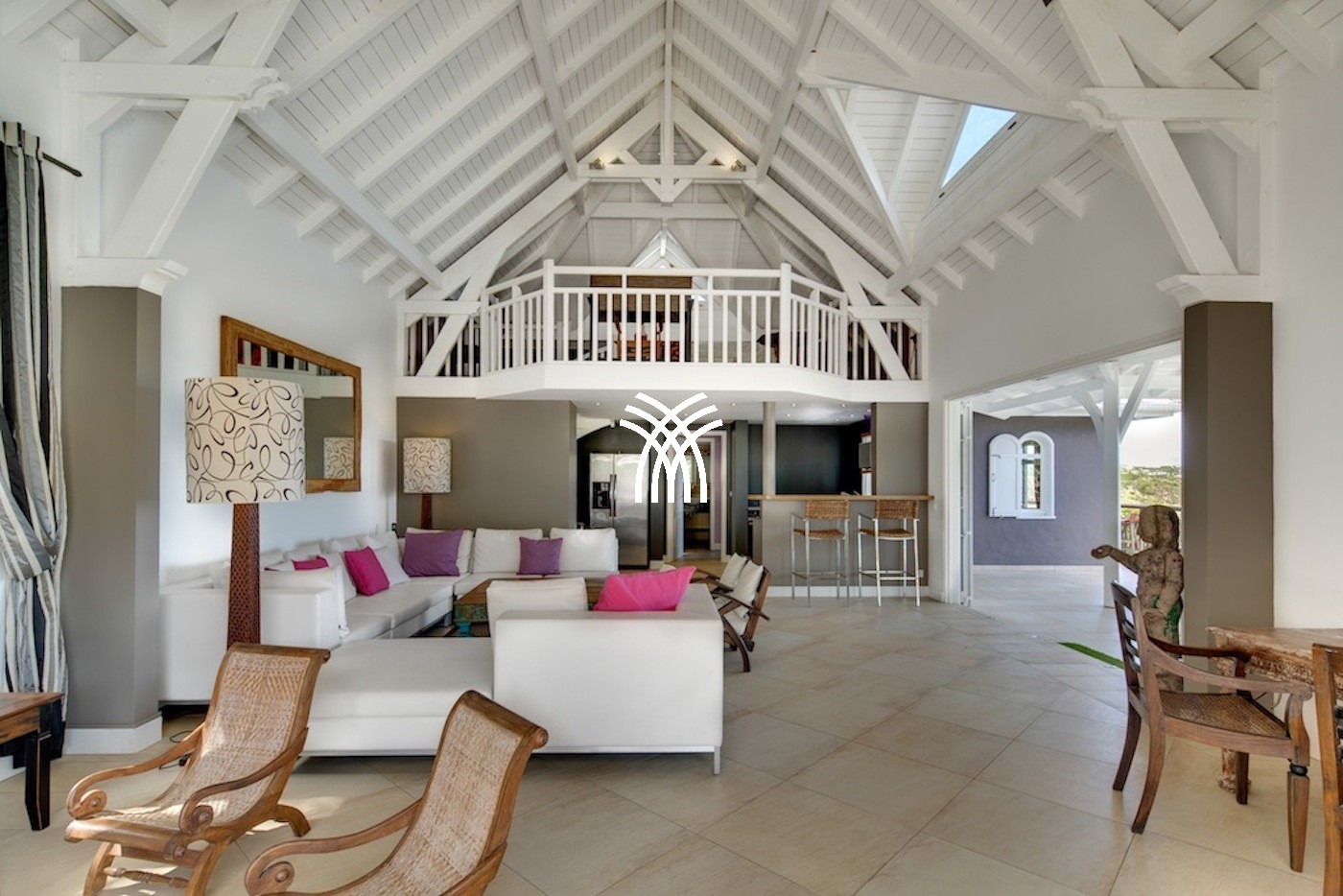 Built on two levels, the villa combines contemporary elegance, absolute comfort, and an exceptional natural setting. The main level features a spacious, bright living room that opens directly onto the terrace. The fluid transition between interior and exterior allows for fully enjoying the Caribbean atmosphere.
