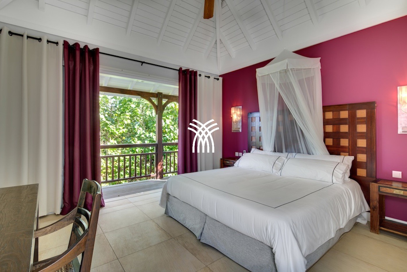 The property also includes the Petit Lagon villa, which adds two additional bedrooms with en-suite bathrooms, a compact kitchen and a living room open to the outside. The large bay windows and wooden doors create a perfect harmony between interior and exterior, allowing full enjoyment of the trade winds and tropical view. A private swimming pool surrounded by a wooden terrace, a barbecue and lounge areas invite conviviality and relaxation under the starry Caribbean sky.