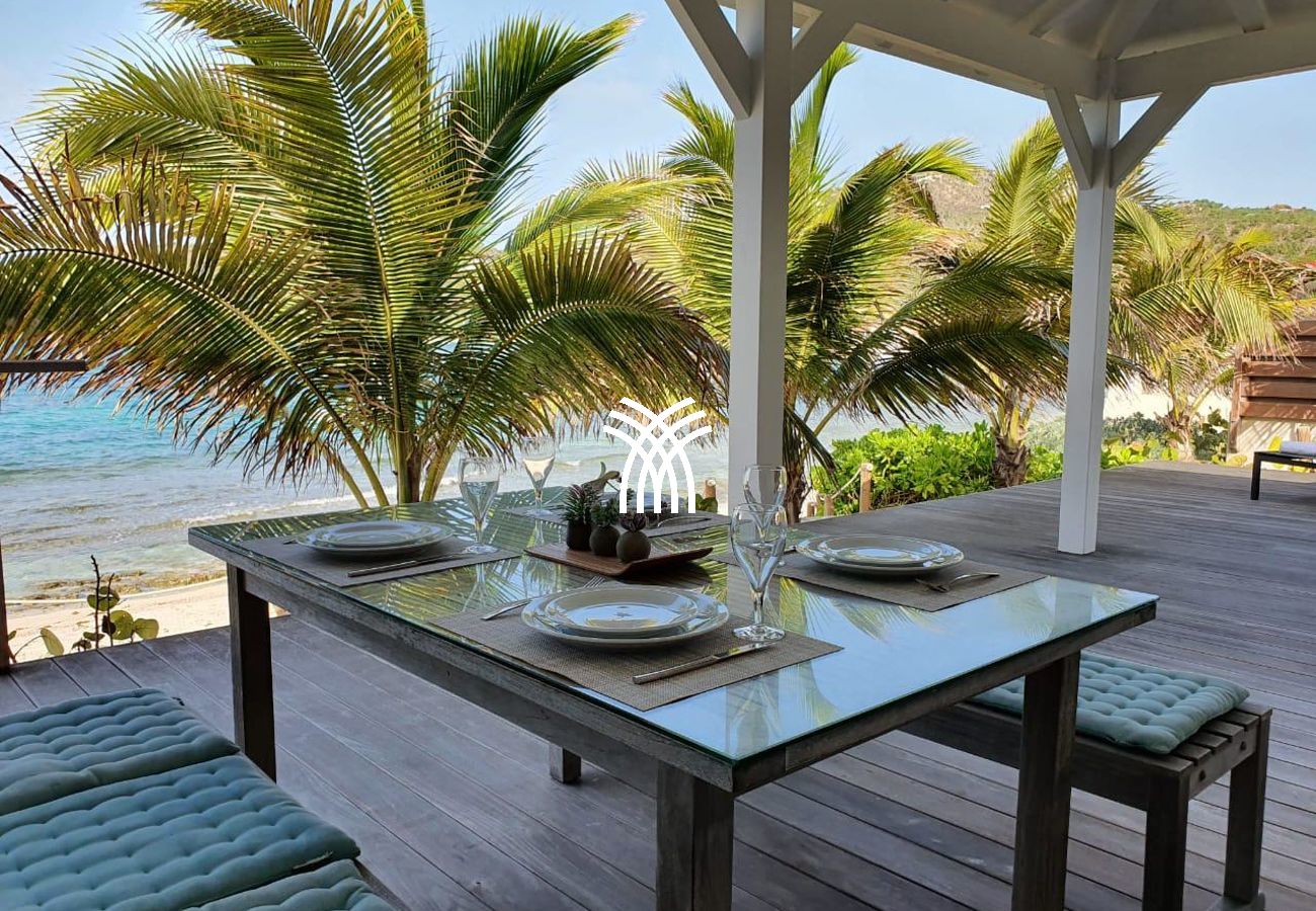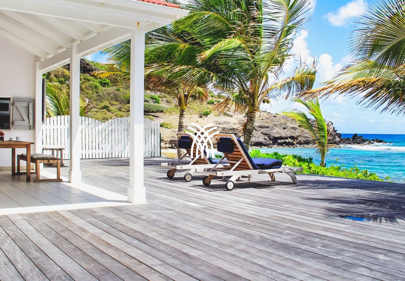 The Villa Les Sables is a luxury seafront villa for rent in Saint Barthélemy, ideally located on Lorient Beach. This elegant waterfront property consists of three independent bungalows, ensuring privacy, comfort, and an unobstructed view of the Caribbean Sea.