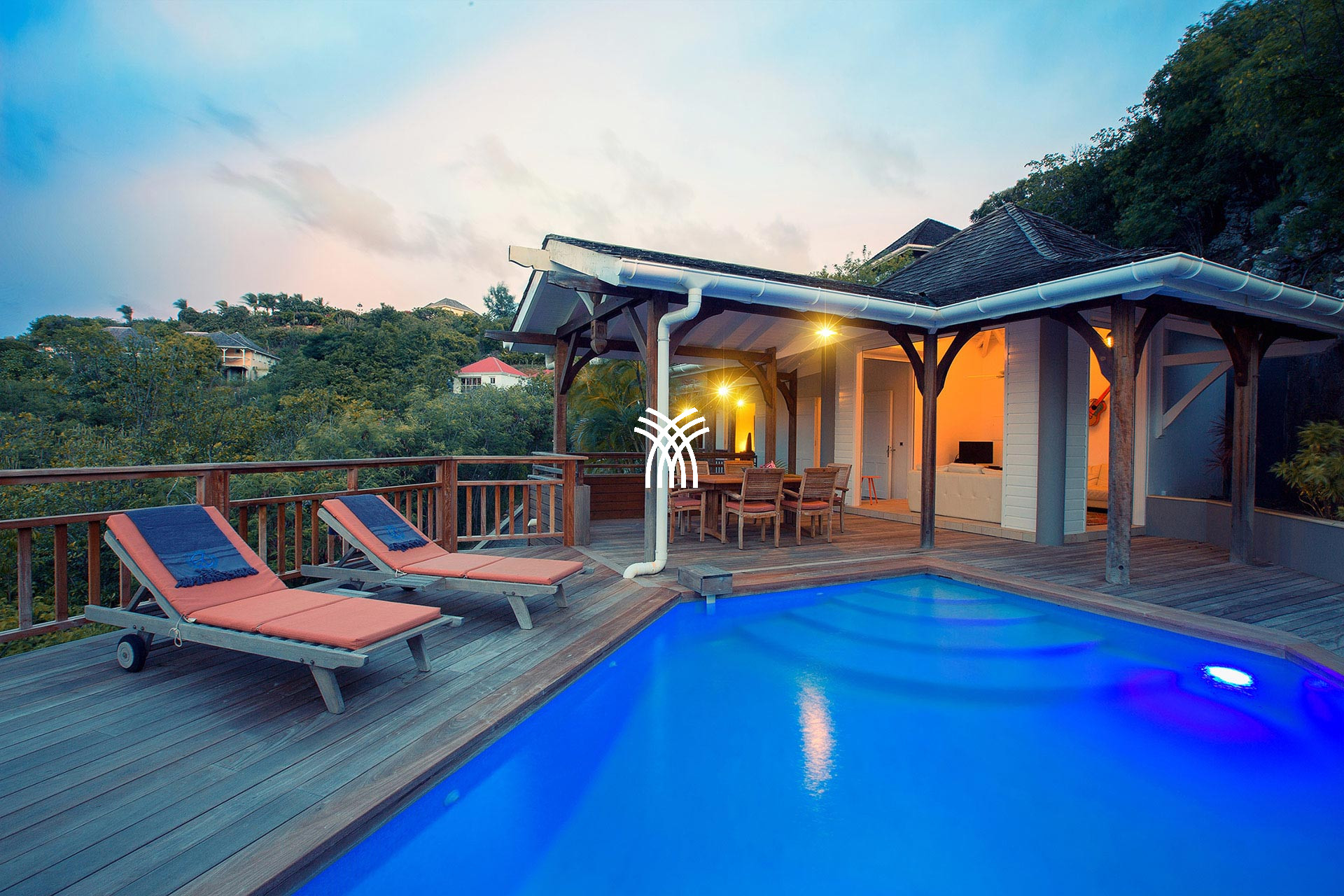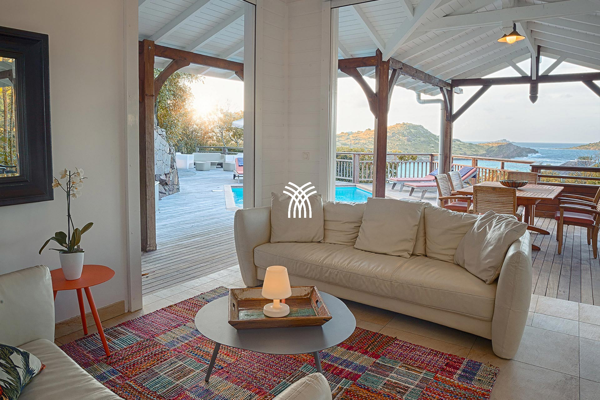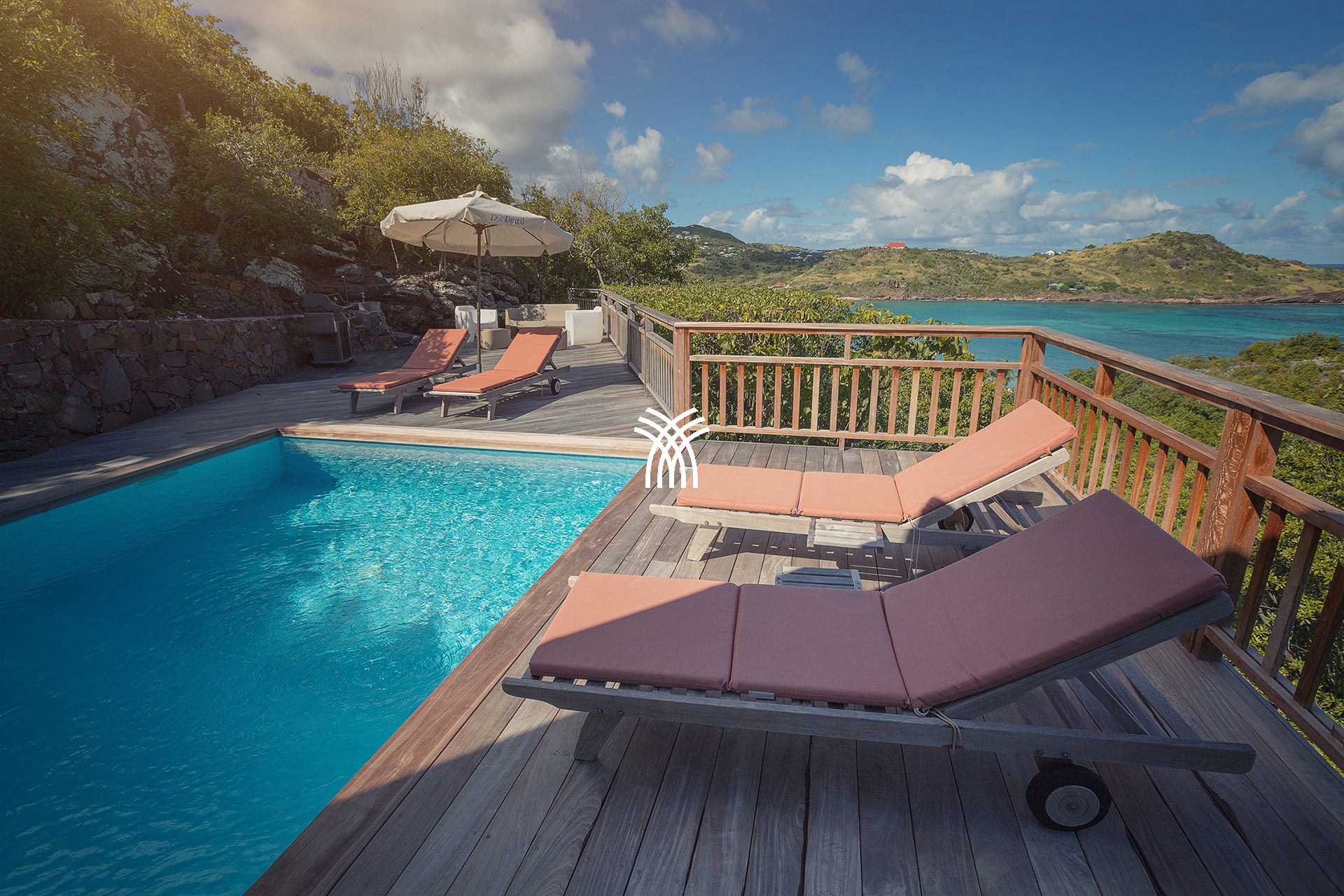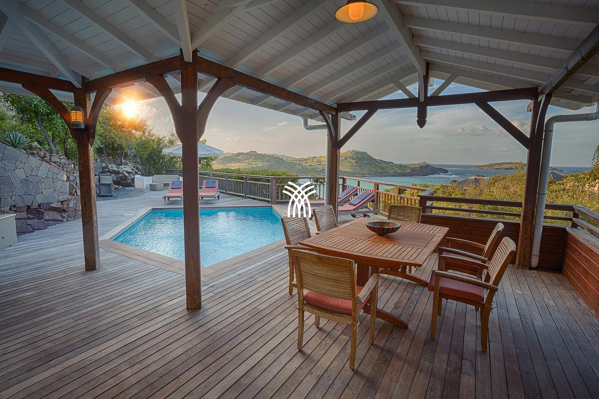 The Villa L'Enclos is a luxury villa for rent in St Barth, perched on top of a hill in Colombier. This luxury villa rental in St Barth combines the authentic charm of the Antilles, a panoramic view of the Caribbean Sea, and total privacy in the heart of a tropical garden.