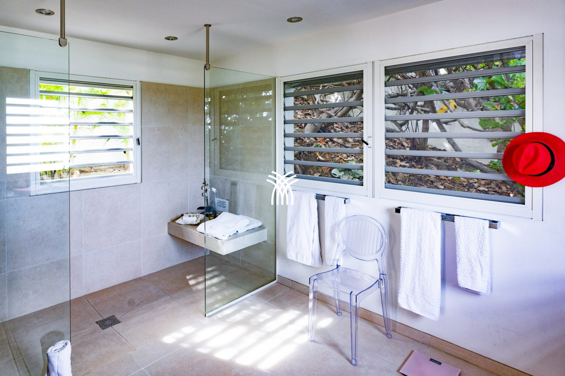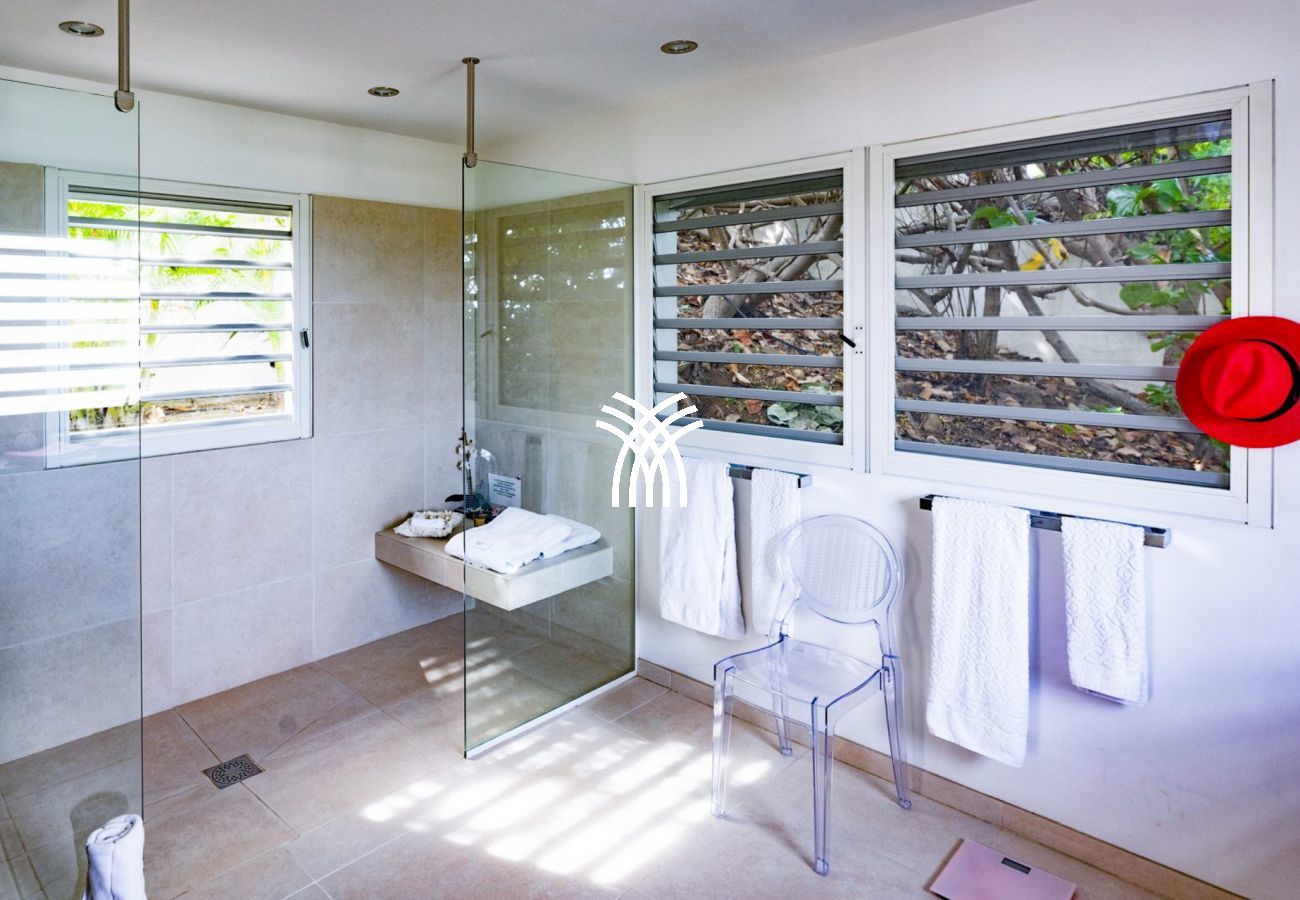 The property also includes the Petit Lagon villa, which adds two additional bedrooms with en-suite bathrooms, a compact kitchen and a living room open to the outside. The large bay windows and wooden doors create a perfect harmony between interior and exterior, allowing full enjoyment of the trade winds and tropical view. A private swimming pool surrounded by a wooden terrace, a barbecue and lounge areas invite conviviality and relaxation under the starry Caribbean sky.