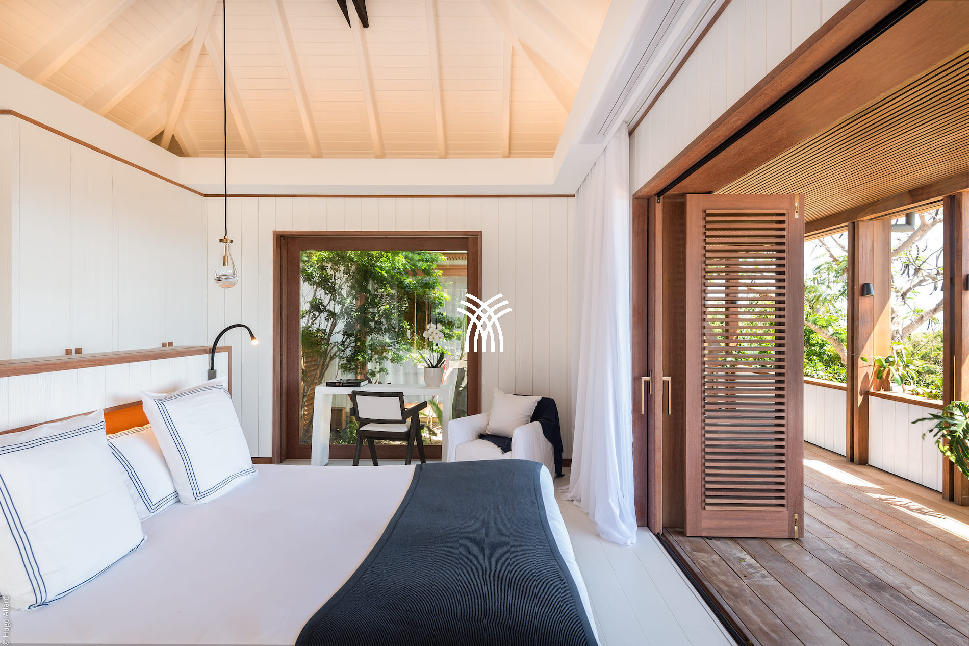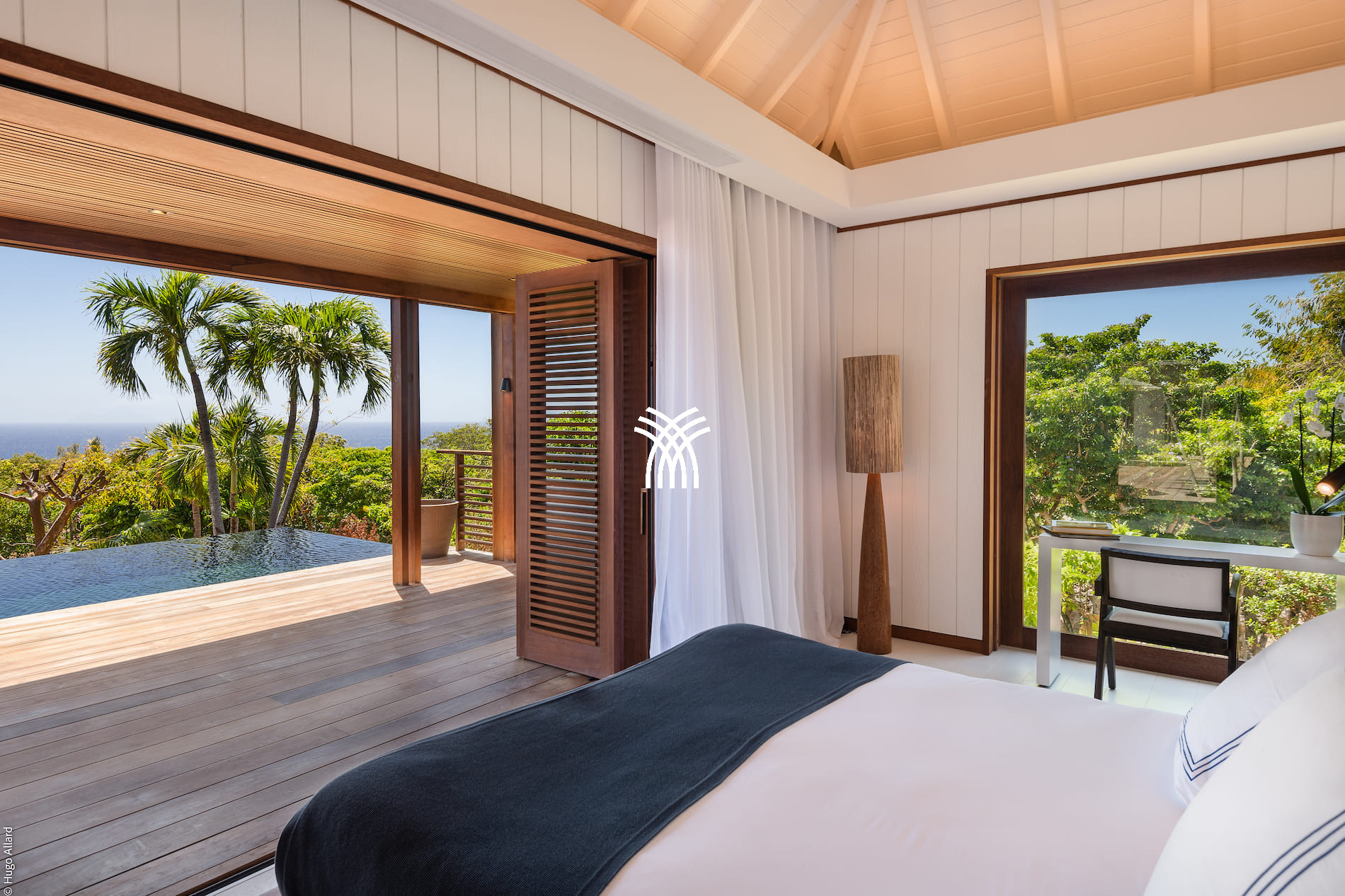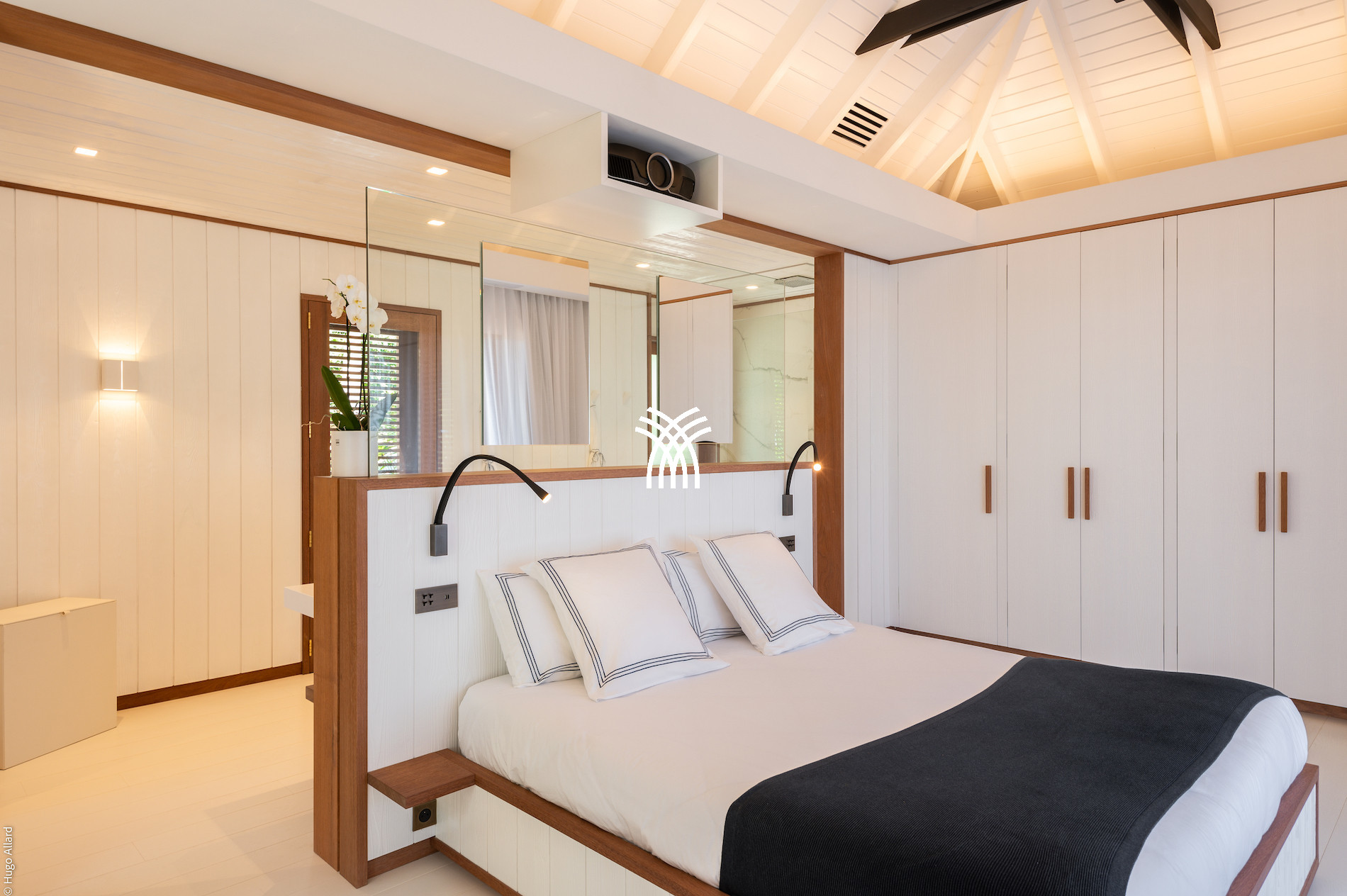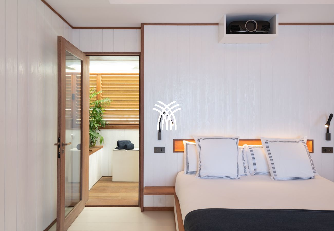 The Villa Sun Club has six air-conditioned rooms, each with its private bathroom. Five of them are equal in size and oriented towards the ocean, allowing their guests to wake up each morning facing the turquoise sea. The sixth room, slightly more intimate, remains welcoming and perfectly equipped. All rooms feature king-size beds, high-end sheets, and an elegant and contemporary decoration.