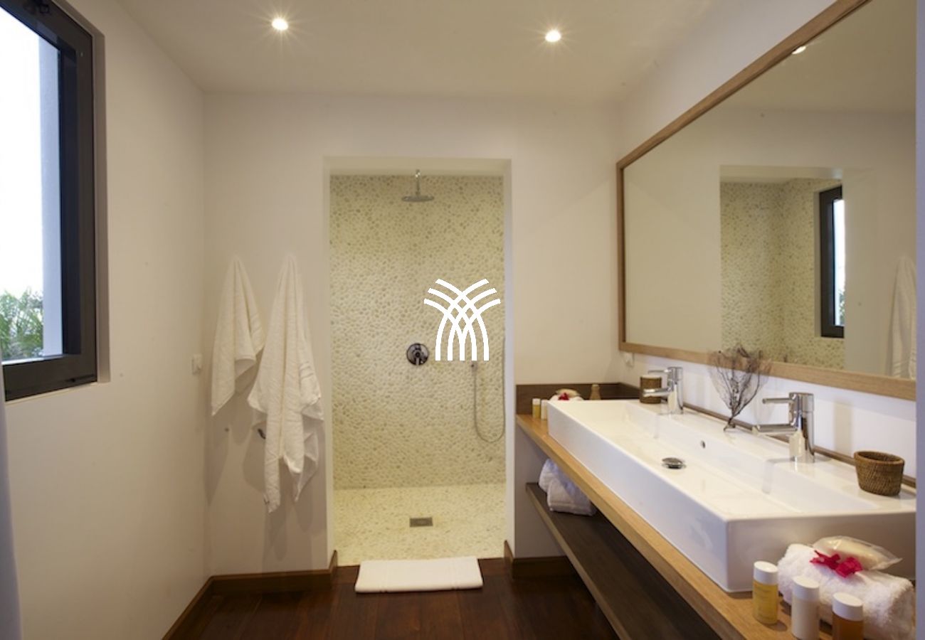 The property also includes the Petit Lagon villa, which adds two additional bedrooms with en-suite bathrooms, a compact kitchen and a living room open to the outside. The large bay windows and wooden doors create a perfect harmony between interior and exterior, allowing full enjoyment of the trade winds and tropical view. A private swimming pool surrounded by a wooden terrace, a barbecue and lounge areas invite conviviality and relaxation under the starry Caribbean sky.