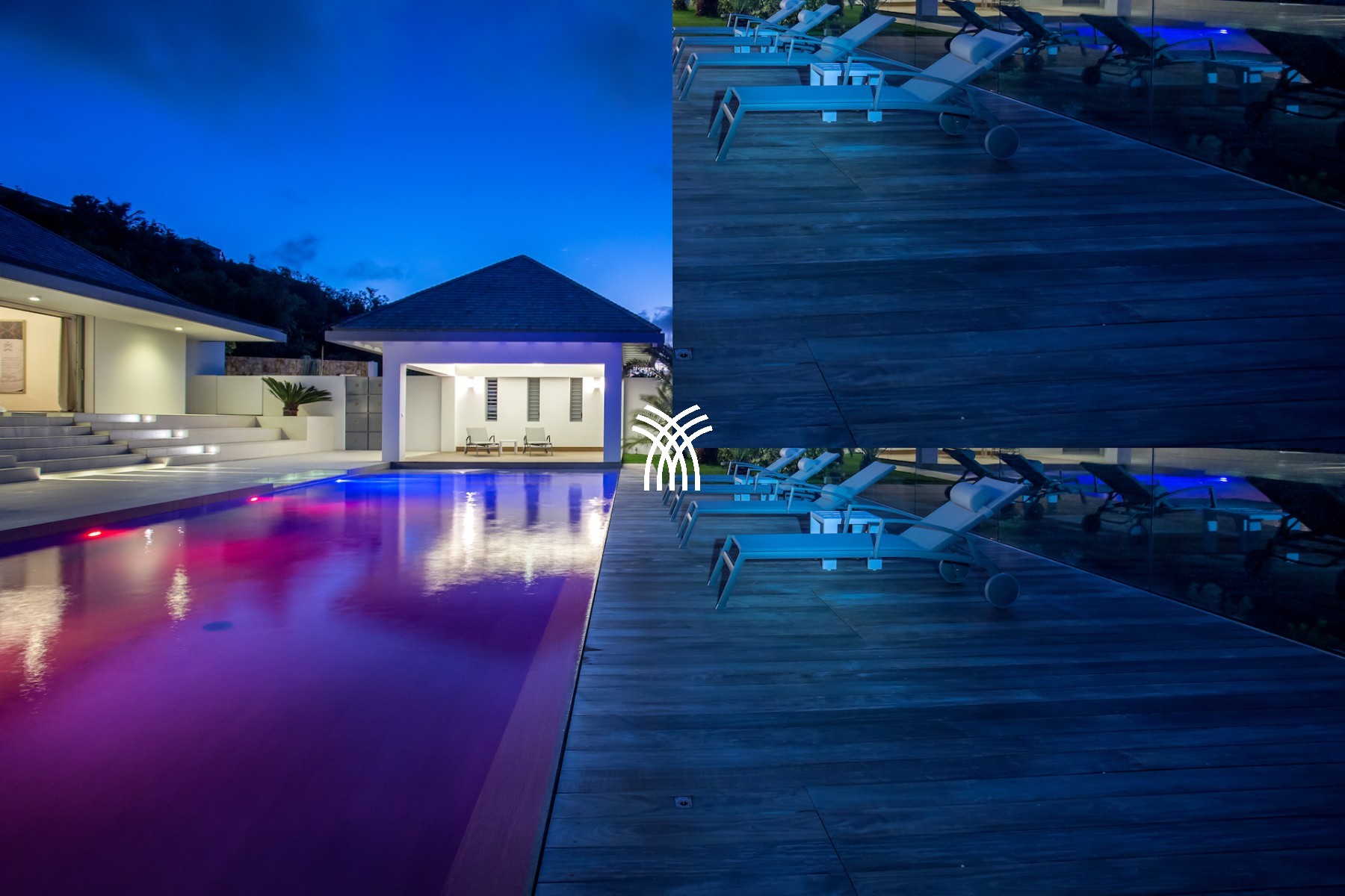 Located in Pointe Milou, one of Saint Barthélemy's most sought-after neighborhoods, Villa La Petite Sereine is a luxury sea view villa for rent, offering panoramic views of Lorient Bay and unforgettable sunsets. This 5-bedroom property embodies Caribbean refinement, with its two independent levels, two pools, and high-end amenities.