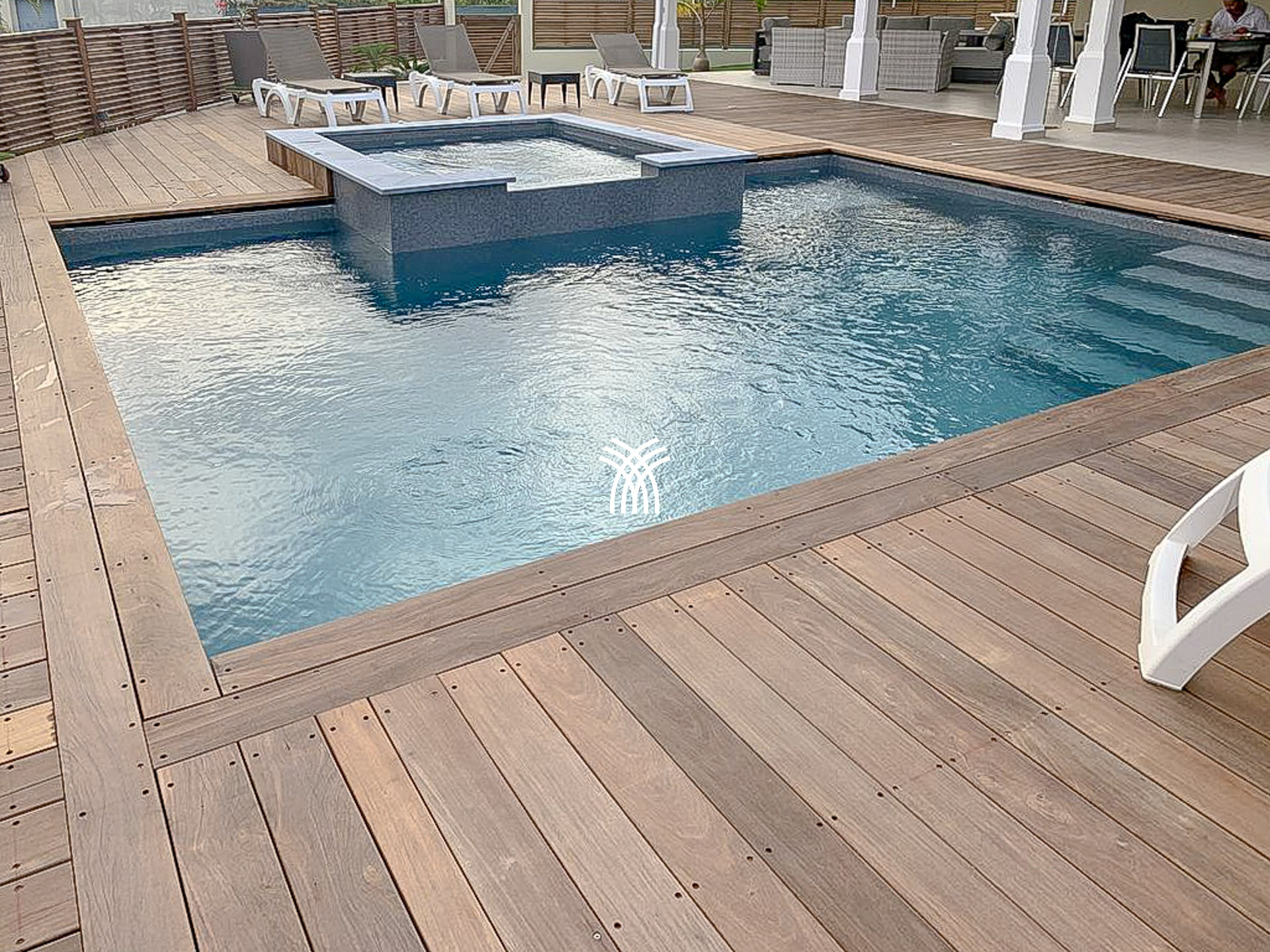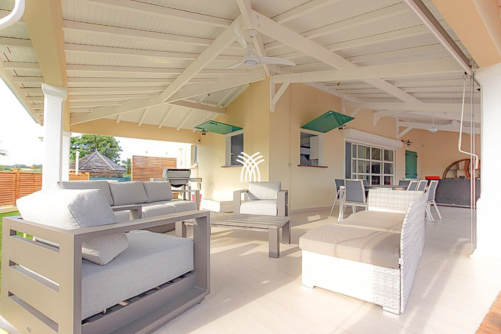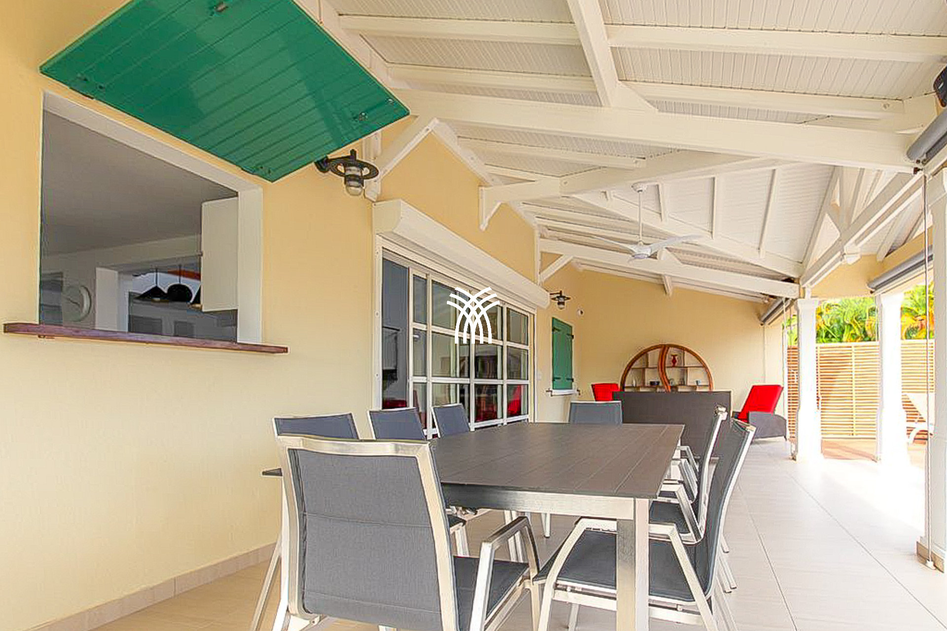 The outdoor space of Villa Abawak is ideal for gathering with family or friends. The covered terrace allows sharing meals with a view of the salt water pool and tropical garden. The private carbet is perfect for relaxing around a ti-punch or local specialties.
