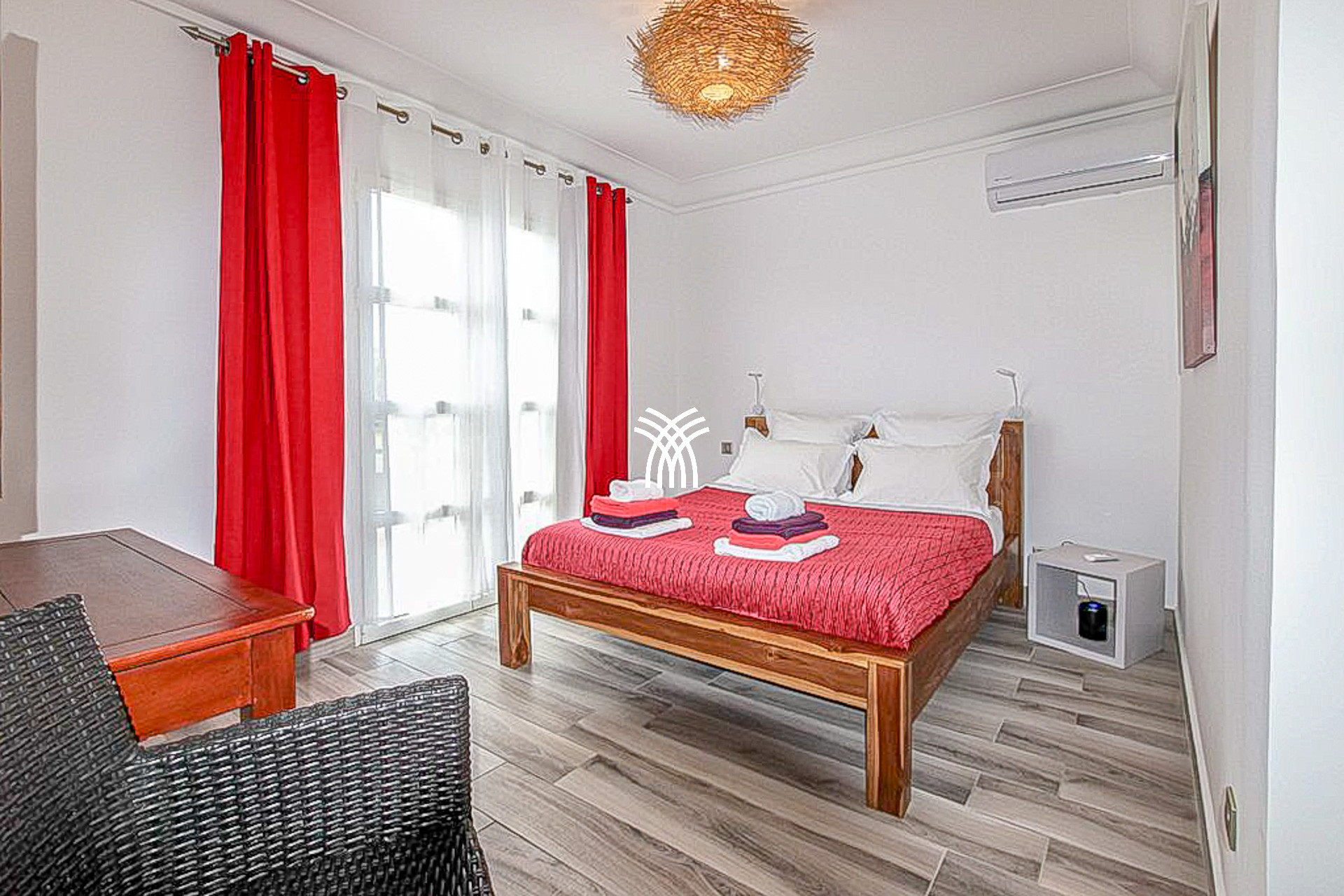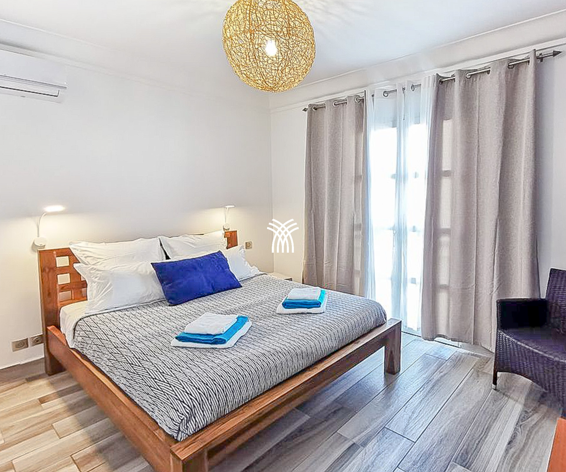 The single-storey Abawak villa features 4 air-conditioned bedrooms tastefully decorated to offer comfort and serenity. The main master suite is a true cocoon with a king-size bed, walk-in closet, and private bathroom. A second master suite offers a unique experience with an outdoor shower under the starry sky of Guadeloupe.