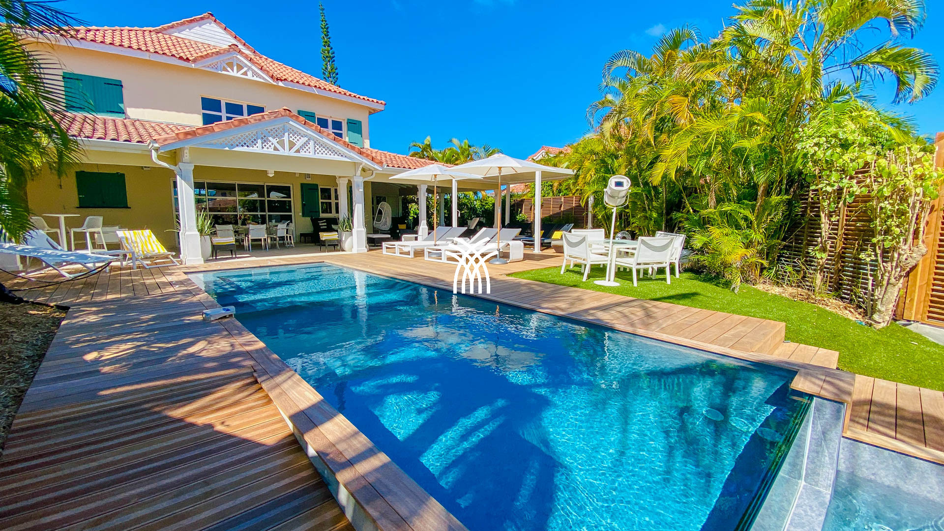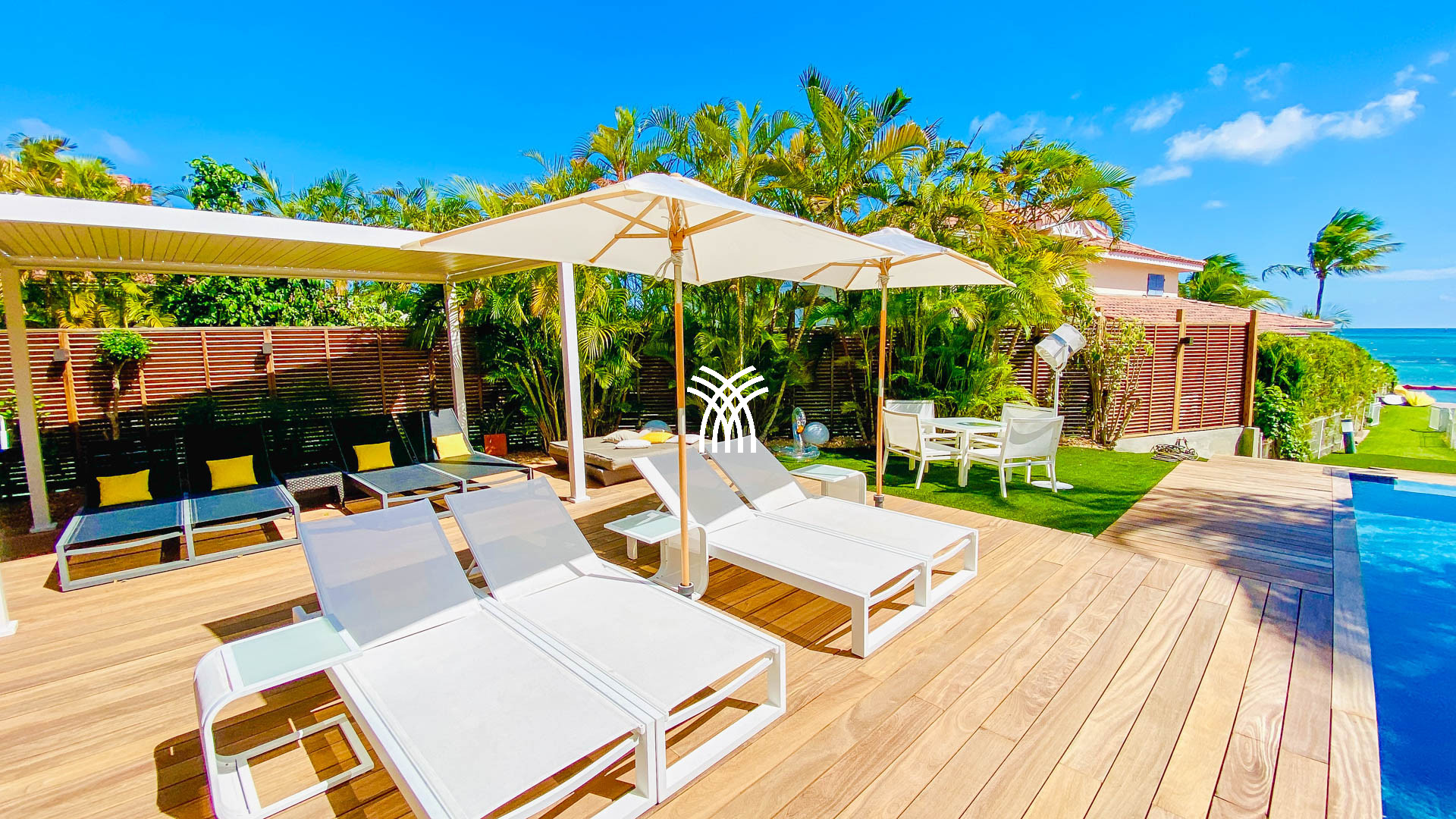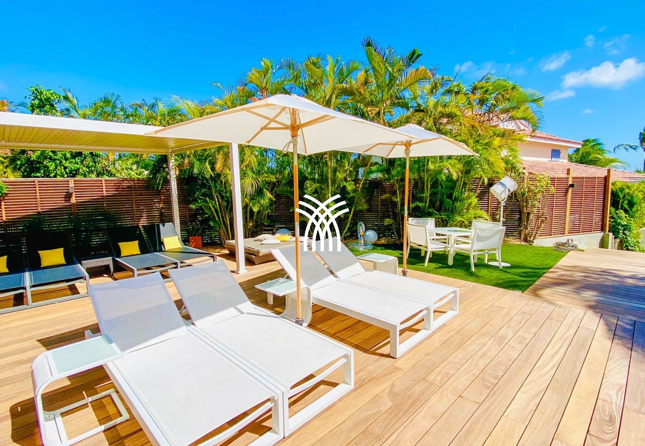 This spacious and bright villa offers direct access to the beach and lagoon, while being just two minutes' walk from the Saint-François marina and its many amenities.