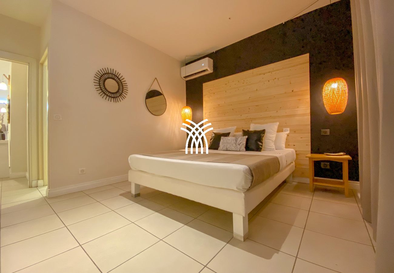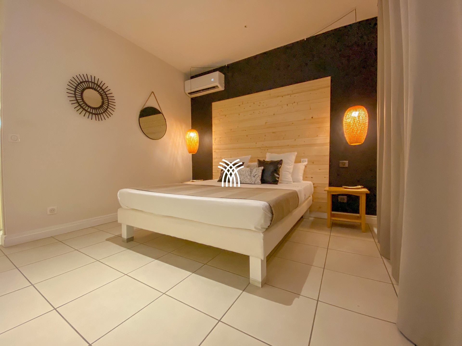 Located on the edge of the lagoon of St-François in a secured residence, villa Boubou Guadeloupe is a charming villa less than 15 meters from the beach, accessible through the private pontoon. Woith a capacity of 10 people, this holiday home offers 4 beautiful bedrooms with their own bathroom and a mezzanine. The fully equipped American kitchen extends to the living room and terrace with a sound system, offering a magical view of the sea.