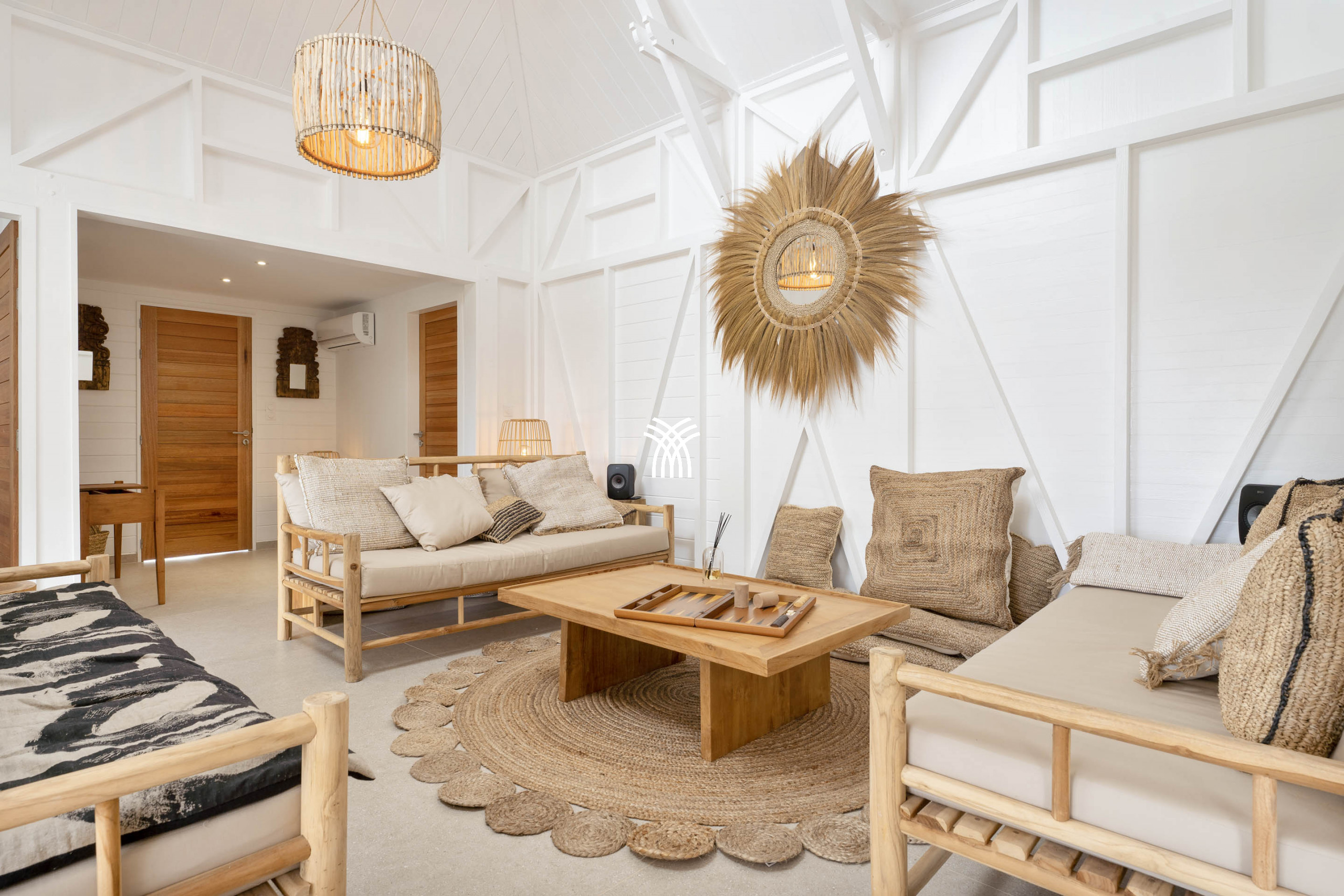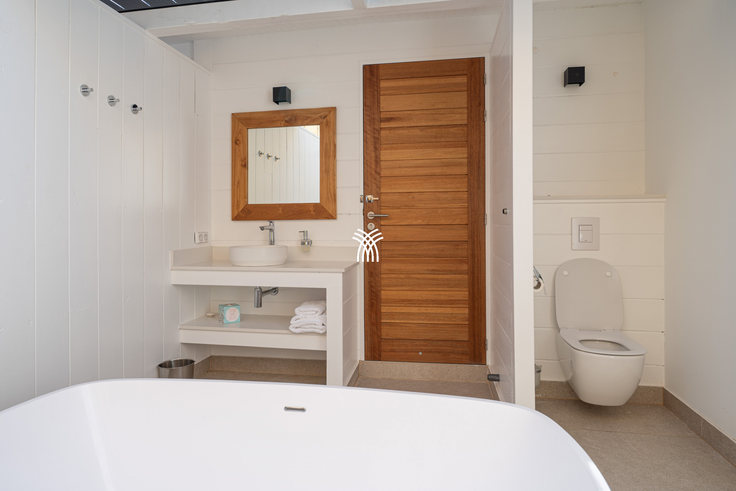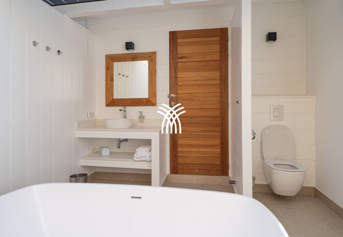 The villa’s premium amenities include two bedrooms with king-size beds (2m x 2m), two bedrooms with queen-size beds (180 x 200), and one bedroom with a queen-size bed that can be converted into two single beds (90 cm each). The property also boasts a full range of appliances, including an oven, microwave, espresso and Nespresso coffee machines, dishwasher, a large refrigerator, and a citrus juicer to craft delicious tropical cocktails. The utility room is equipped with a washer, dryer, and a safe.