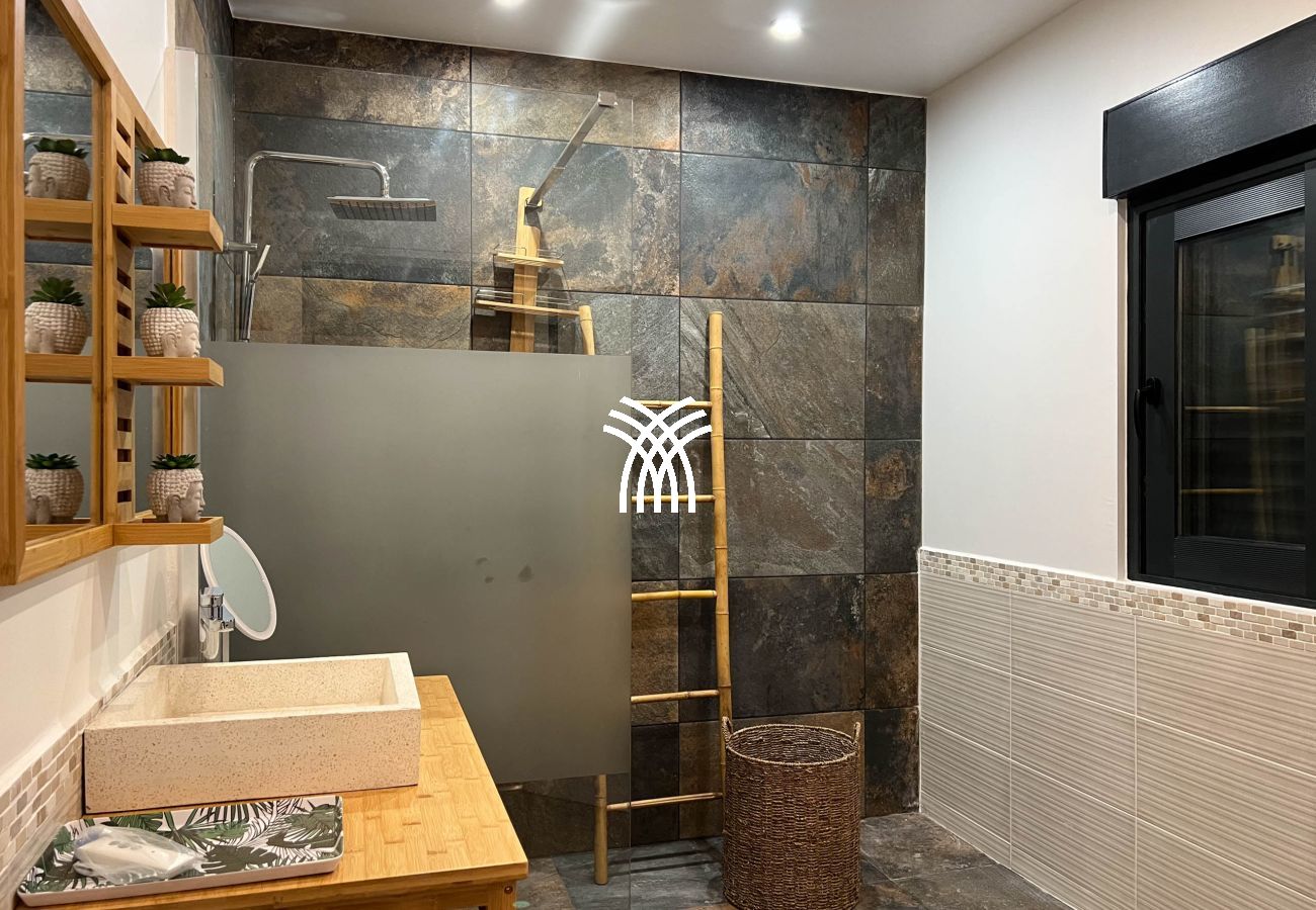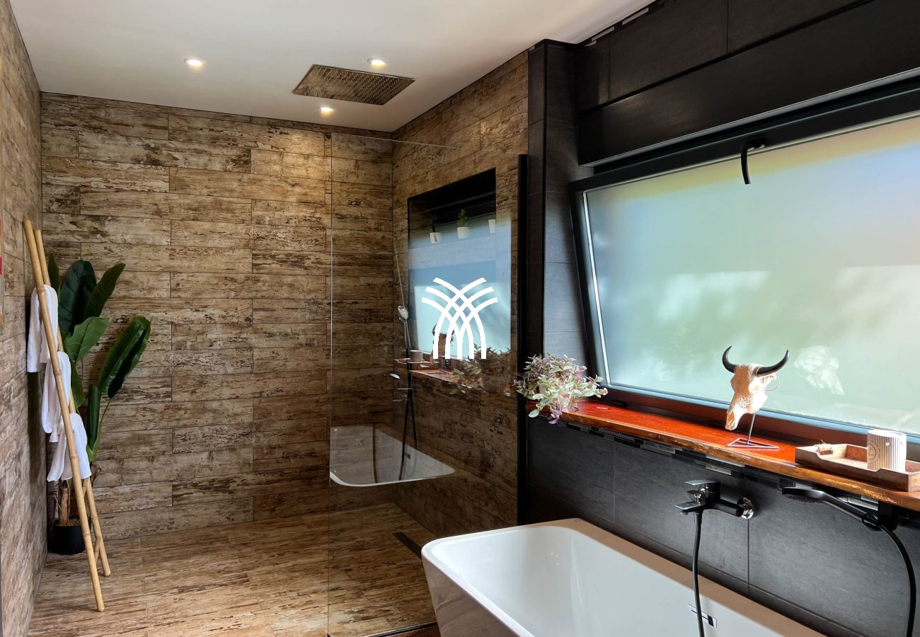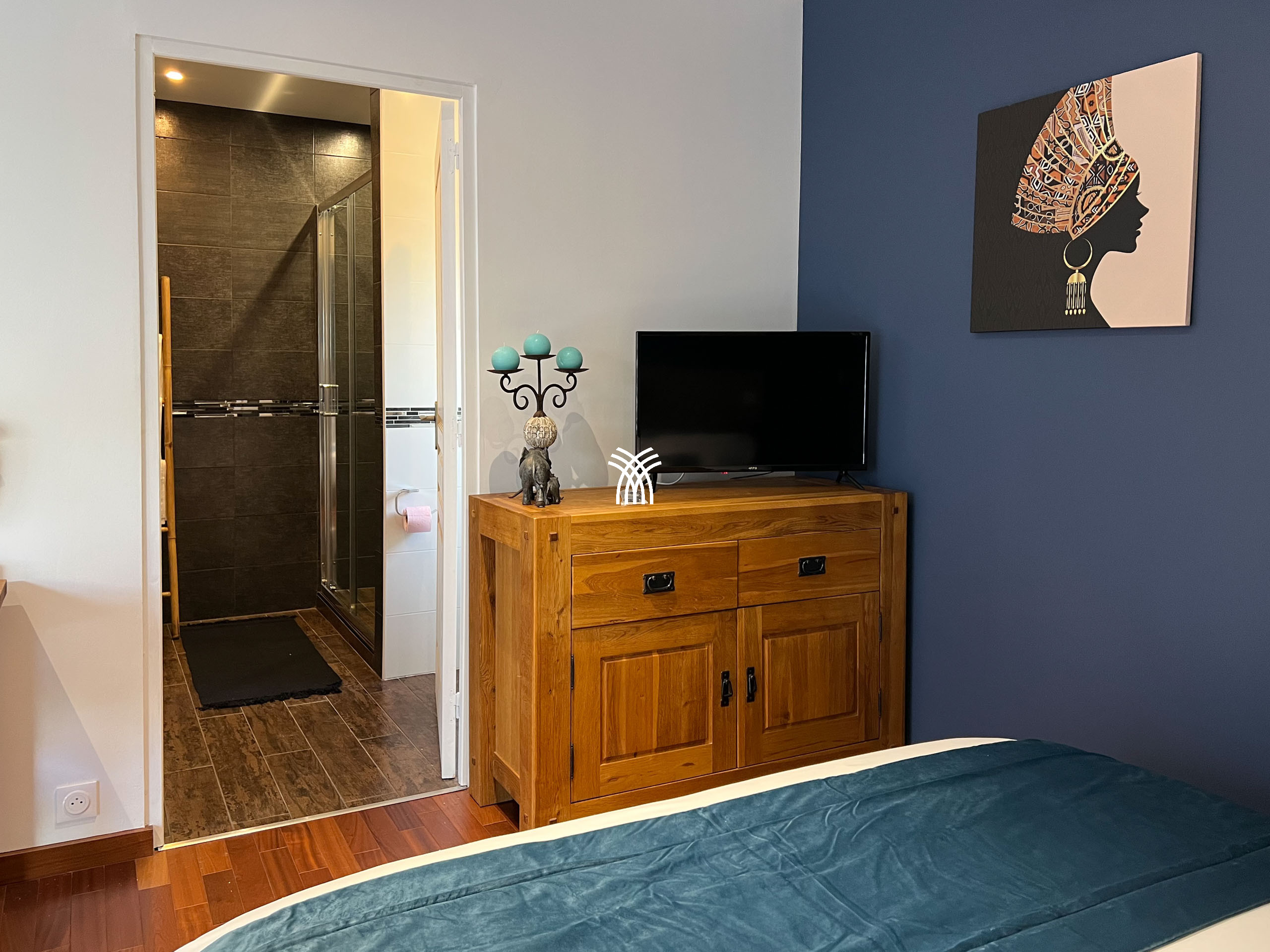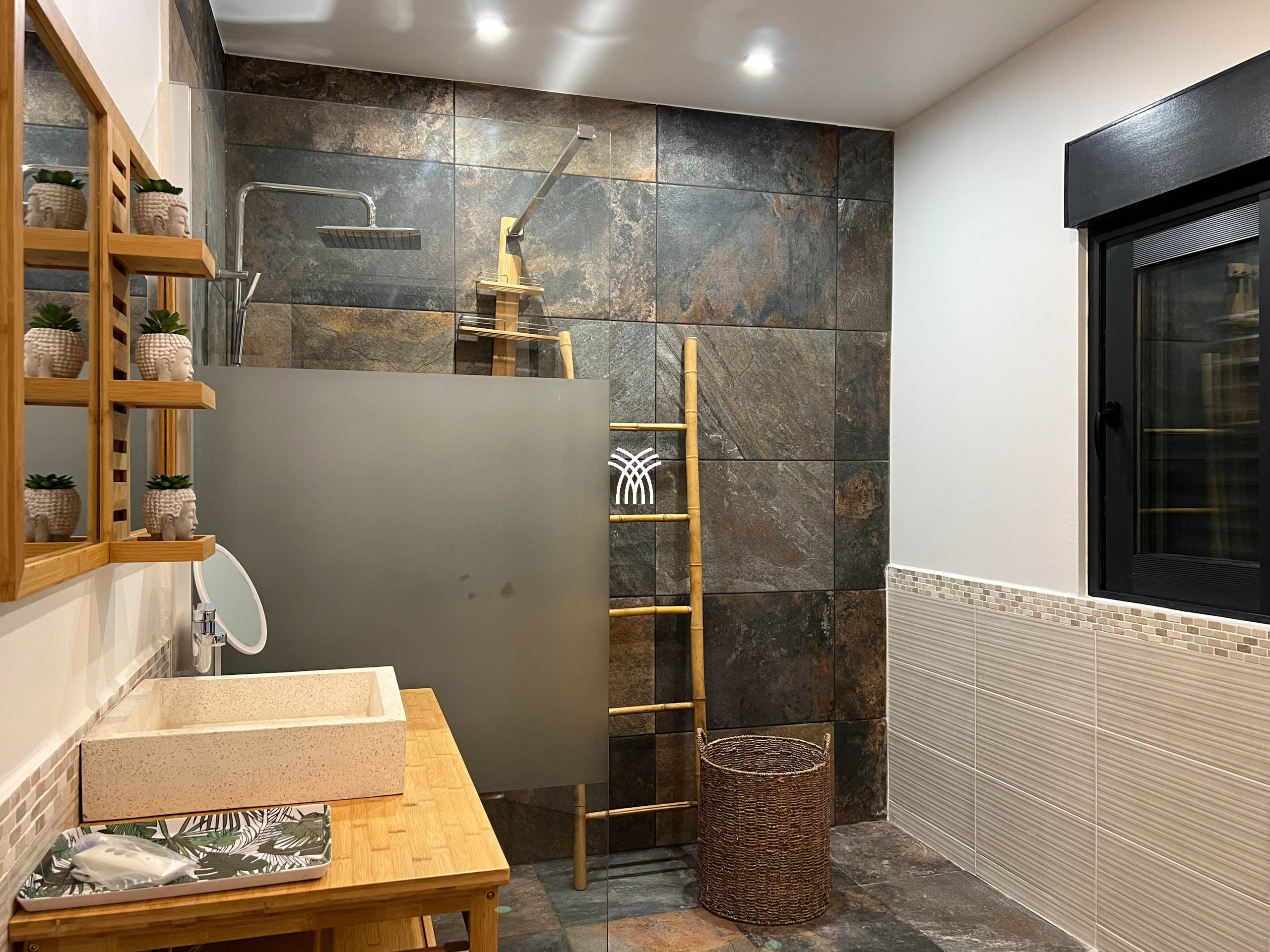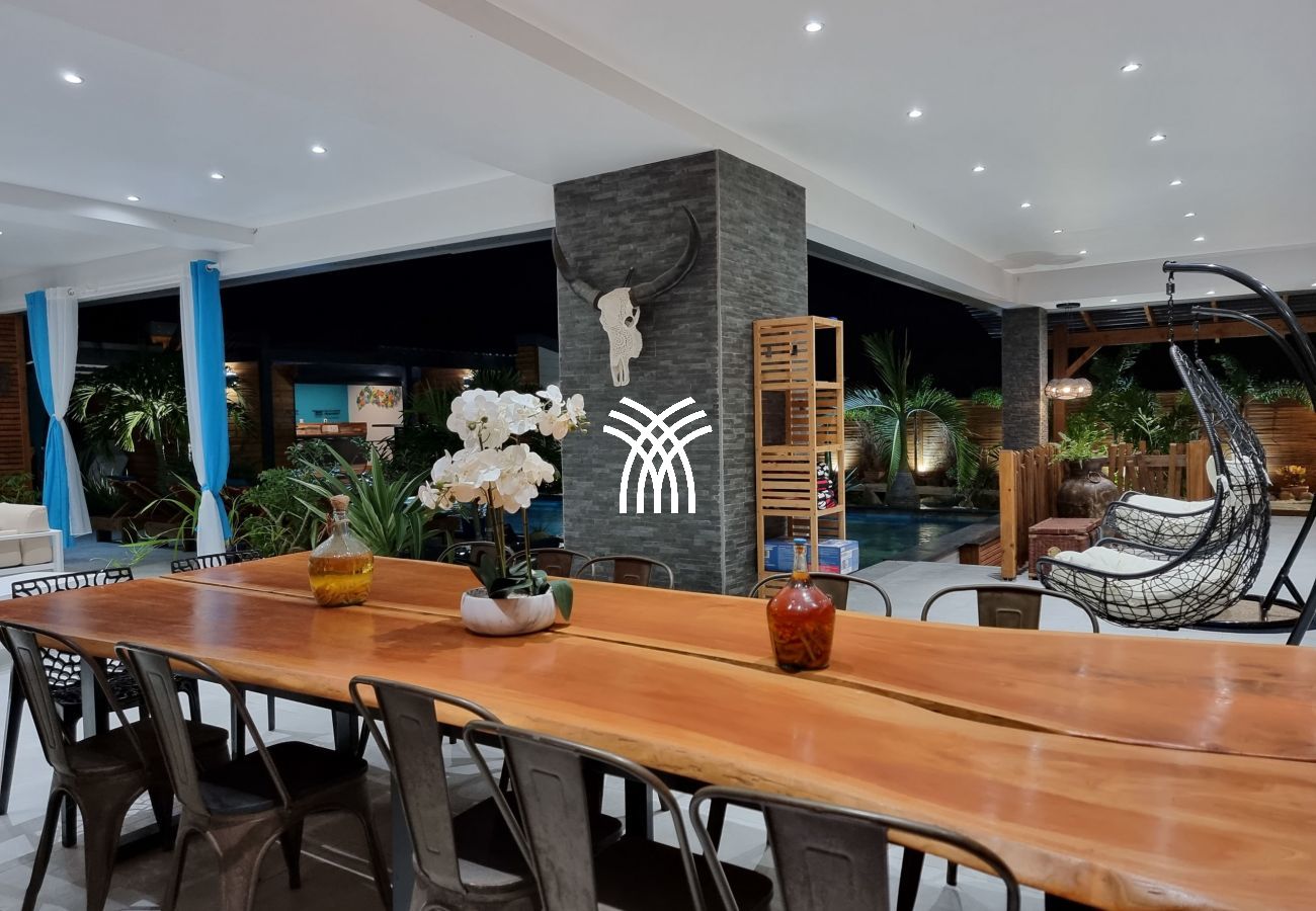 As soon as you enter, let yourself be seduced by a vast living room bathed in light, a fully equipped open kitchen where every detail has been designed for your well-being: microwave, ovens, gas and induction hobs, dishwasher, American fridge, wine cellar stocked with great vintages, champagnes and local rums at wine merchant prices. Share convivial moments in front of the 180 cm connected television or around the billiards table, in a living space of 80m² where elegance and modernity meet.