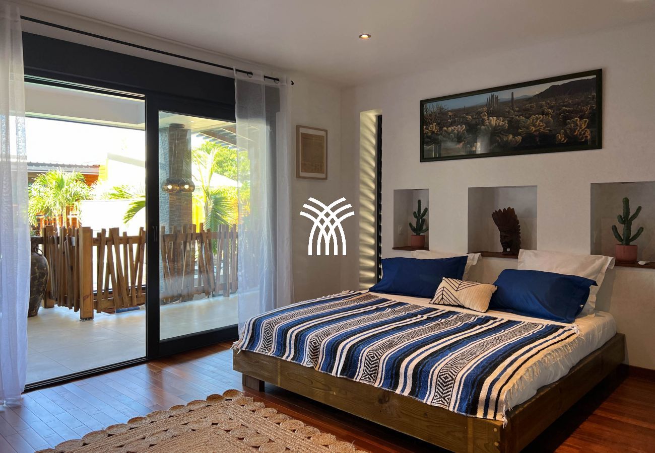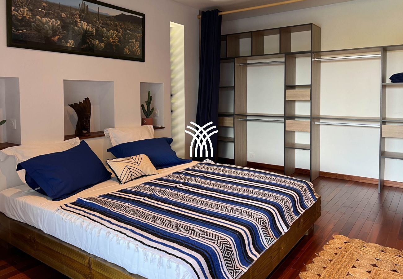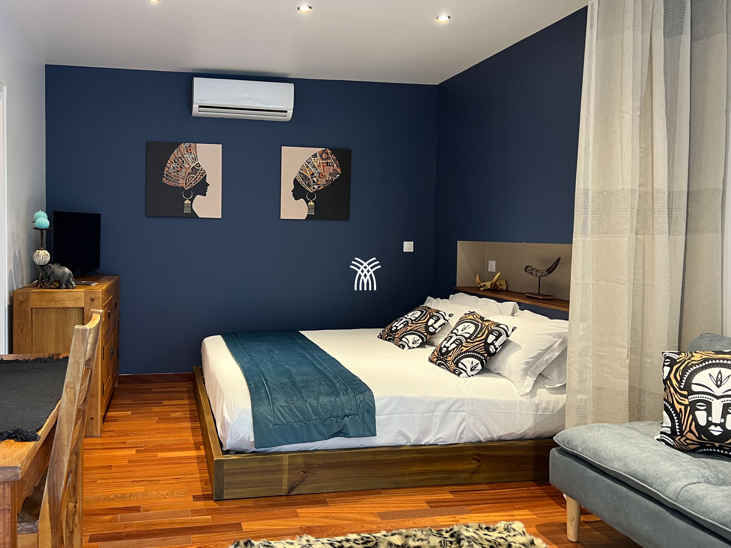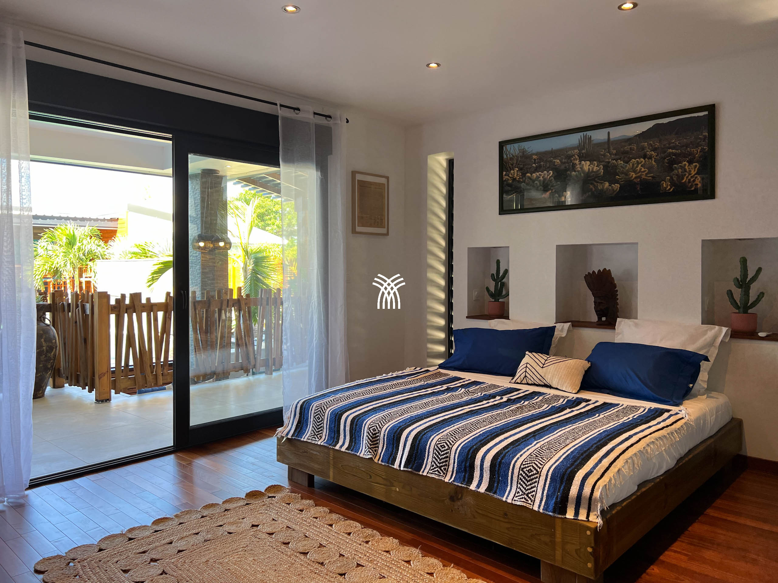 Villa Calypso offers five air-conditioned rooms, all carefully decorated. Spacious master suites with king-size beds, walk-in wardrobes, desks, connected televisions, private or shared bathrooms: each space has been designed to offer privacy and serenity. The bathrooms, all equipped with hairdryers, are fitted with soft towels, bathrobes and foutas to fully enjoy the swimming pool.
