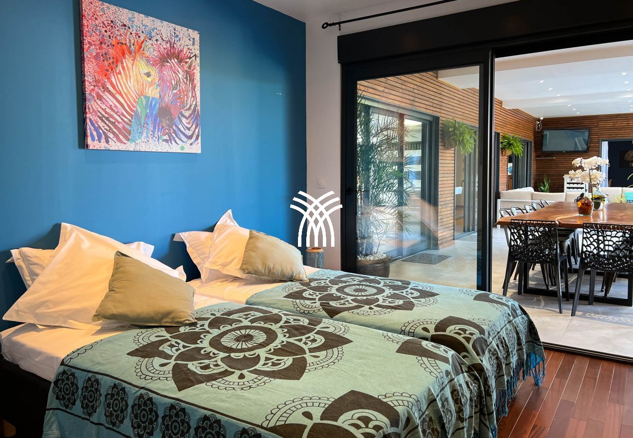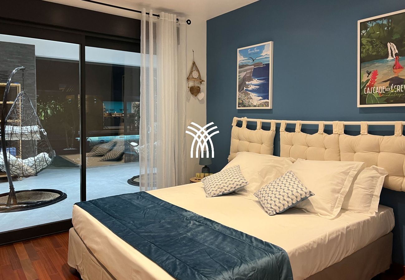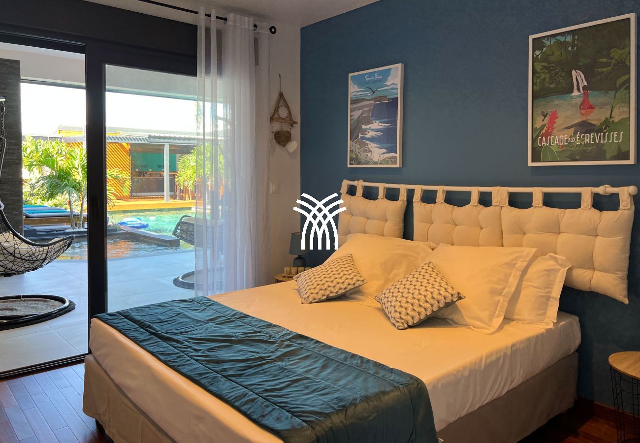 Discover the unique experience of luxury villa rental in Guadeloupe with the sumptuous Villa Calypso, nestled in Saint-François in the sought-after Bragelogne district. A true invitation to escape, this recent 225m² villa combines high-end comfort and tropical charm to enhance your family or friends' holiday.