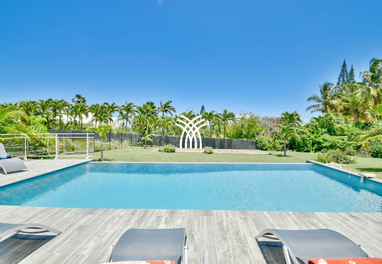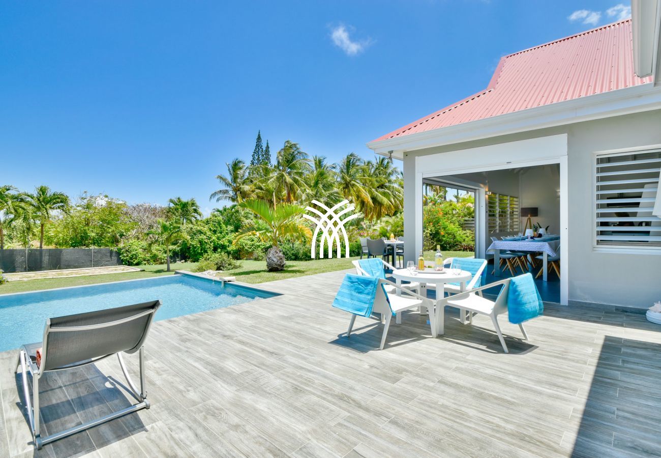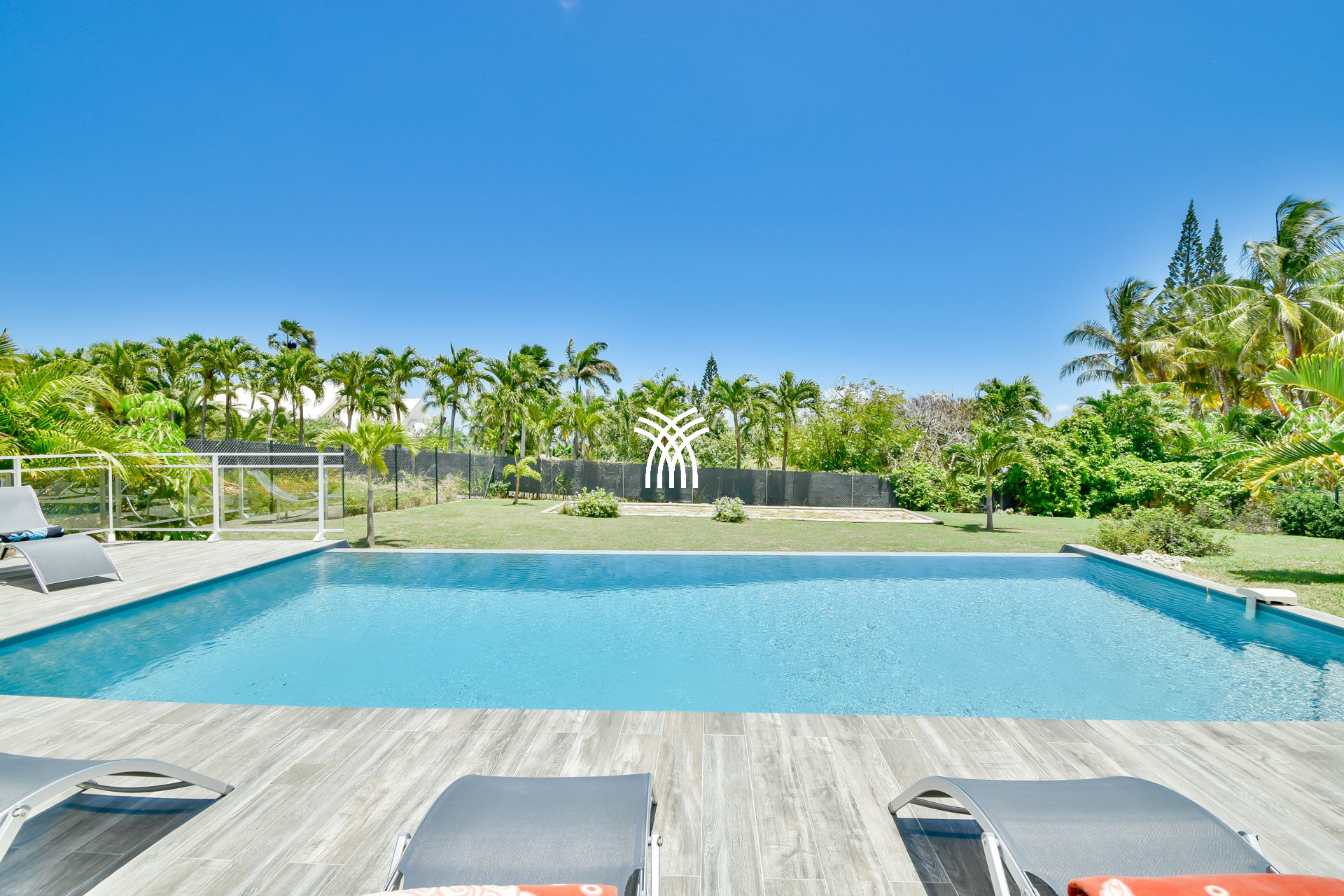 Located in the heart of the Closerie in Saint-François, the Caribbean Blue Guadeloupe villa is a holiday house with a capacity of 10 people. This high-end property features 5 air-conditioned bedrooms and 3 bathrooms and WC. You will have the opportunity to easily cook local dishes thanks to the fully equipped kitchen and enjoy the outdoor seating as well. The villa offers a large pool and a terrace of 80 m2 where you will have the opportunity to relax between friends or in family. The villa Caribbean Blue Guadeloupe is walking distance of the city-center and the marina, perfect place for peaceful or holidays in Guadeloupe.