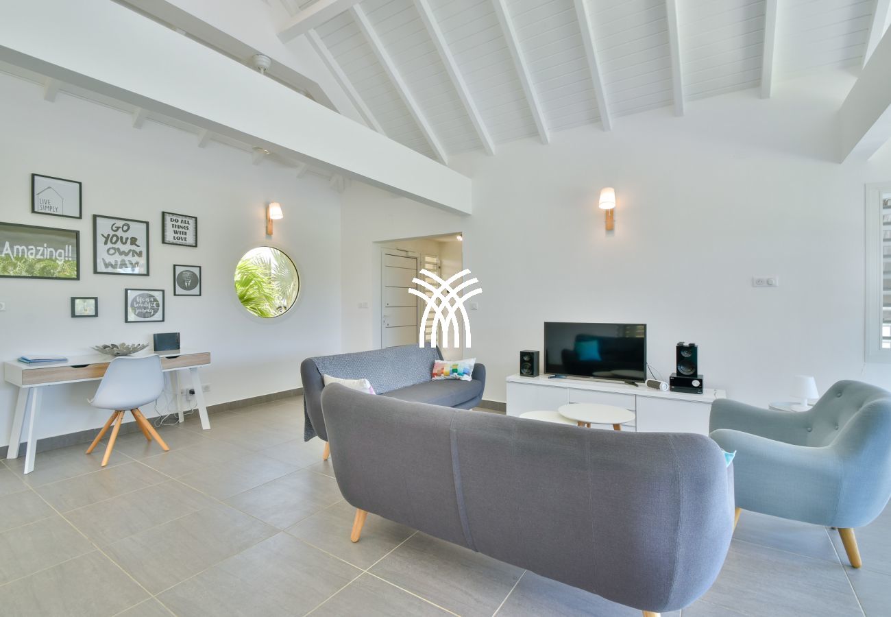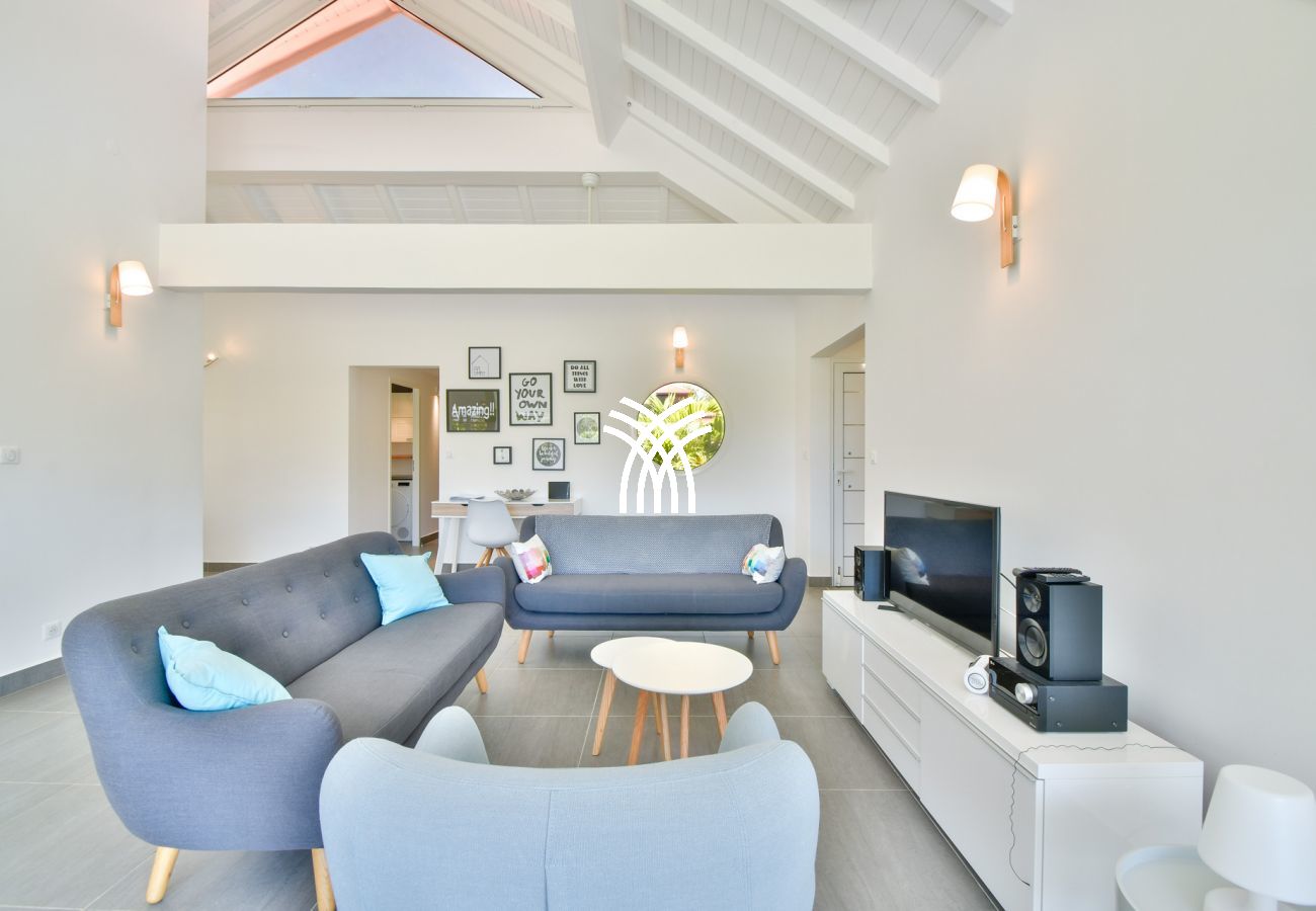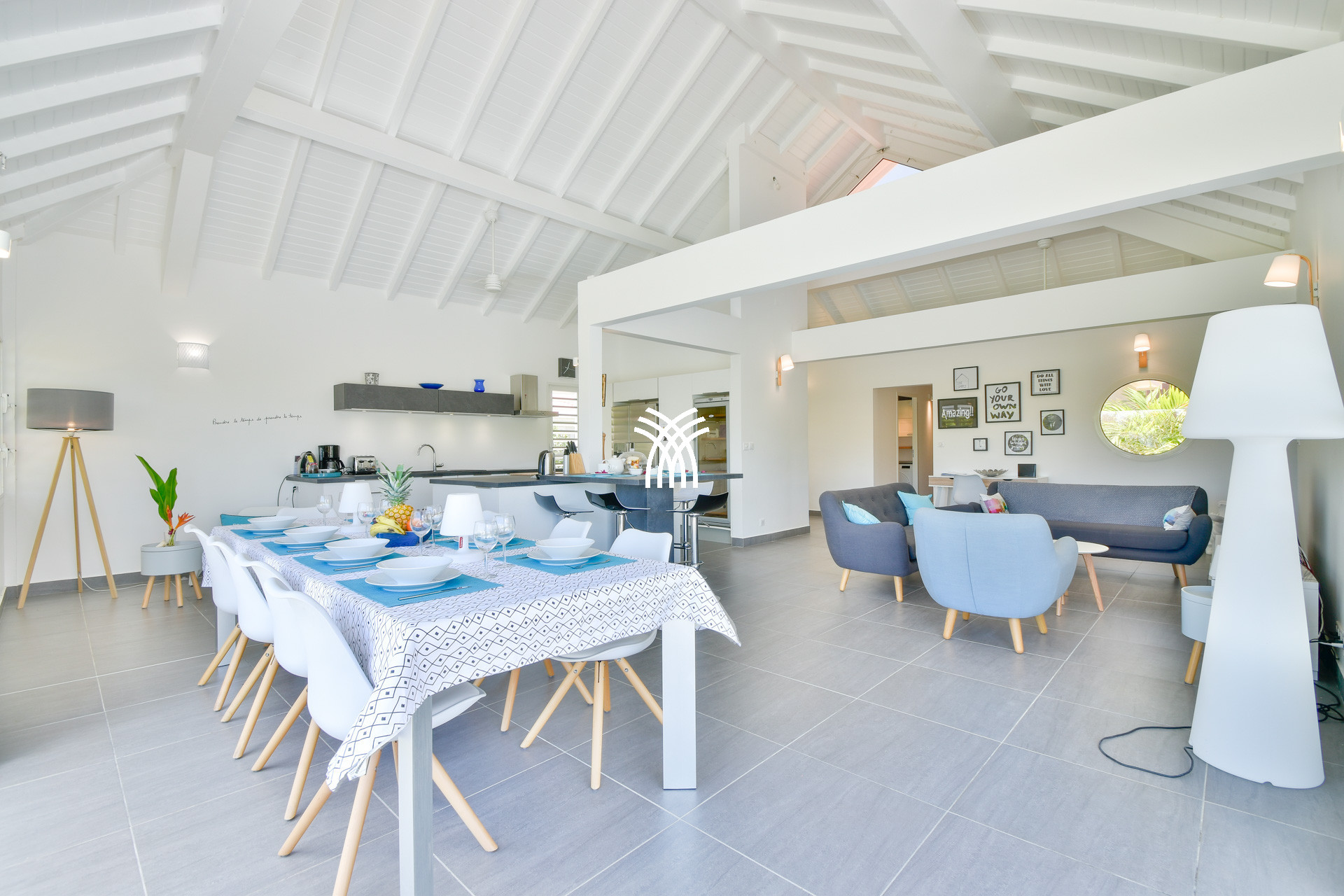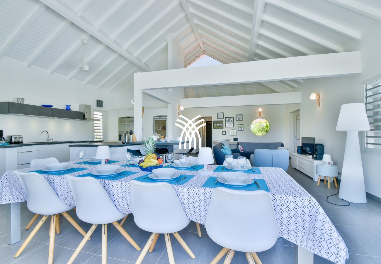 Located on the edge of the lagoon of St-François in a secured residence, villa Boubou Guadeloupe is a charming villa less than 15 meters from the beach, accessible through the private pontoon. Woith a capacity of 10 people, this holiday home offers 4 beautiful bedrooms with their own bathroom and a mezzanine. The fully equipped American kitchen extends to the living room and terrace with a sound system, offering a magical view of the sea.