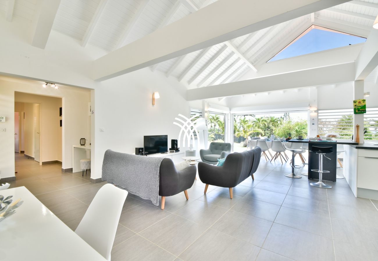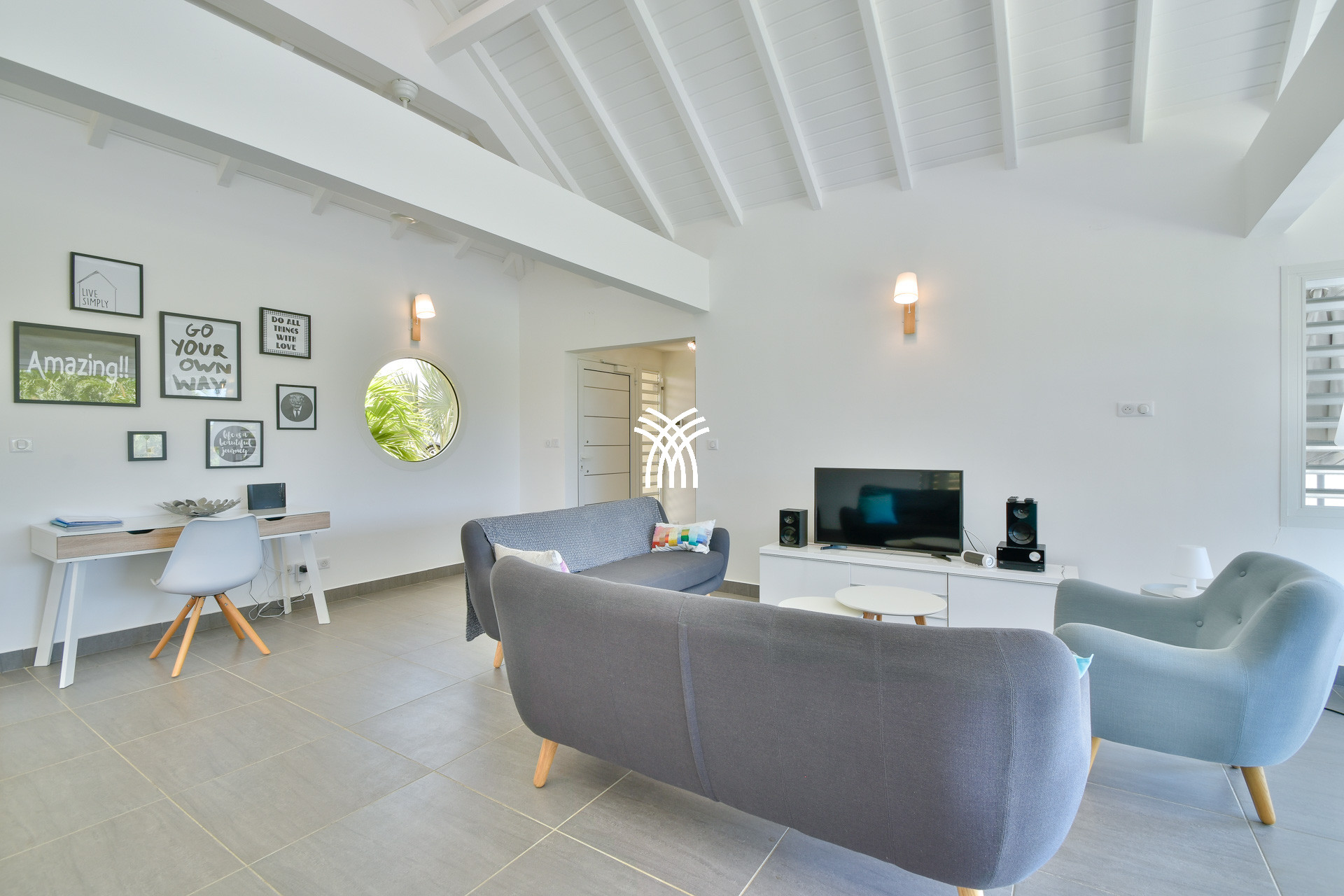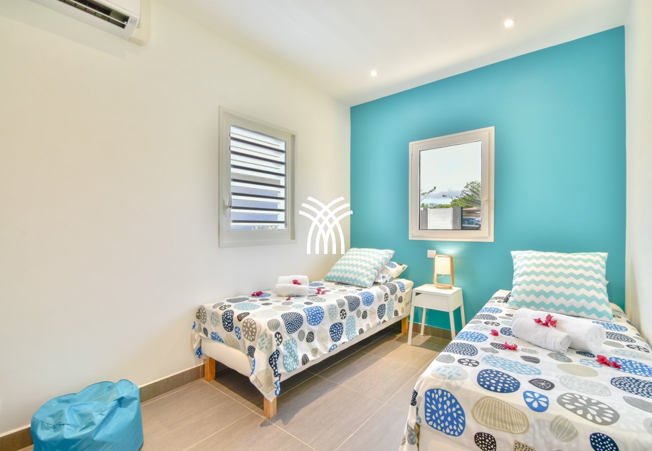 Located on the edge of the lagoon of St-François in a secured residence, villa Boubou Guadeloupe is a charming villa less than 15 meters from the beach, accessible through the private pontoon. Woith a capacity of 10 people, this holiday home offers 4 beautiful bedrooms with their own bathroom and a mezzanine. The fully equipped American kitchen extends to the living room and terrace with a sound system, offering a magical view of the sea.