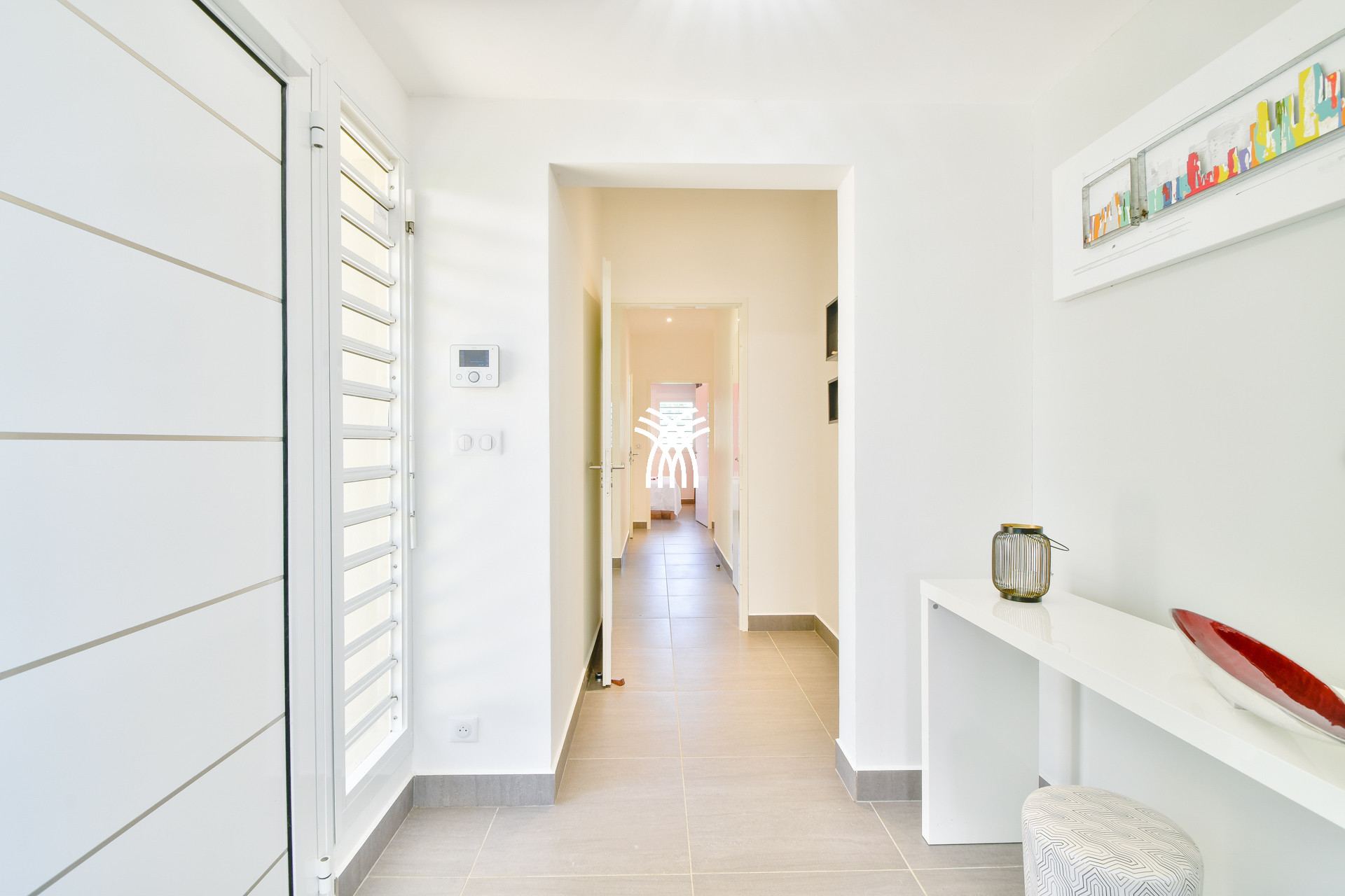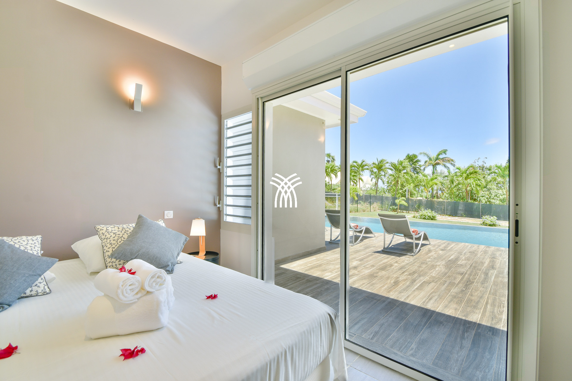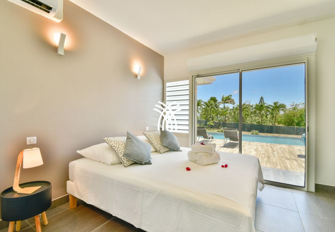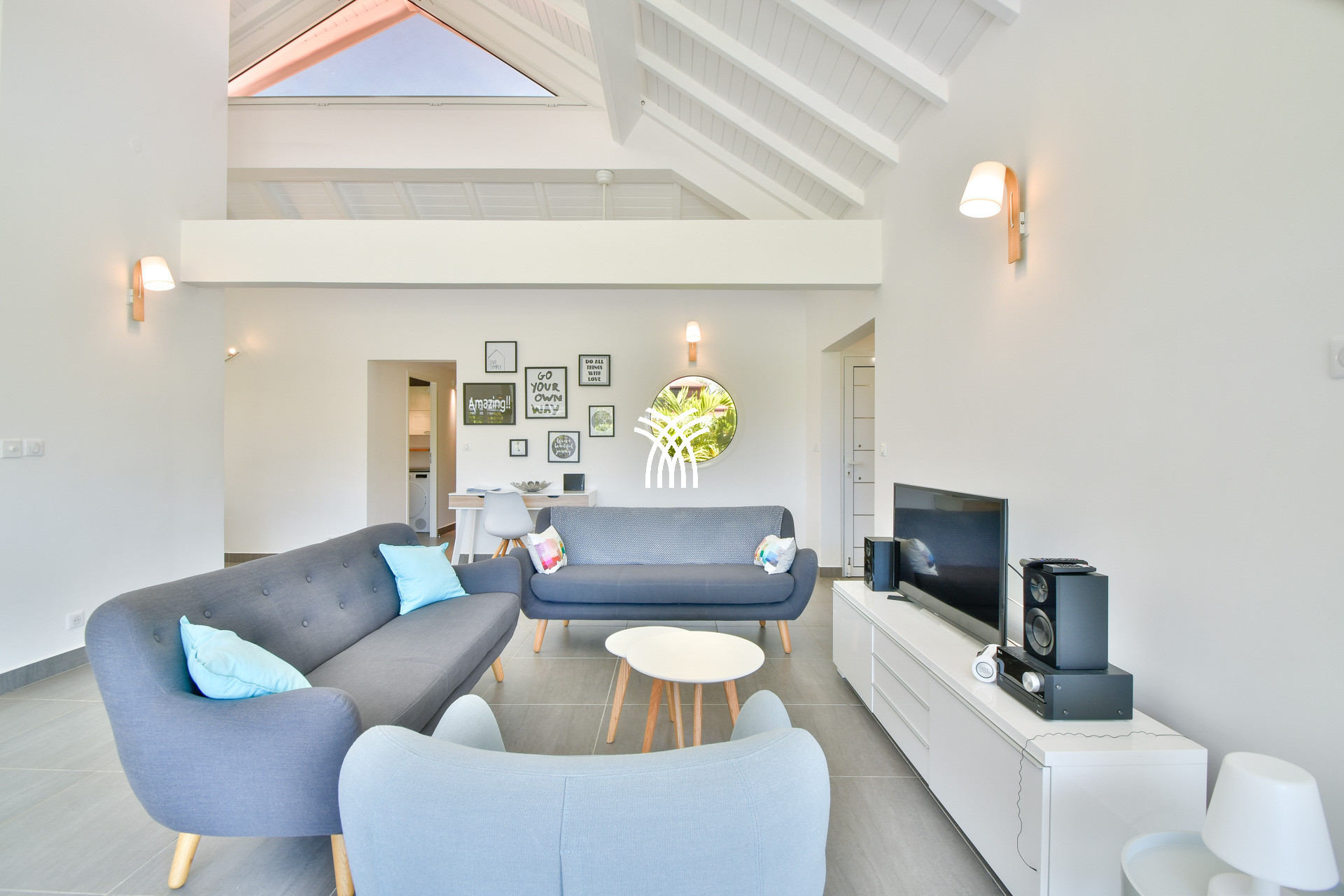 Located on the edge of the lagoon of St-François in a secured residence, villa Boubou Guadeloupe is a charming villa less than 15 meters from the beach, accessible through the private pontoon. Woith a capacity of 10 people, this holiday home offers 4 beautiful bedrooms with their own bathroom and a mezzanine. The fully equipped American kitchen extends to the living room and terrace with a sound system, offering a magical view of the sea.