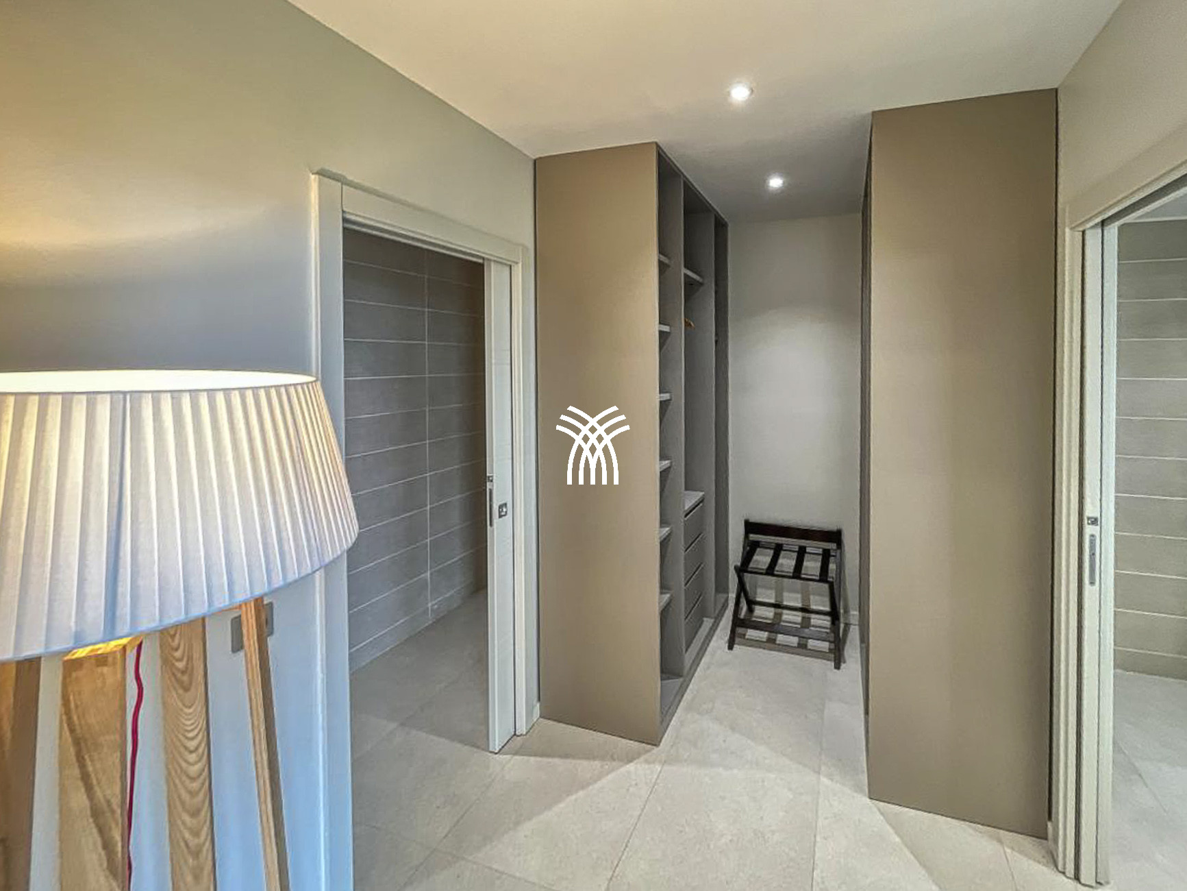 The ground floor reveals a fully equipped modern kitchen, opening onto a bright living room and dining area, oriented towards the marine horizon. The spacious terrace is the heart of the villa, perfect for convivial moments around a meal or aperitif while admiring the exceptional panorama. The infinity pool, seeming to merge with the sea, offers a unique visual and relaxing experience.