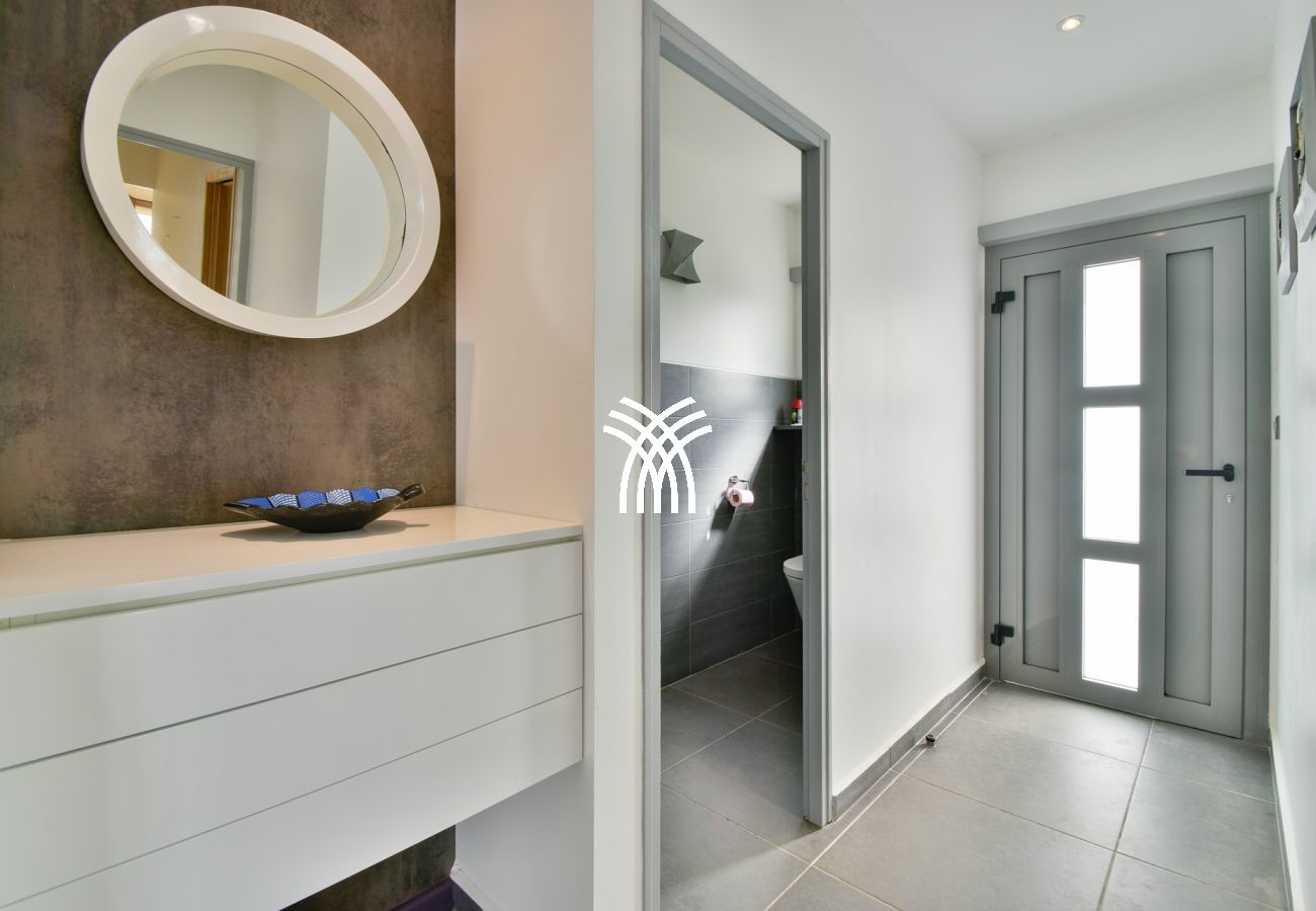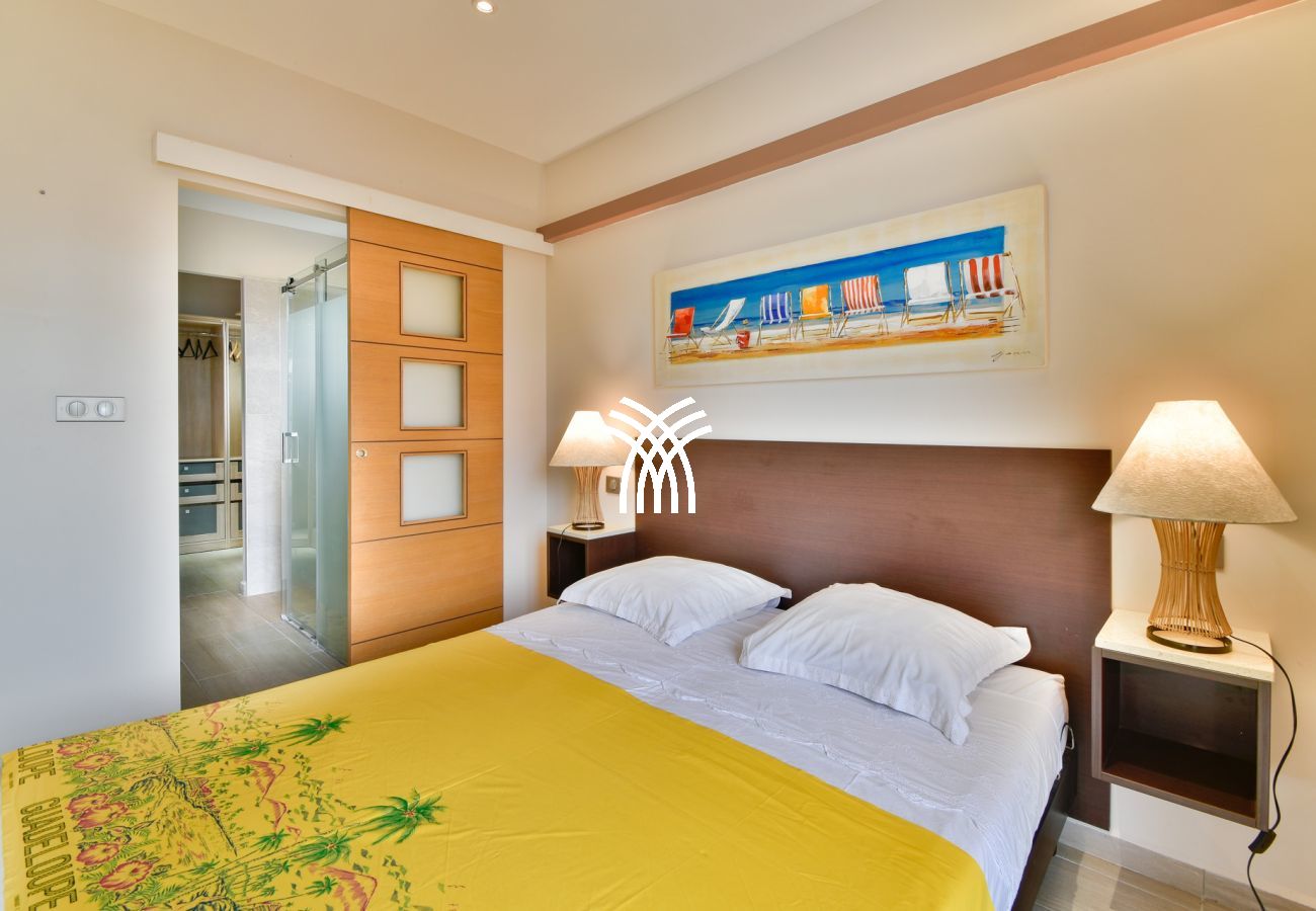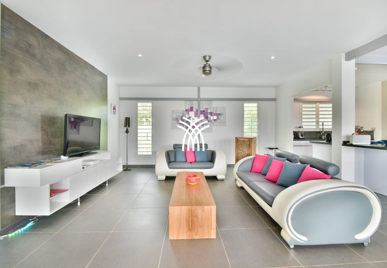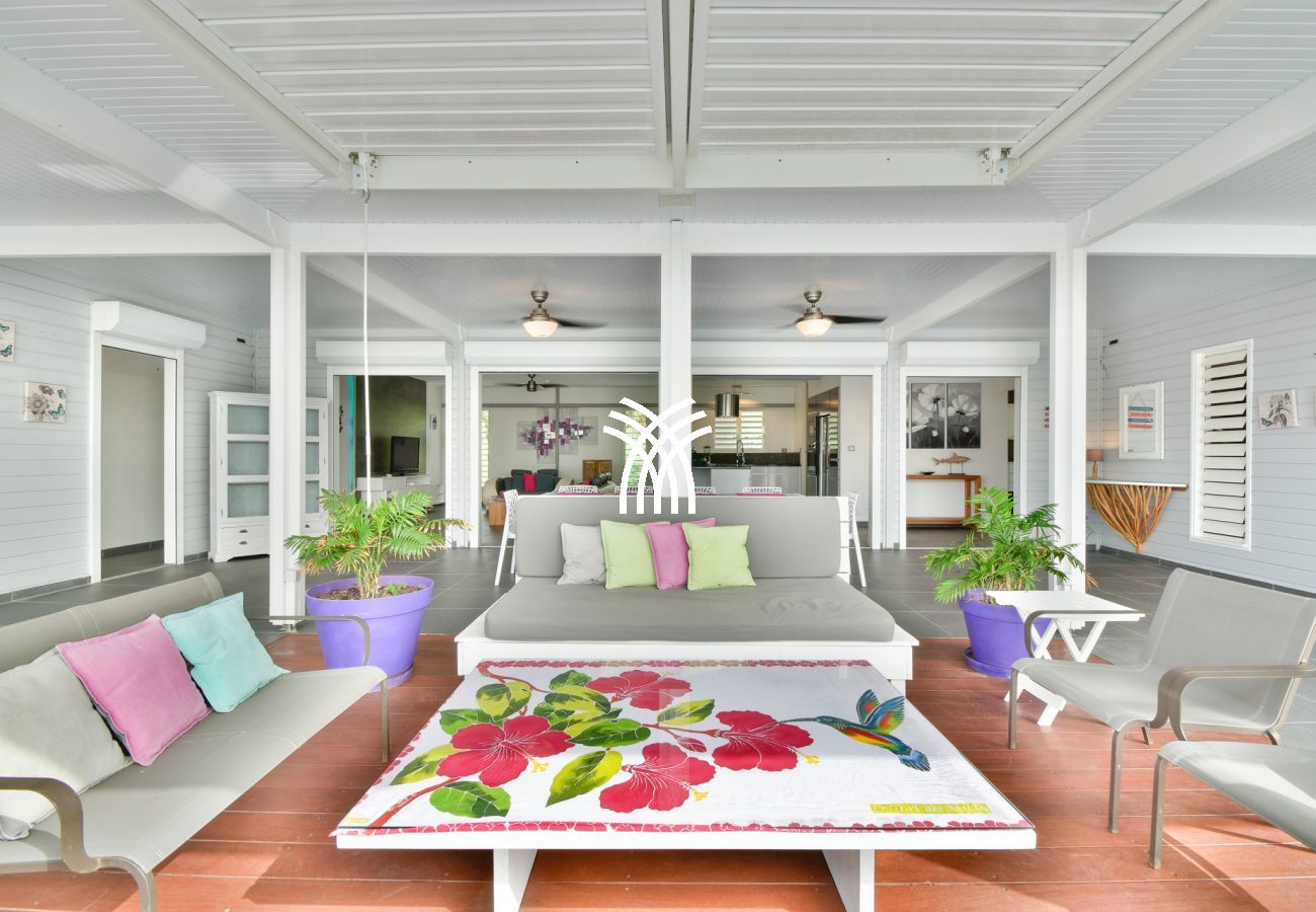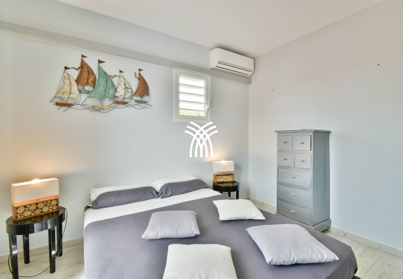 Villa Katorz is a charming villa in Guadeloupe located in Saint-François, offering a panoramic sea view and a beautiful 5x10m private salt water swimming pool. Designed for peaceful stays, this villa rental in Saint-François combines modern comfort and Creole atmosphere in a lush and intimate setting. The spacious living area opens onto a covered terrace overlooking the pool and a carbet, perfect for enjoying the softness of Guadeloupean evenings facing the sea.