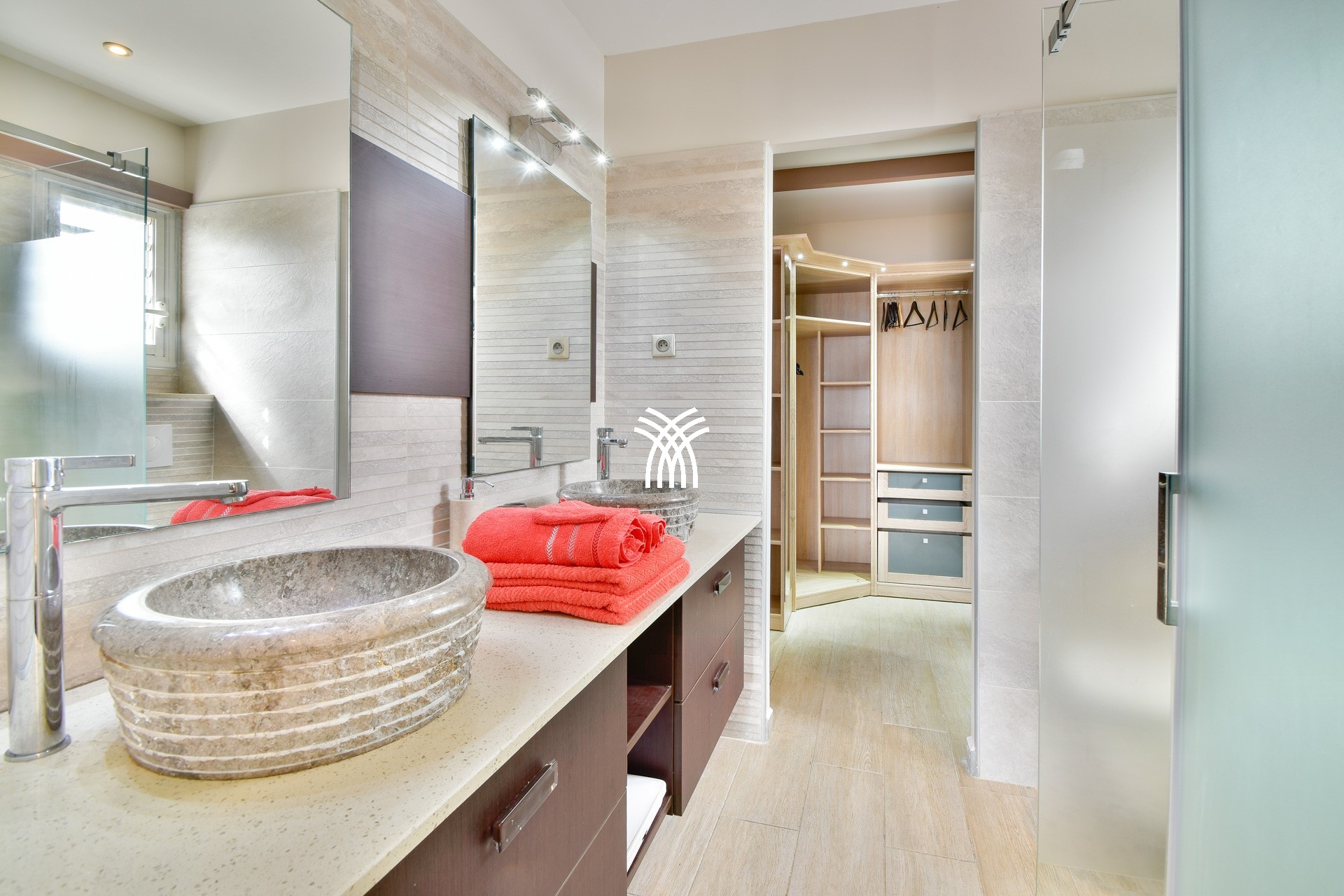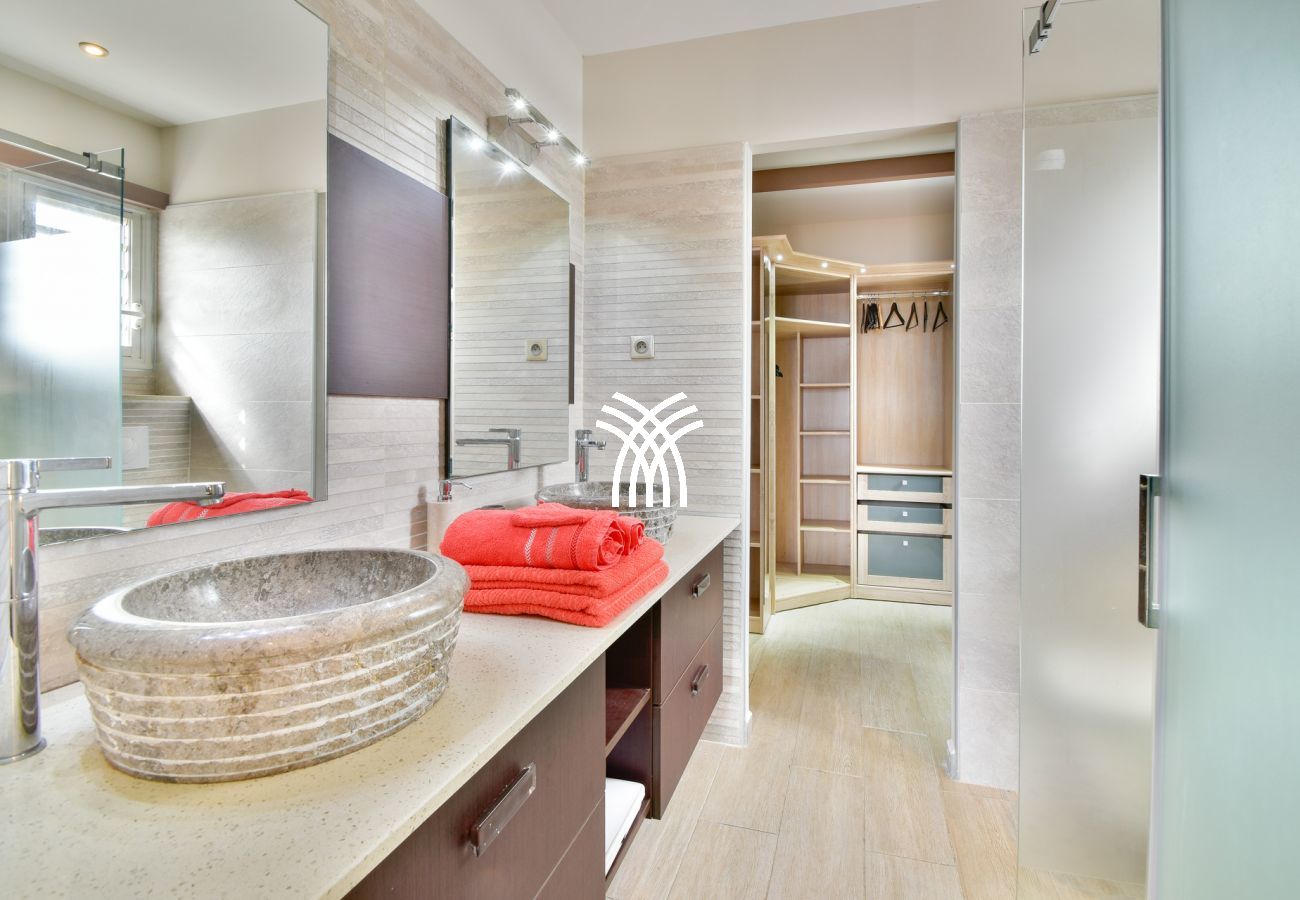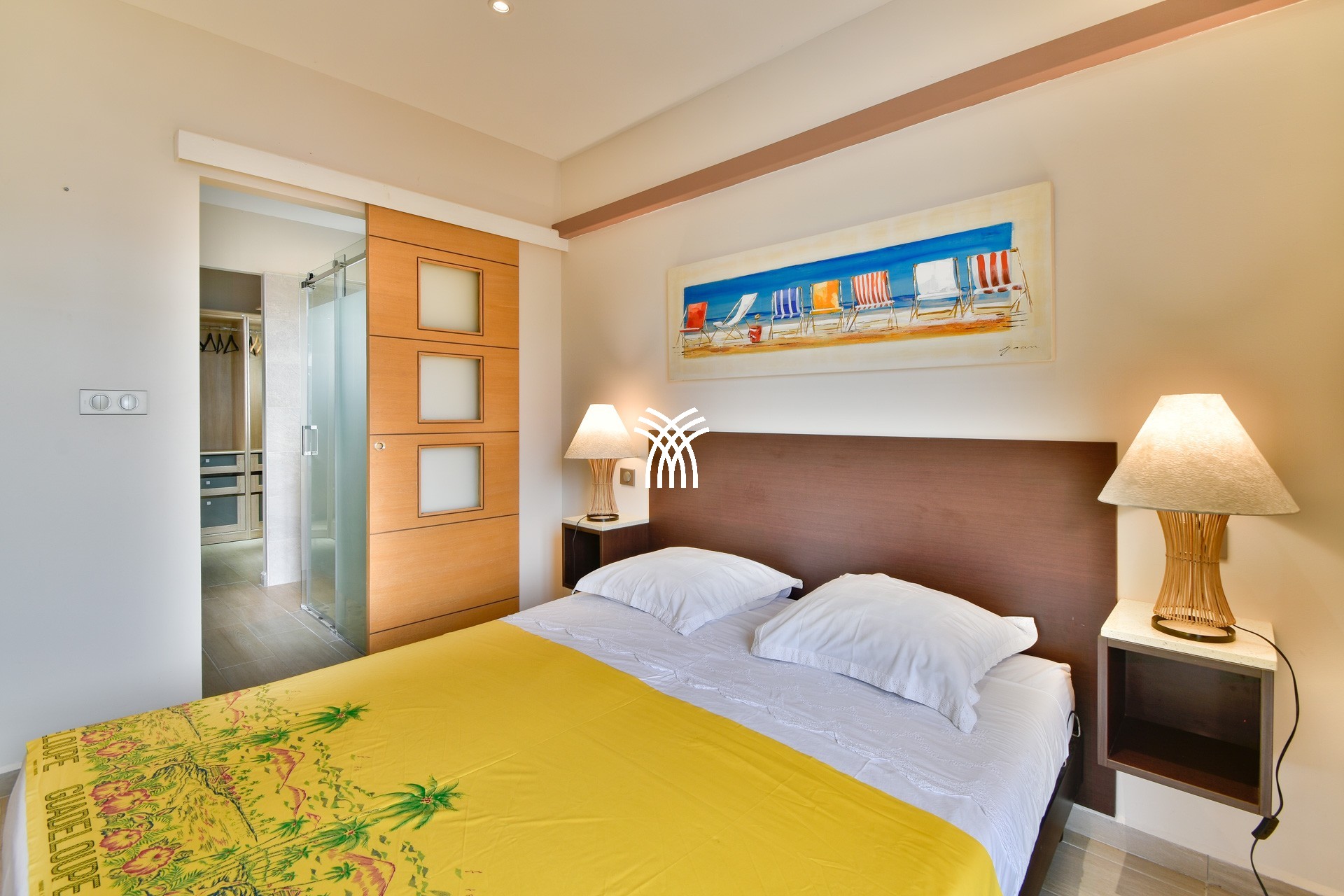 The villa has two bedrooms with private bathrooms, a friendly living area with a sofa bed that can accommodate up to six people, as well as a fully landscaped garden that ensures peace and privacy. The kitchen is fully equipped for your meals with family or friends: oven, hob, dishwasher, refrigerator, microwave, barbecue, coffee maker, kettle, blender, ice maker and even a lobster pot to savour local specialities.