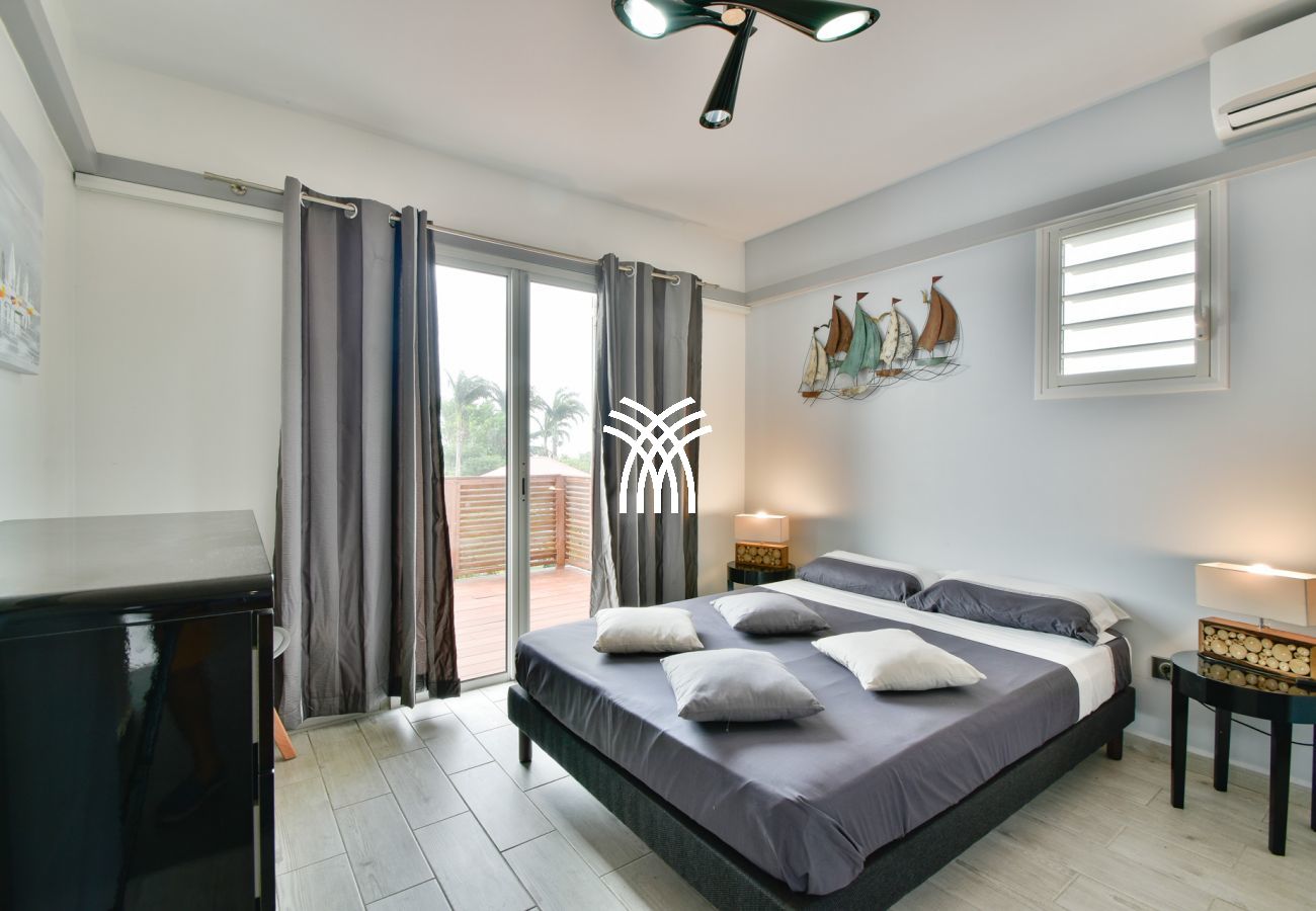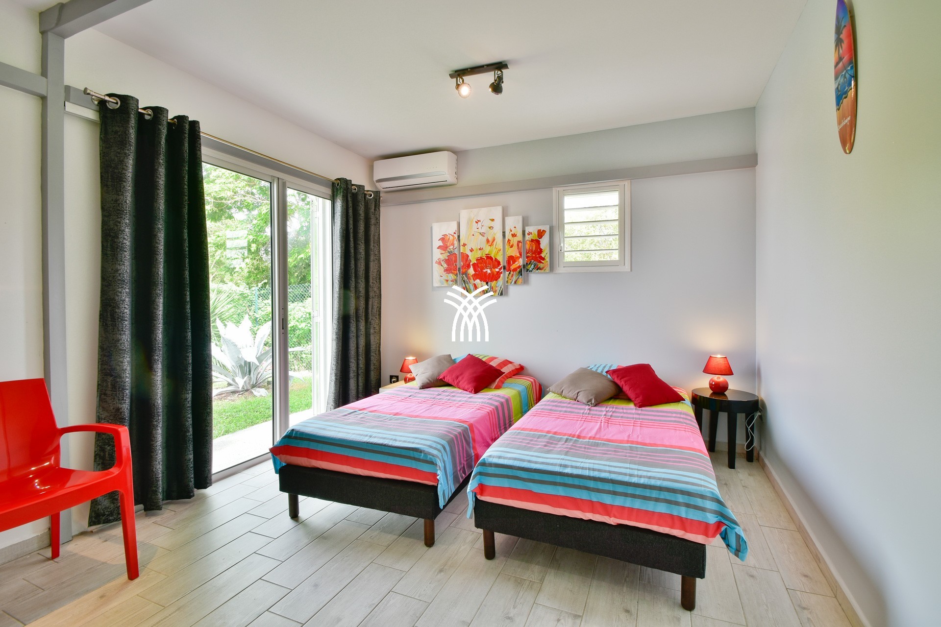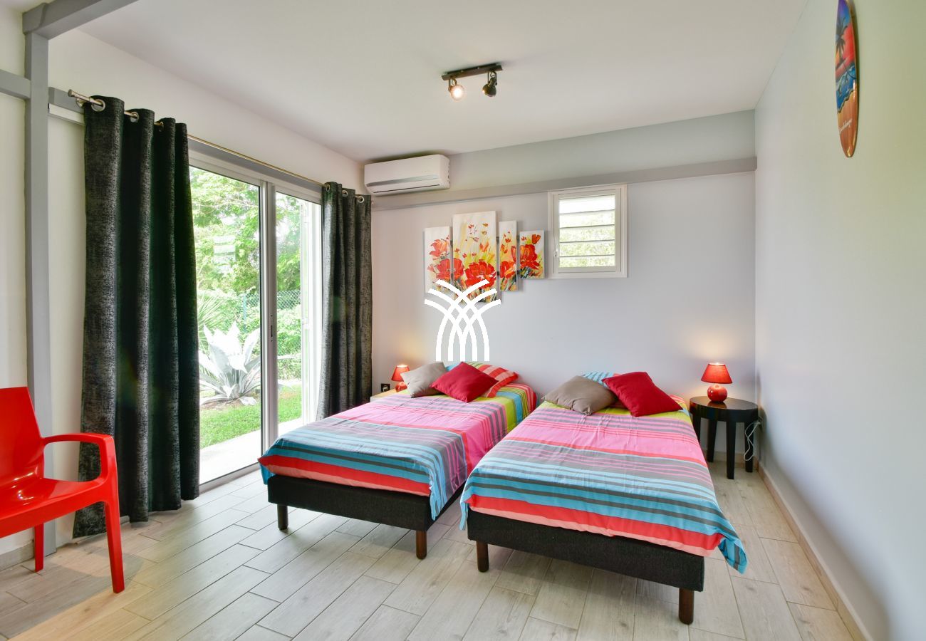 Villa Katorz benefits from a privileged location in Saint-François. The Pointe des Châteaux is located just 2.5 km away, the magnificent beach of Anse à la Gourde is 4.8 km away and also accessible on foot by a small path, and the Raisins Clairs beach is 10 minutes by car, in the heart of the lively Saint-François centre with its restaurants, markets and water activities.