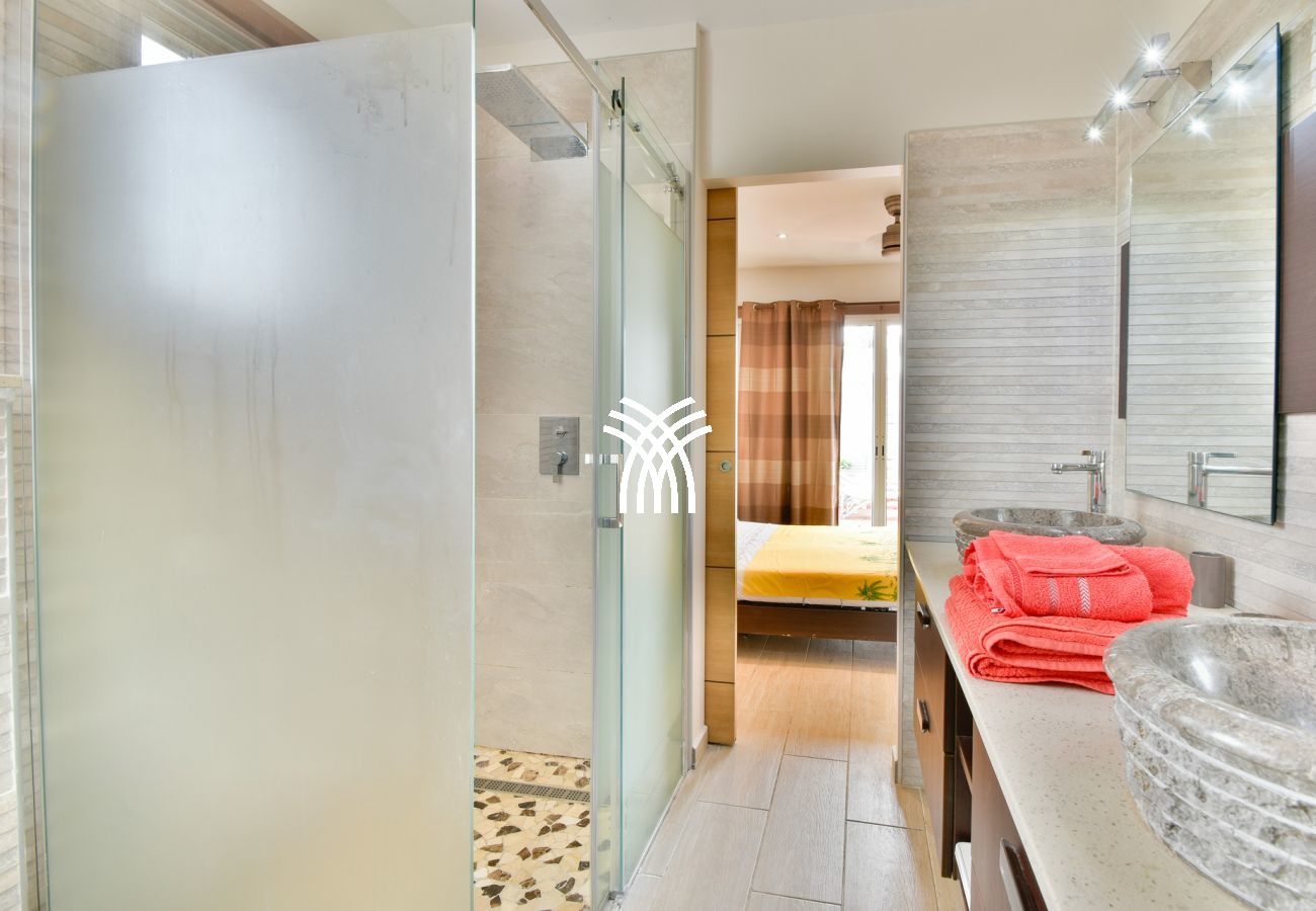 Villa Florence Guadeloupe is a brand new house located in Saint-François and stamped as "5* meublé de tourisme". His perfect location is at less than 15 minutes walk from La Coulée beach as well as the city center. With a capacity of 6 people, this contemporary holiday home features three air-conditioned bedrooms and two bathrooms. Lovely moments to share with family or friends are guaranteed thanks to the fully equipped kitchen and the covered terrace, real places of relaxation.