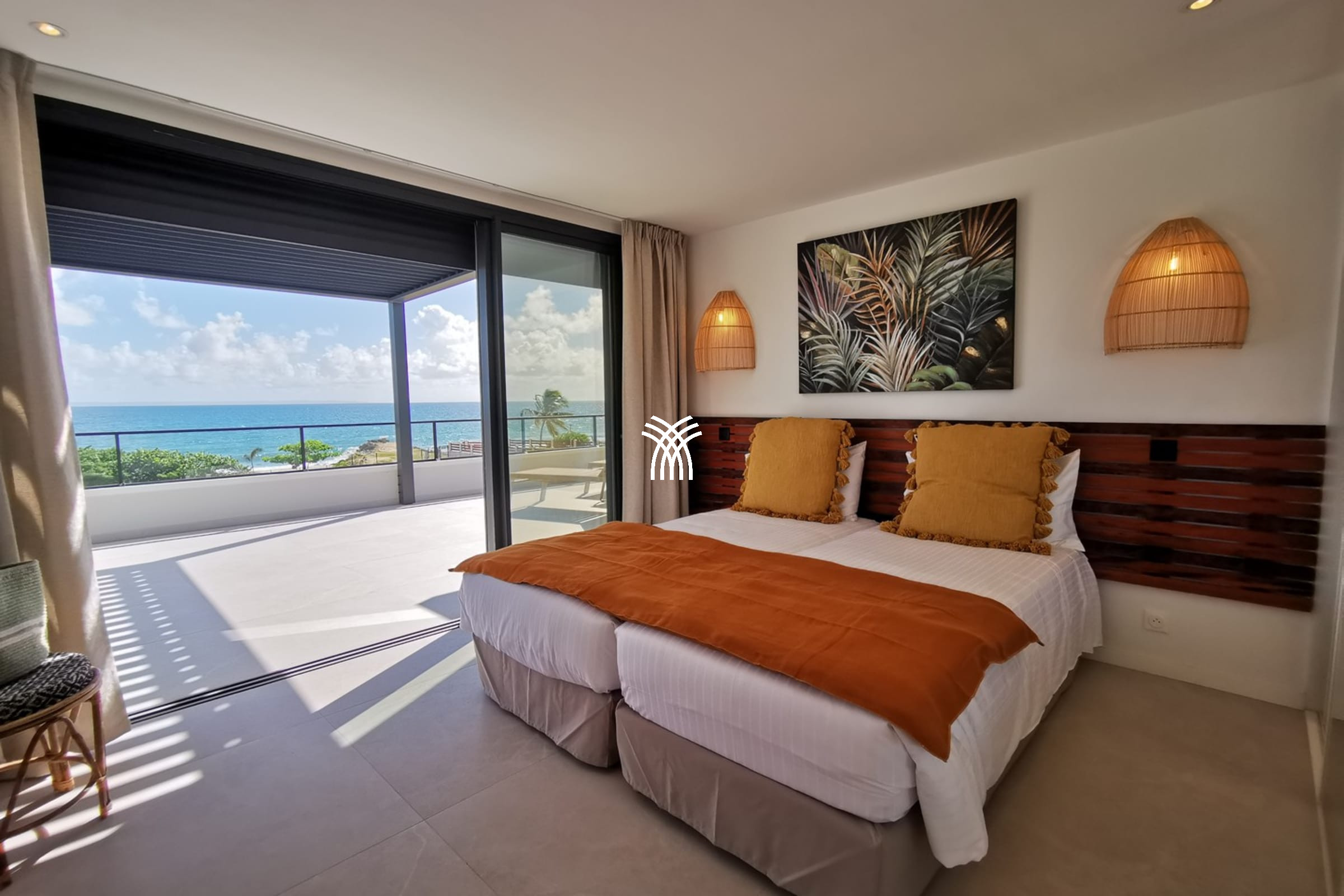 Located in a prestigious and secure residential area on the Tourist Route of Saint-François, the villa is designed on two levels and can accommodate up to 8 people in absolute comfort. It features four spacious bedrooms, one on the ground floor and three upstairs. Each bedroom has an en-suite bathroom and an unobstructed sea view, ensuring privacy and serenity for each guest.