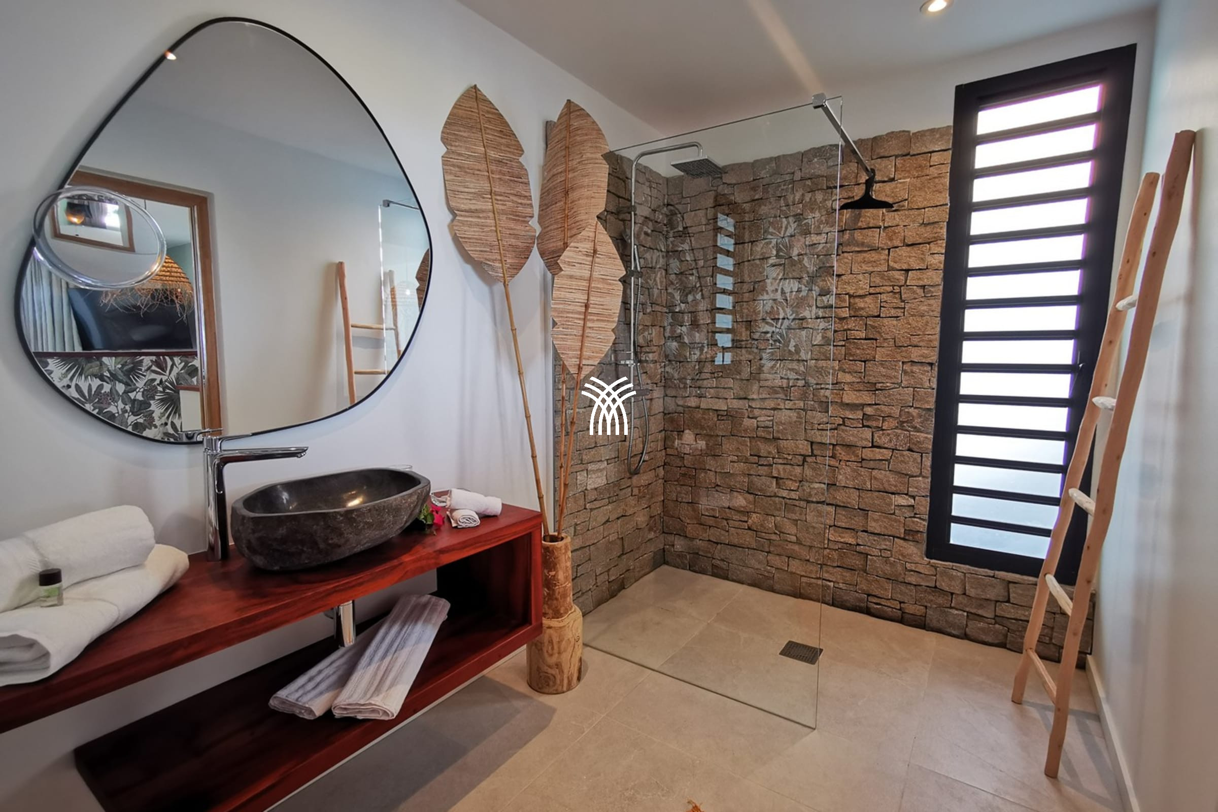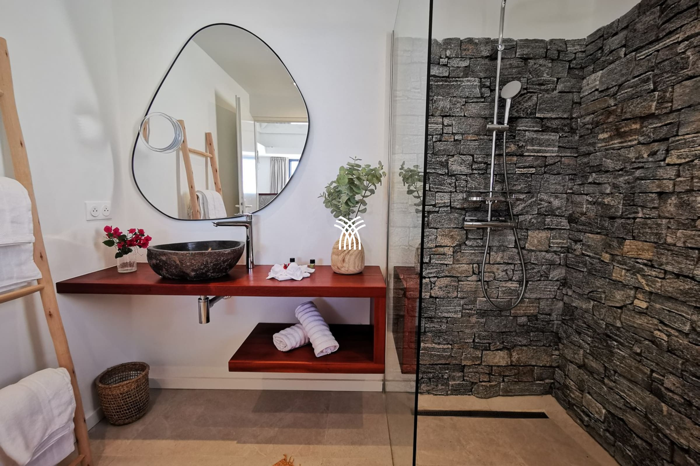 Just 50 meters away, a private gate provides access to a picturesque path that runs along the coastline to the preserved beach of Anse des Rochers, perfect for moments of calm and communion with nature.