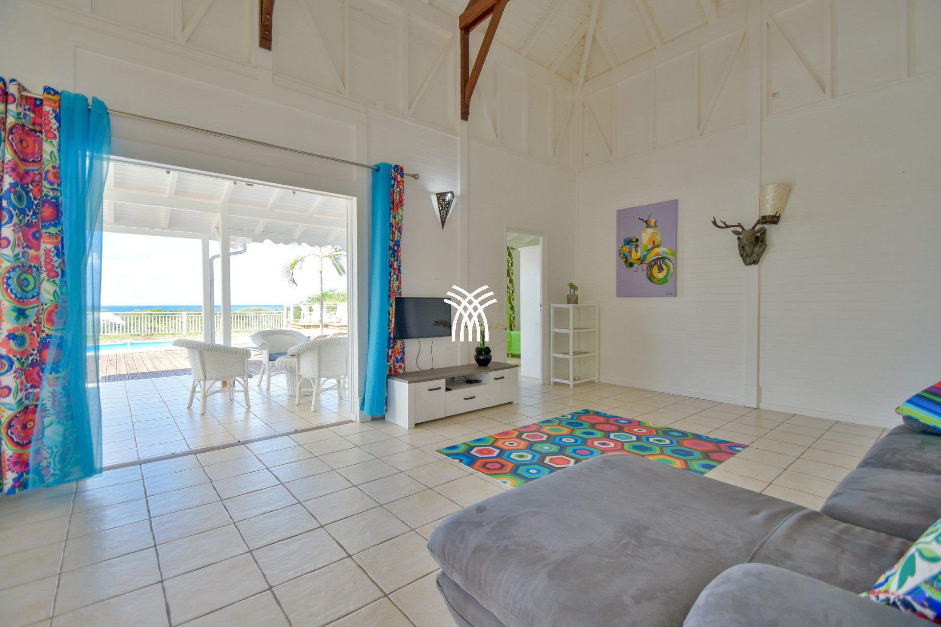 Villa Katorz is a charming villa in Guadeloupe located in Saint-François, offering a panoramic sea view and a beautiful 5x10m private salt water swimming pool. Designed for peaceful stays, this villa rental in Saint-François combines modern comfort and Creole atmosphere in a lush and intimate setting. The spacious living area opens onto a covered terrace overlooking the pool and a carbet, perfect for enjoying the softness of Guadeloupean evenings facing the sea.