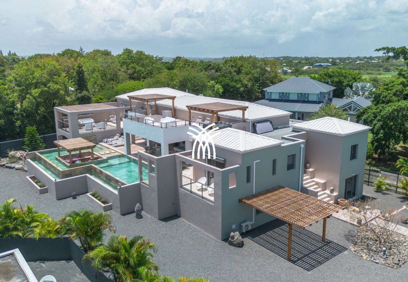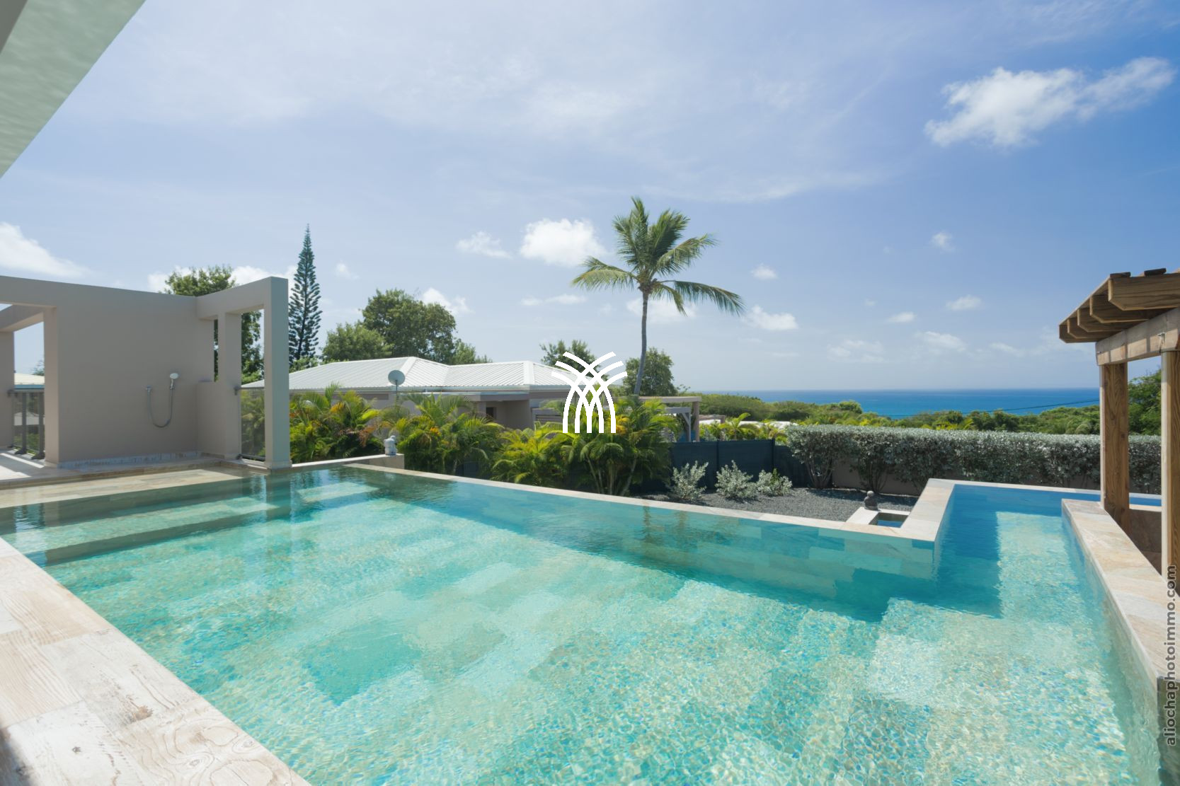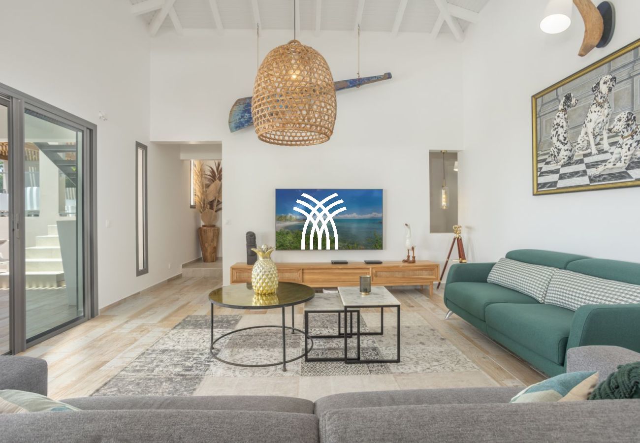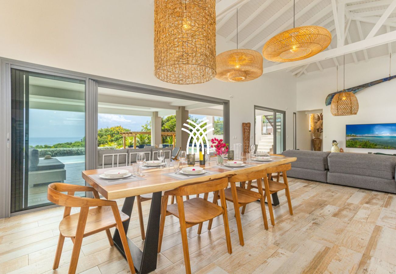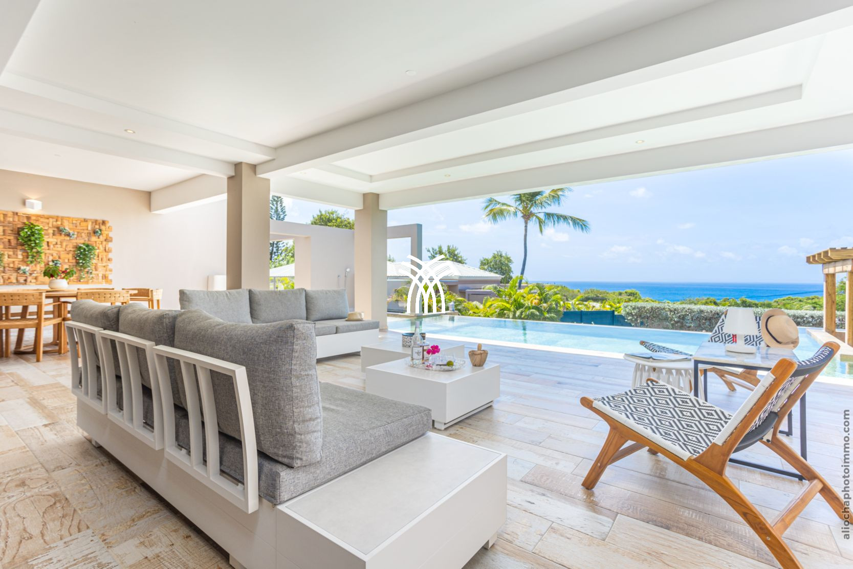 Karibea is a luxury villa located in Saint-François, perfect for an unforgettable vacation in Guadeloupe. Designed by a renowned architect, it is fully oriented towards the sea and offers an idyllic setting with its four suites, pool, and jacuzzi. Nestled in a dreamlike environment, the villa provides breathtaking views of the turquoise waters of the Caribbean Sea, the island of Marie-Galante, and spectacular sunsets. Every detail, both inside and out, has been carefully crafted to deliver absolute comfort and unmatched well-being. This spacious and light-filled villa harmoniously combines contemporary architecture with chic Creole-inspired decor, creating a truly unique experience.