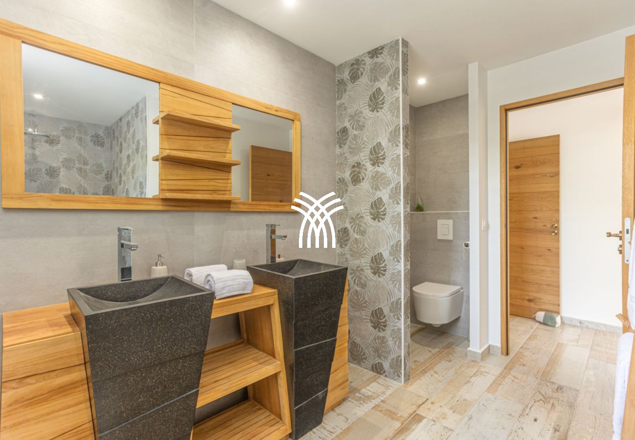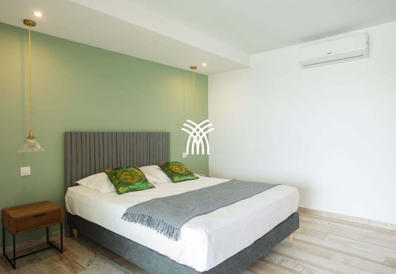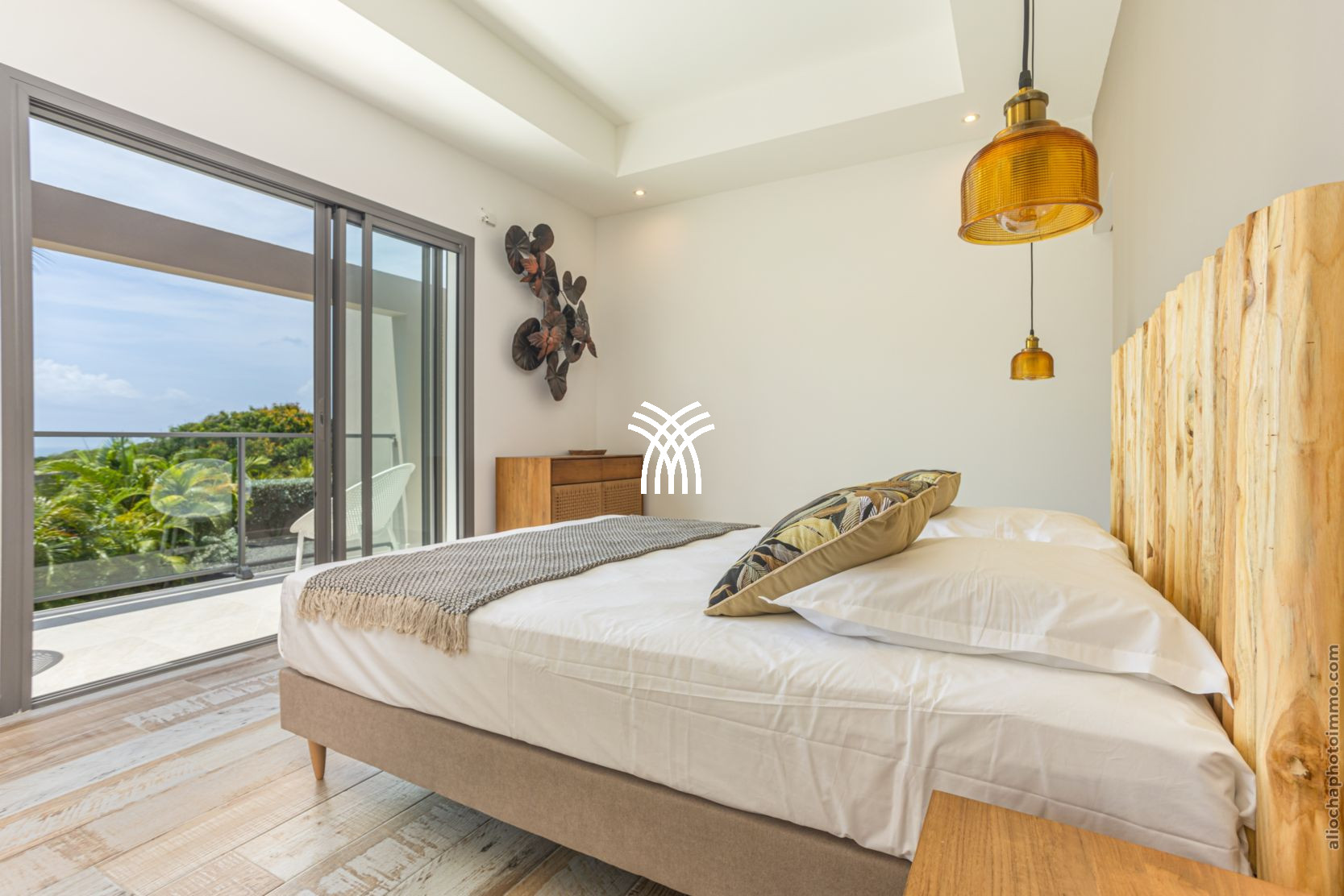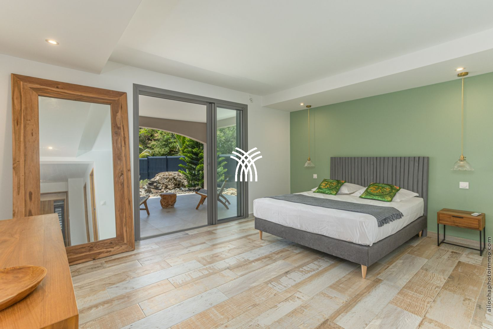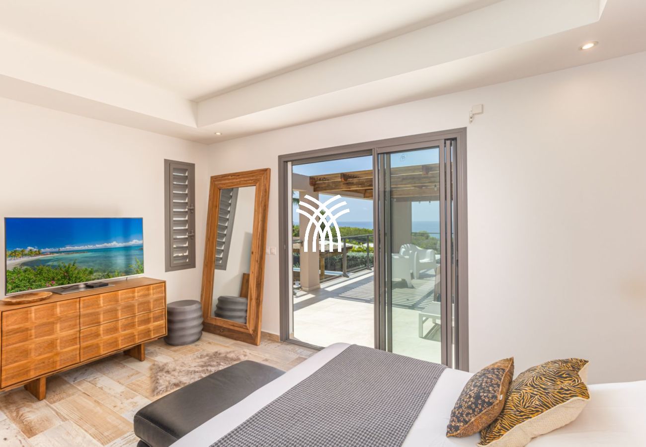 Karibea offers four air-conditioned suites with sea views. The master suite, spanning 30 m², delivers a 5-star hotel experience with a king-size bed, a luxurious bathroom, and a private terrace. The other bedrooms, each with their own en-suite bathrooms, blend charm and elegance to ensure comfort and privacy for all guests. The fourth suite, independent and accessible via a contemporary staircase, features a private terrace with stunning sea views.