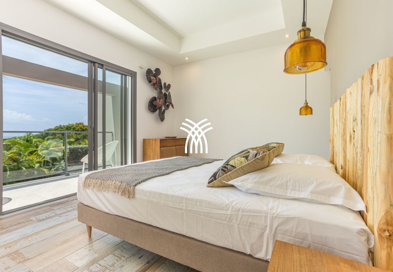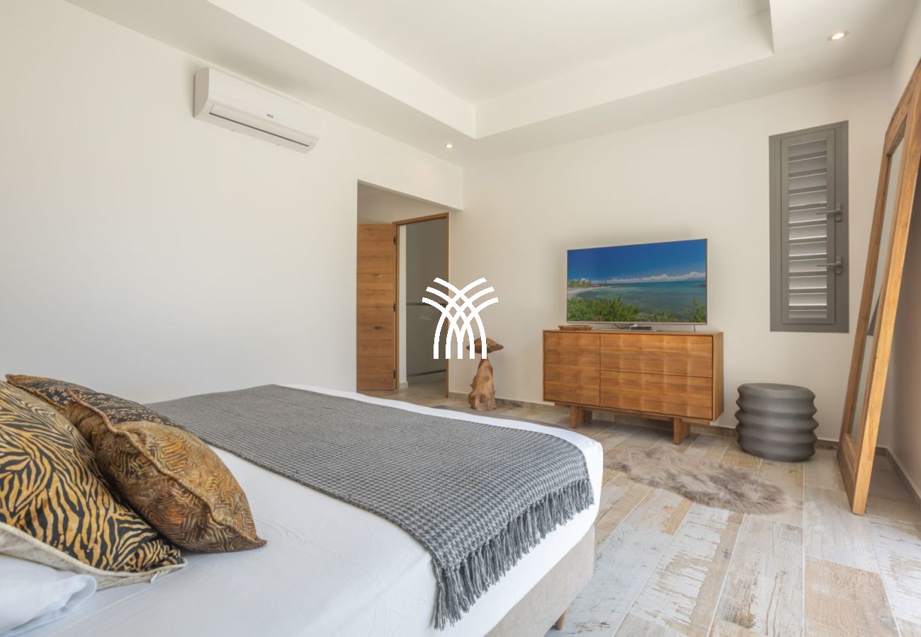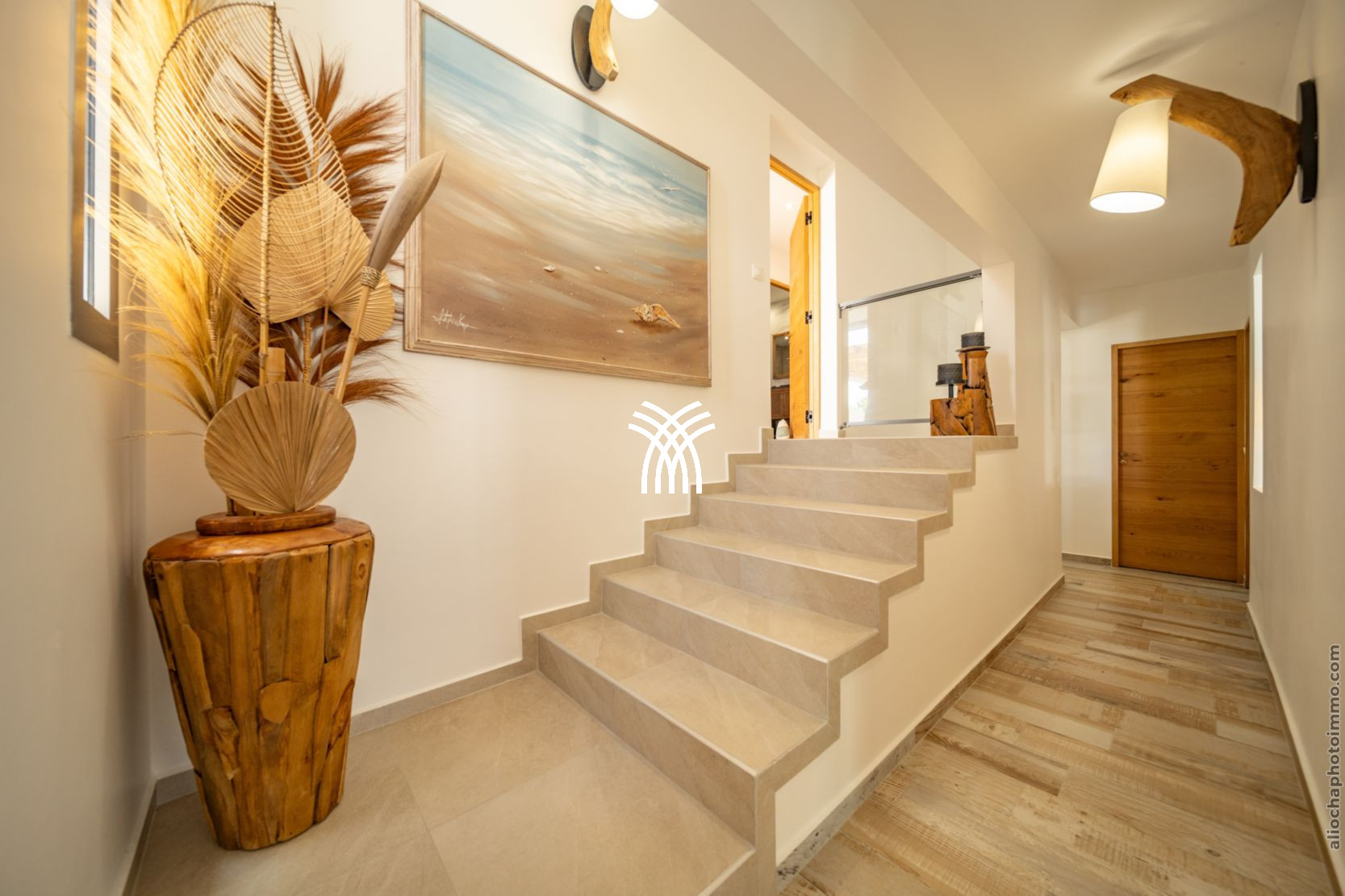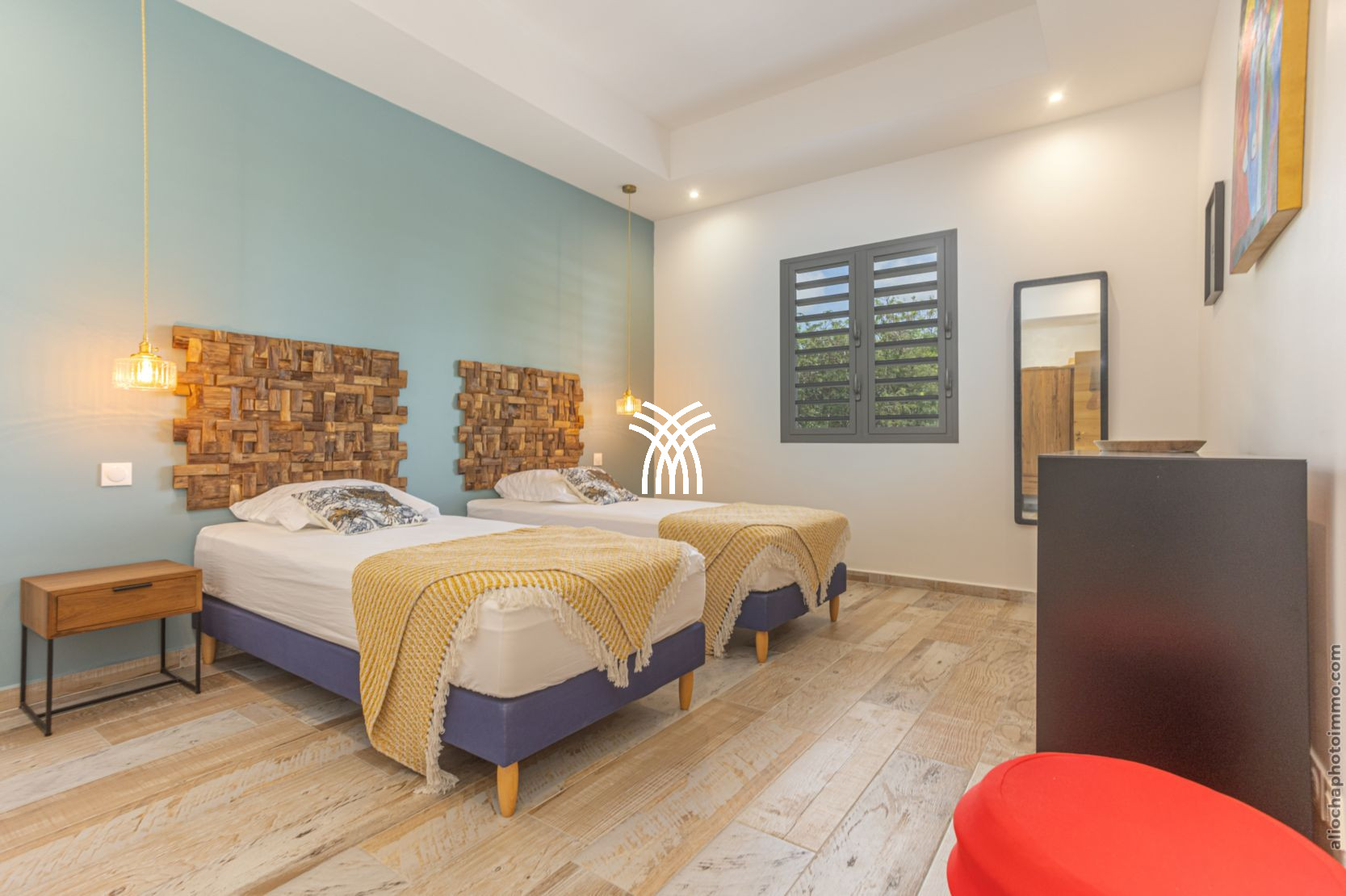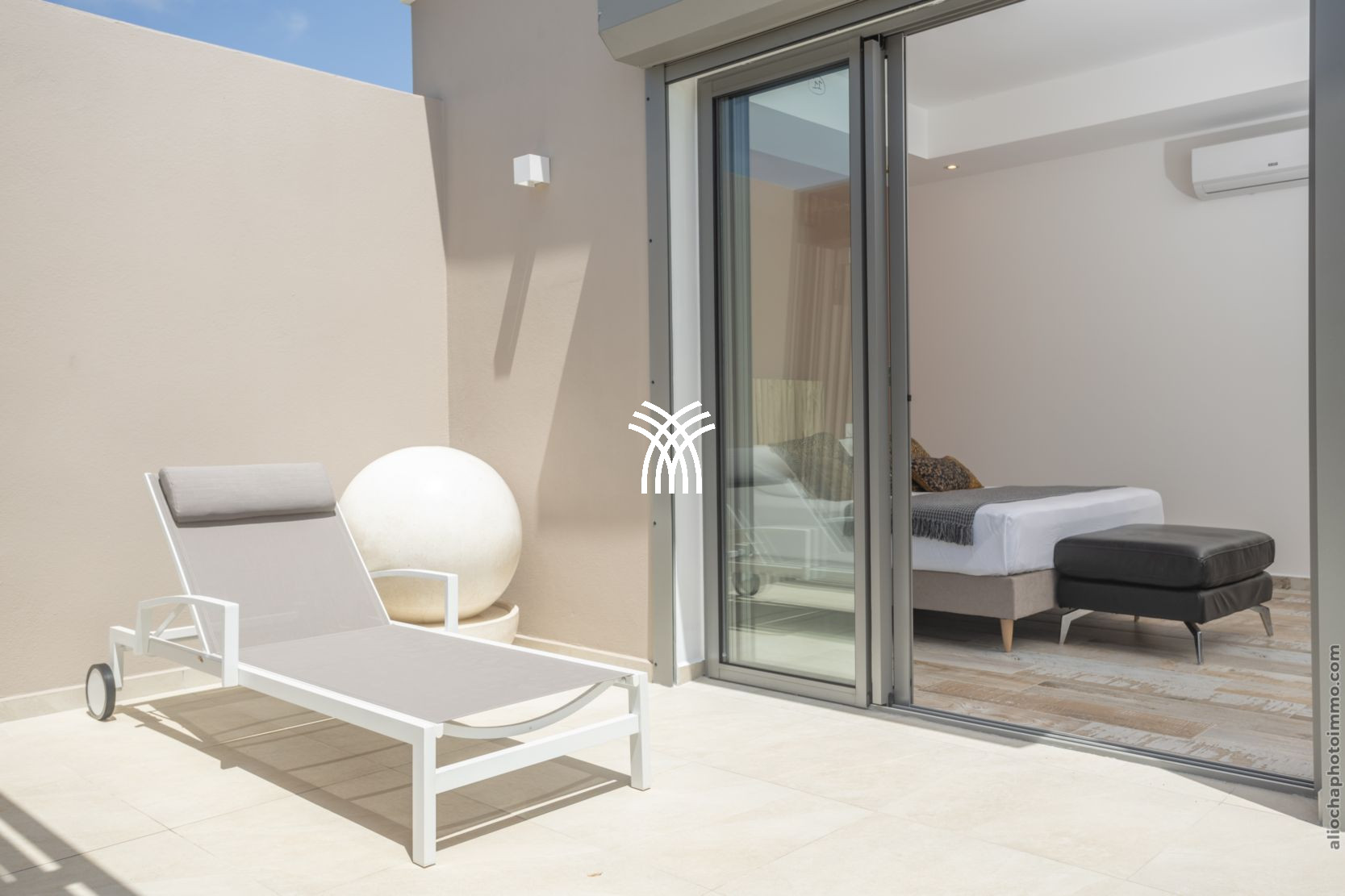 Karibea offers four air-conditioned suites with sea views. The master suite, spanning 30 m², delivers a 5-star hotel experience with a king-size bed, a luxurious bathroom, and a private terrace. The other bedrooms, each with their own en-suite bathrooms, blend charm and elegance to ensure comfort and privacy for all guests. The fourth suite, independent and accessible via a contemporary staircase, features a private terrace with stunning sea views.