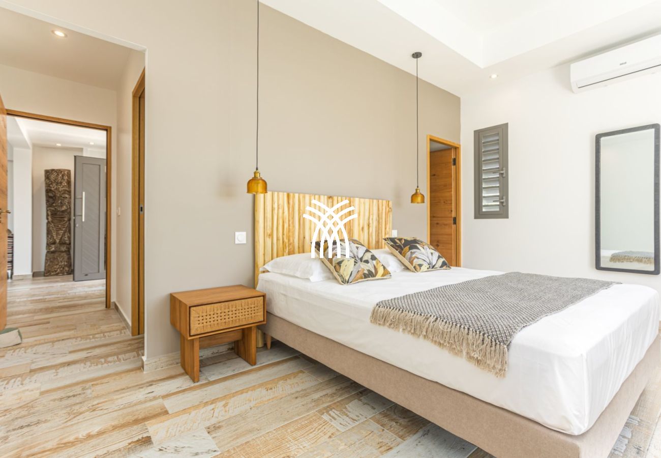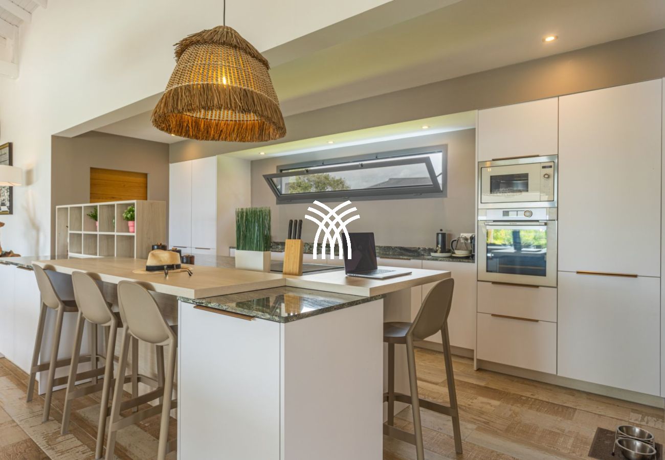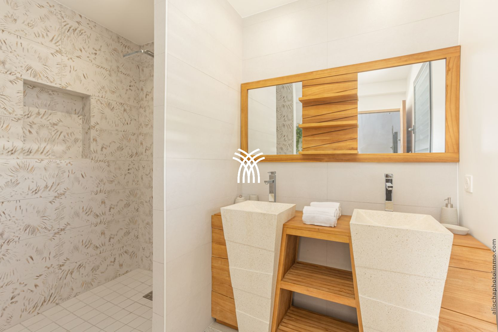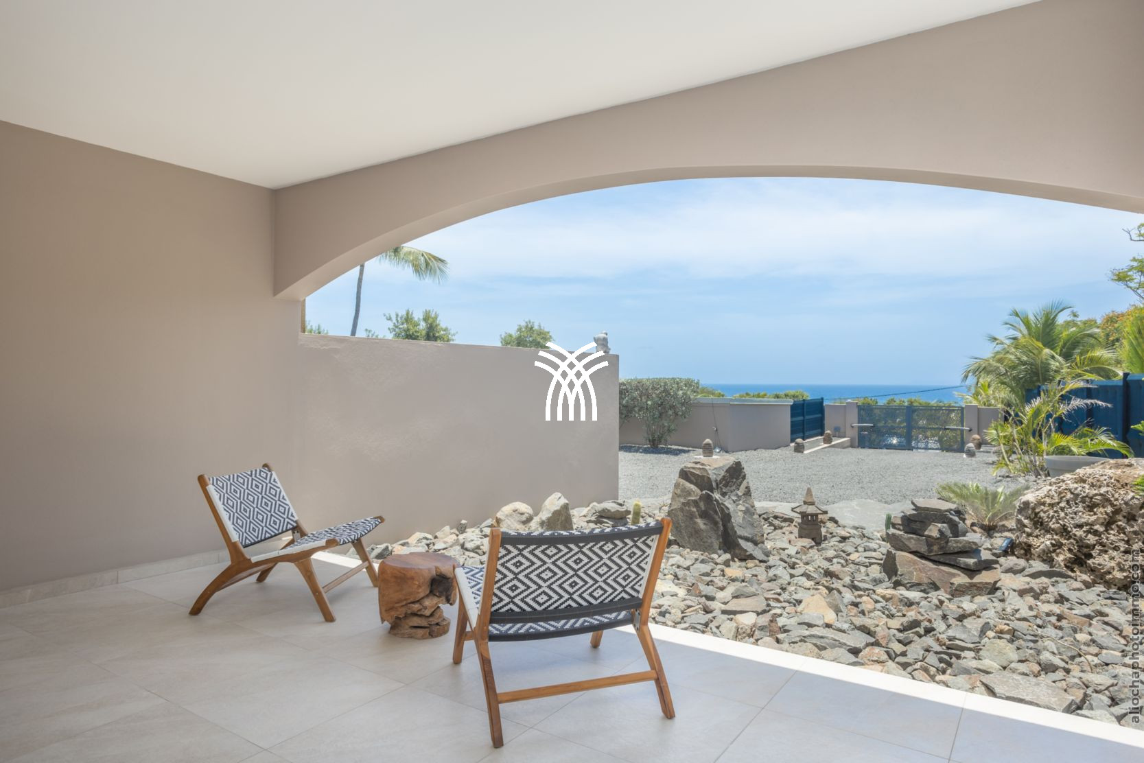 The single-storey Abawak villa features 4 air-conditioned bedrooms tastefully decorated to offer comfort and serenity. The main master suite is a true cocoon with a king-size bed, walk-in closet, and private bathroom. A second master suite offers a unique experience with an outdoor shower under the starry sky of Guadeloupe.