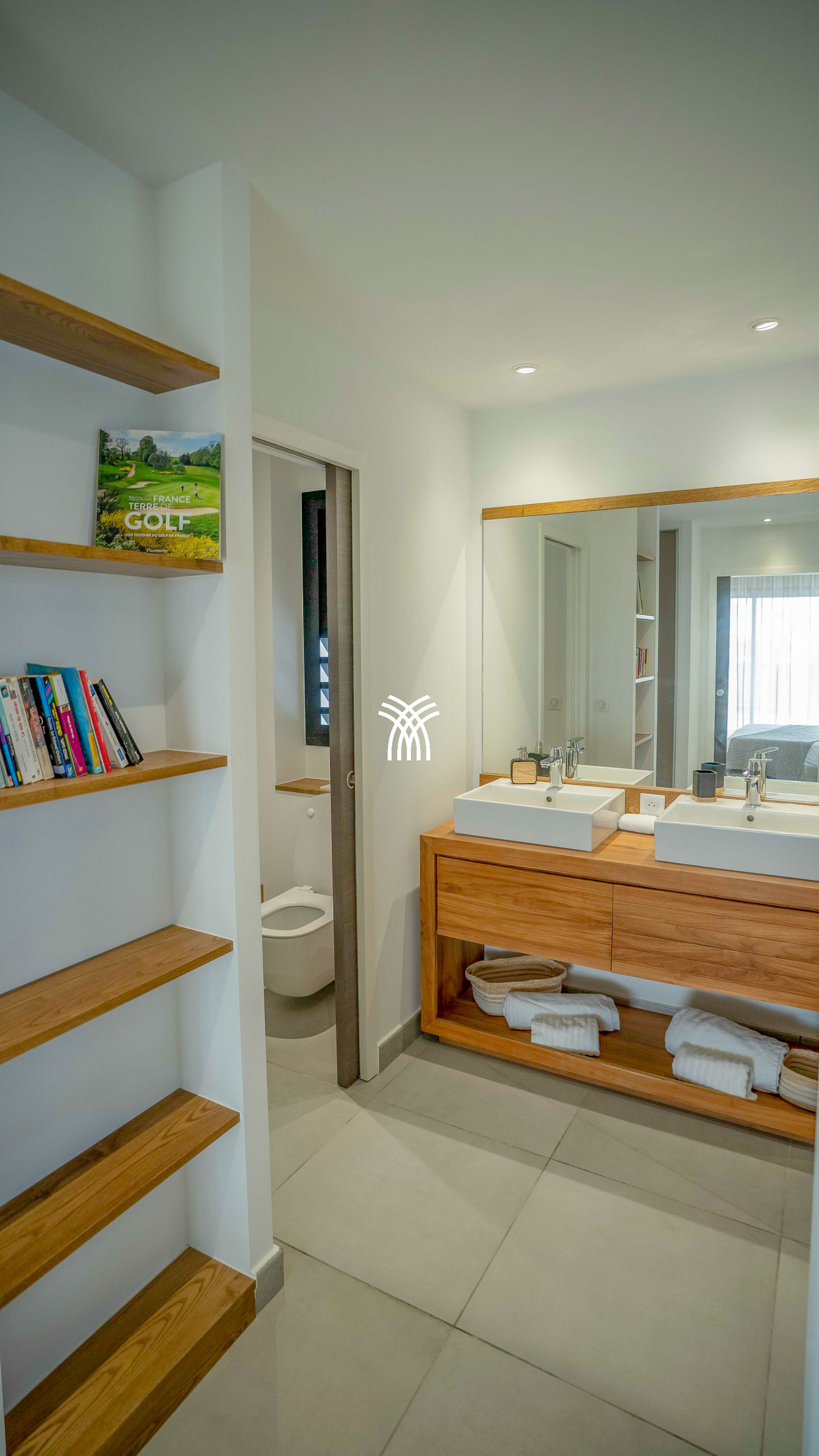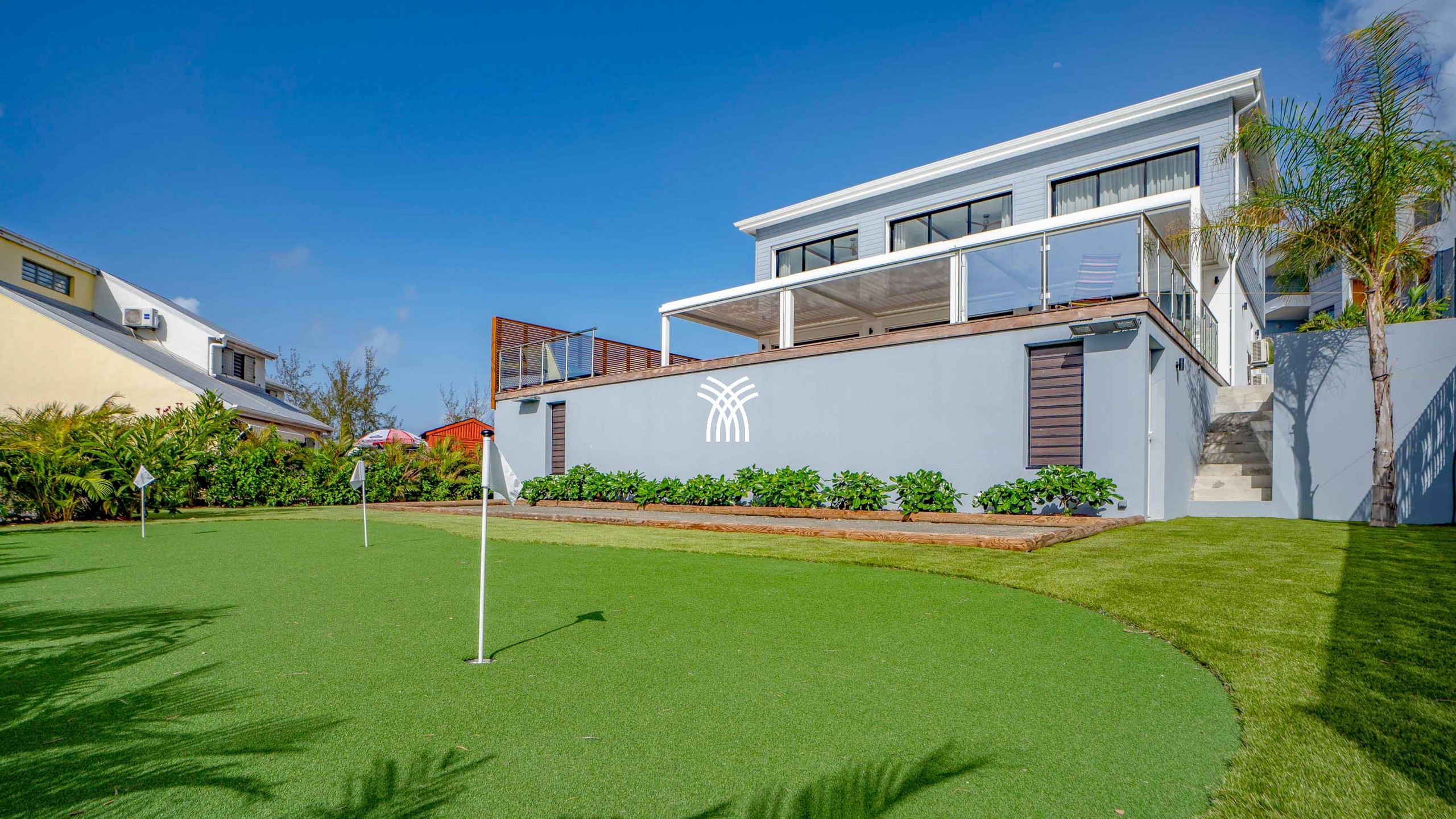 The villa's outdoor areas are a true haven of relaxation. A private 8x3.5-metre swimming pool surrounded by sun loungers invites you to unwind, while a golf green adds a playful and unique touch to your stay. Multiple relaxation areas, spread between the interior and exterior, offer perfect spaces to rest, gather with family or friends, or simply admire the landscape.
