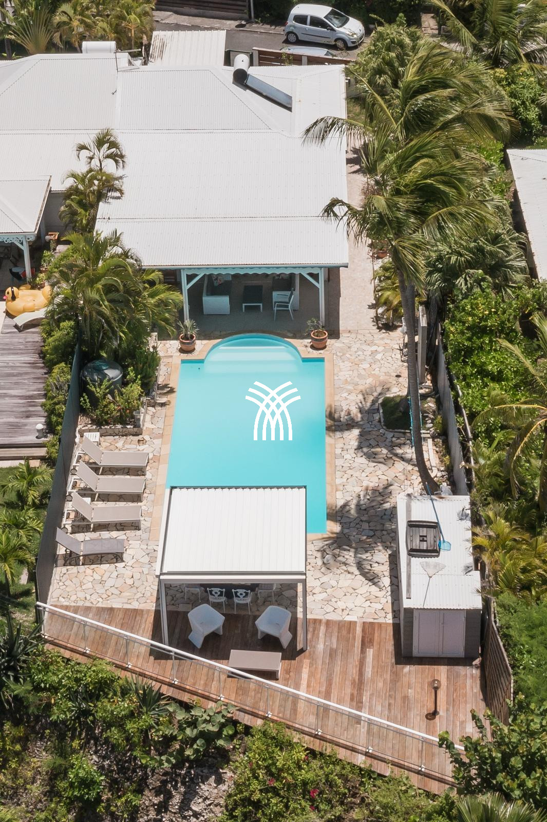 Villa Katorz benefits from a privileged location in Saint-François. The Pointe des Châteaux is located just 2.5 km away, the magnificent beach of Anse à la Gourde is 4.8 km away and also accessible on foot by a small path, and the Raisins Clairs beach is 10 minutes by car, in the heart of the lively Saint-François centre with its restaurants, markets and water activities.