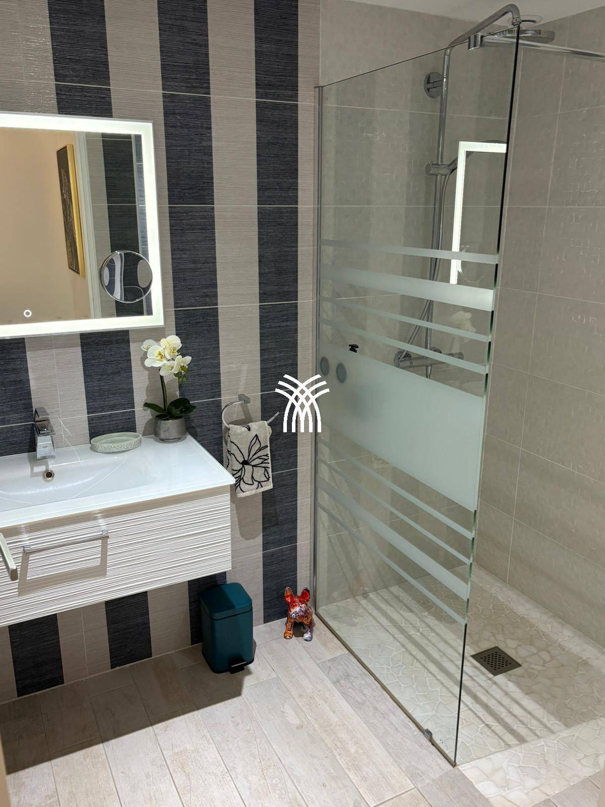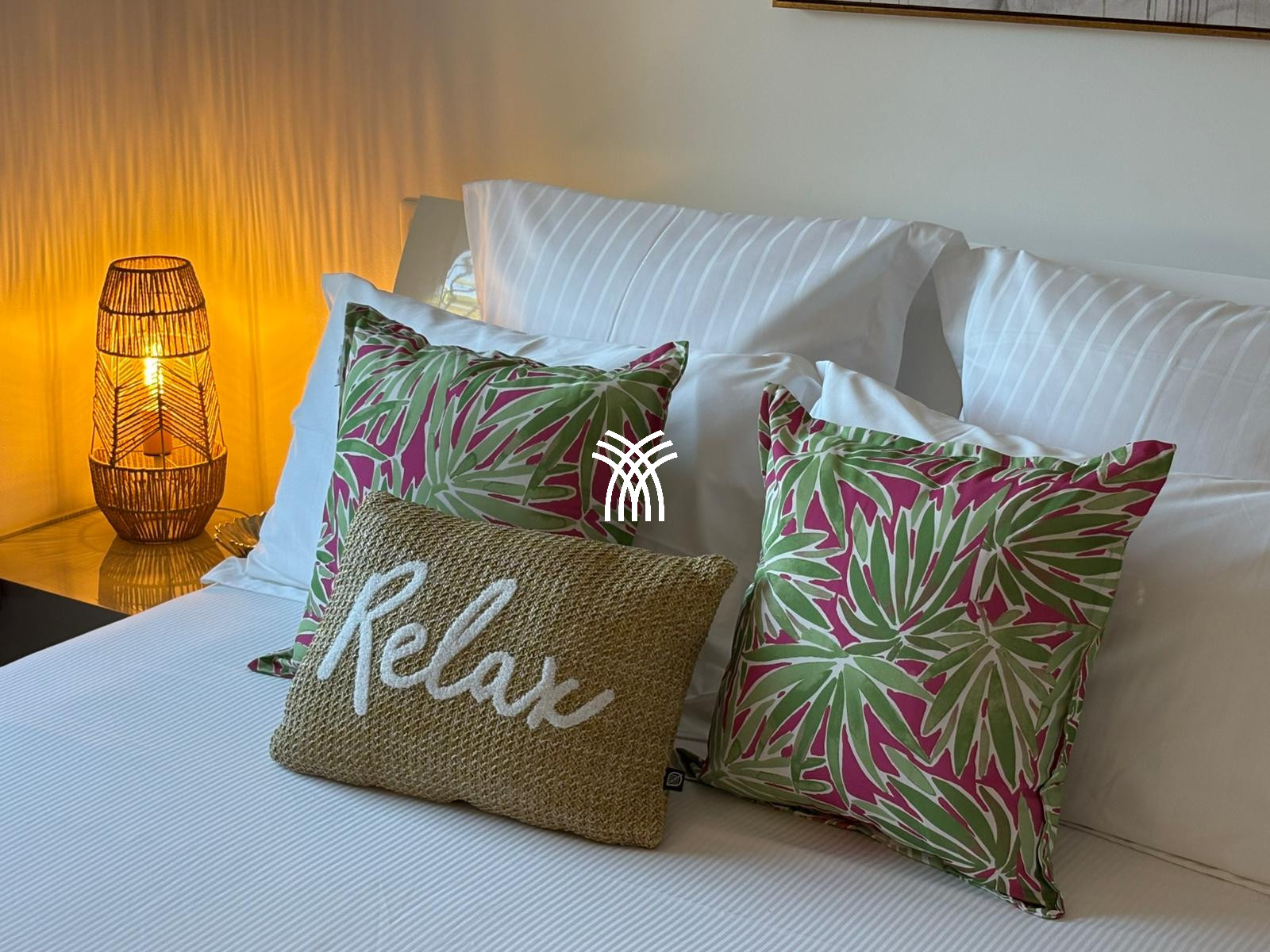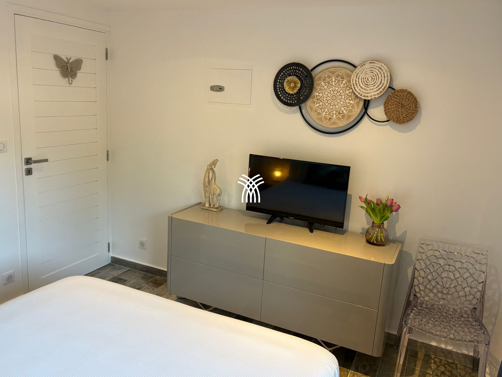 The villa has two bedrooms with private bathrooms, a friendly living area with a sofa bed that can accommodate up to six people, as well as a fully landscaped garden that ensures peace and privacy. The kitchen is fully equipped for your meals with family or friends: oven, hob, dishwasher, refrigerator, microwave, barbecue, coffee maker, kettle, blender, ice maker and even a lobster pot to savour local specialities.