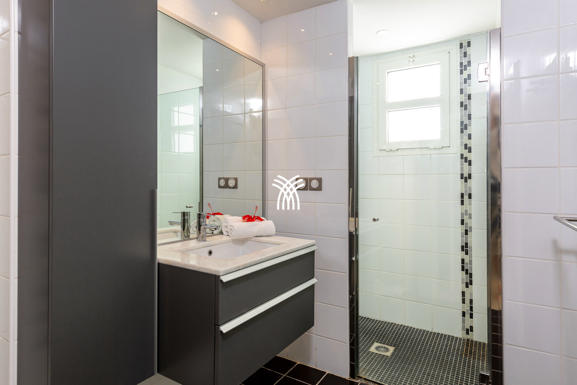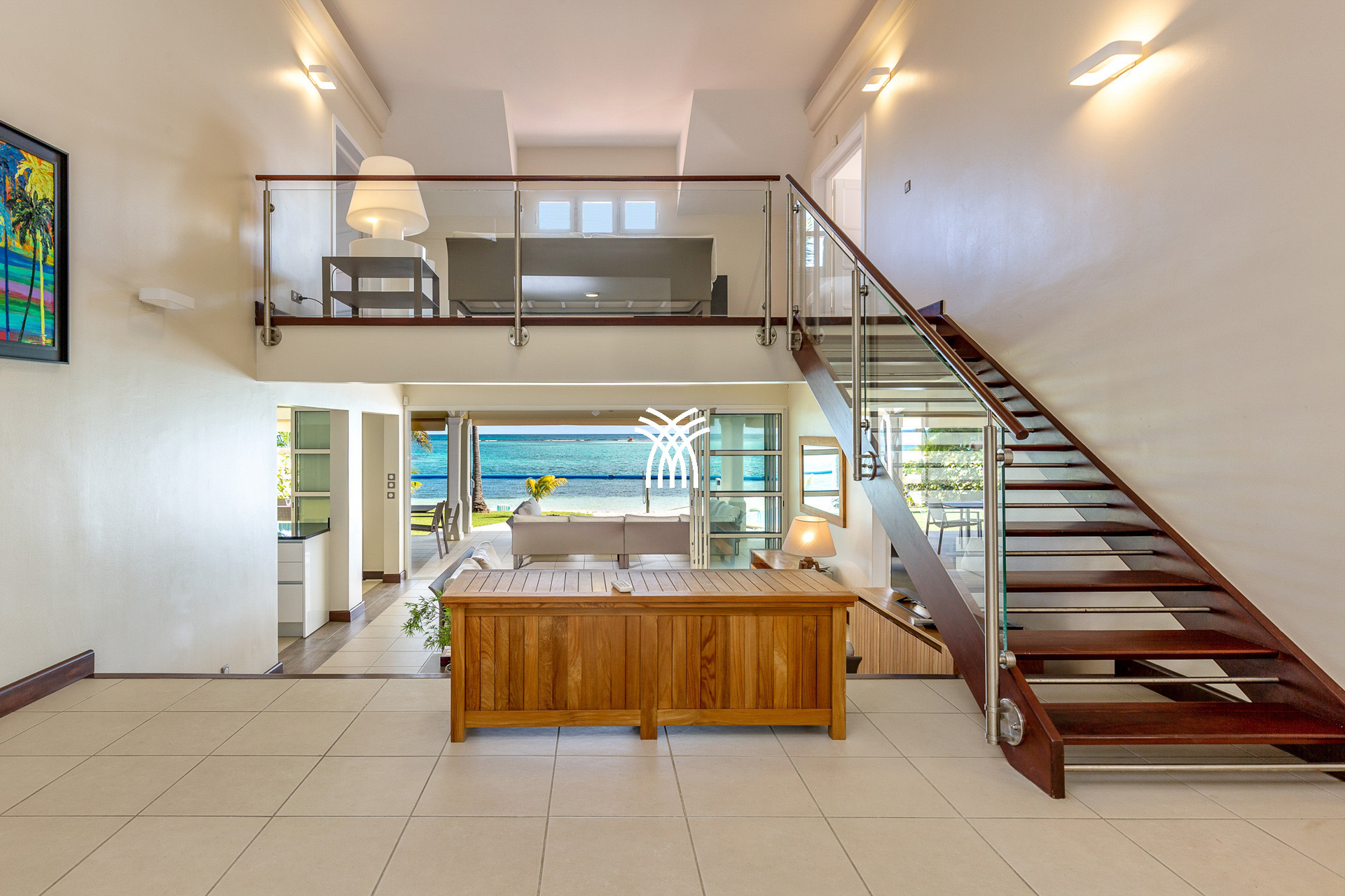 With its 350 m² including 100 m² of terrace, Villa Lagon Marine is designed to comfortably accommodate up to 12 people, offering a spacious and refined living space, perfect for holidays with family or friends. Upstairs, two air-conditioned bedrooms with private bathroom and toilet offer a peaceful setting, one equipped with two Queen Size beds and the other with a Queen Size bed and a single bed. A relaxation area with sofa and television completes this floor.