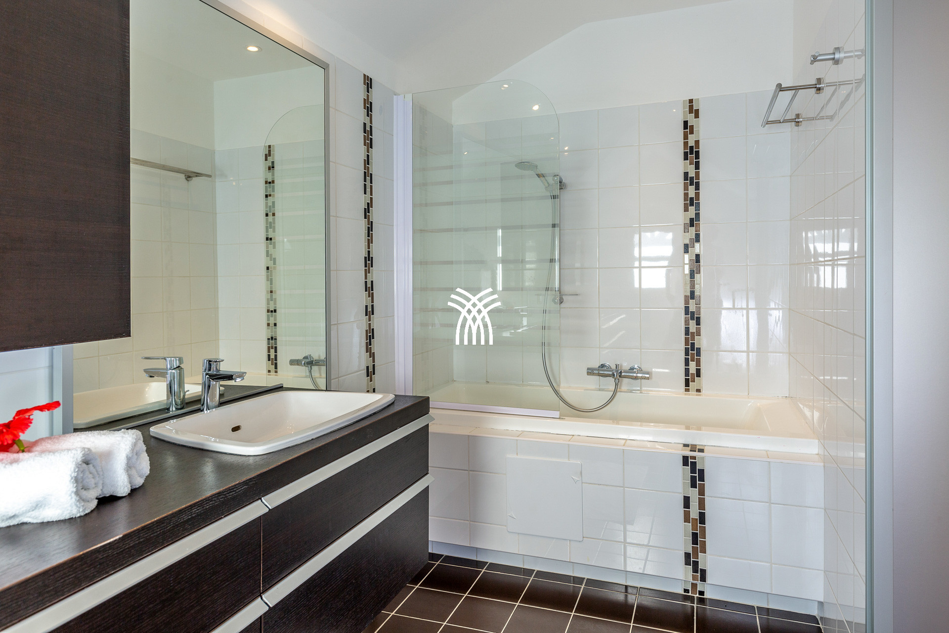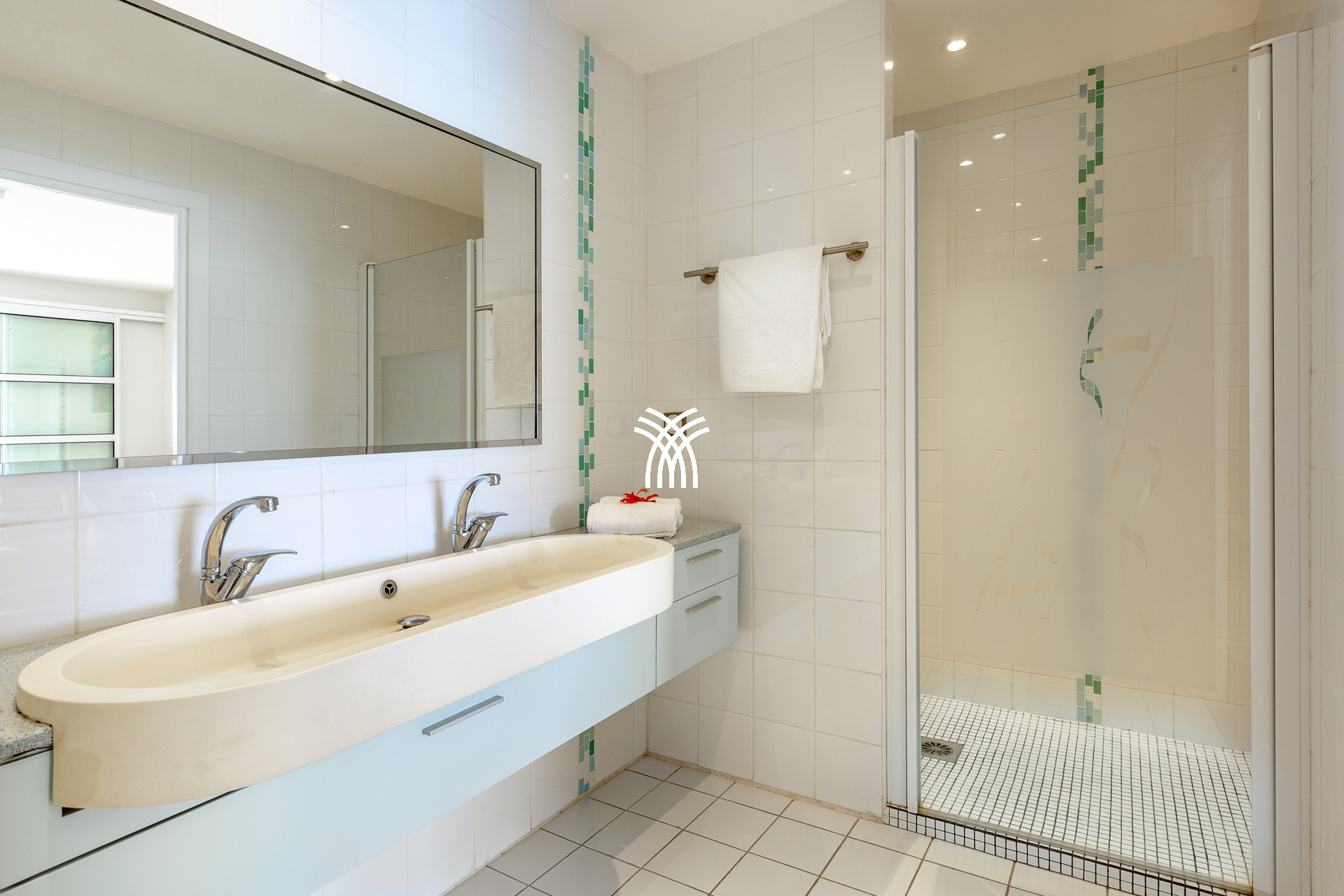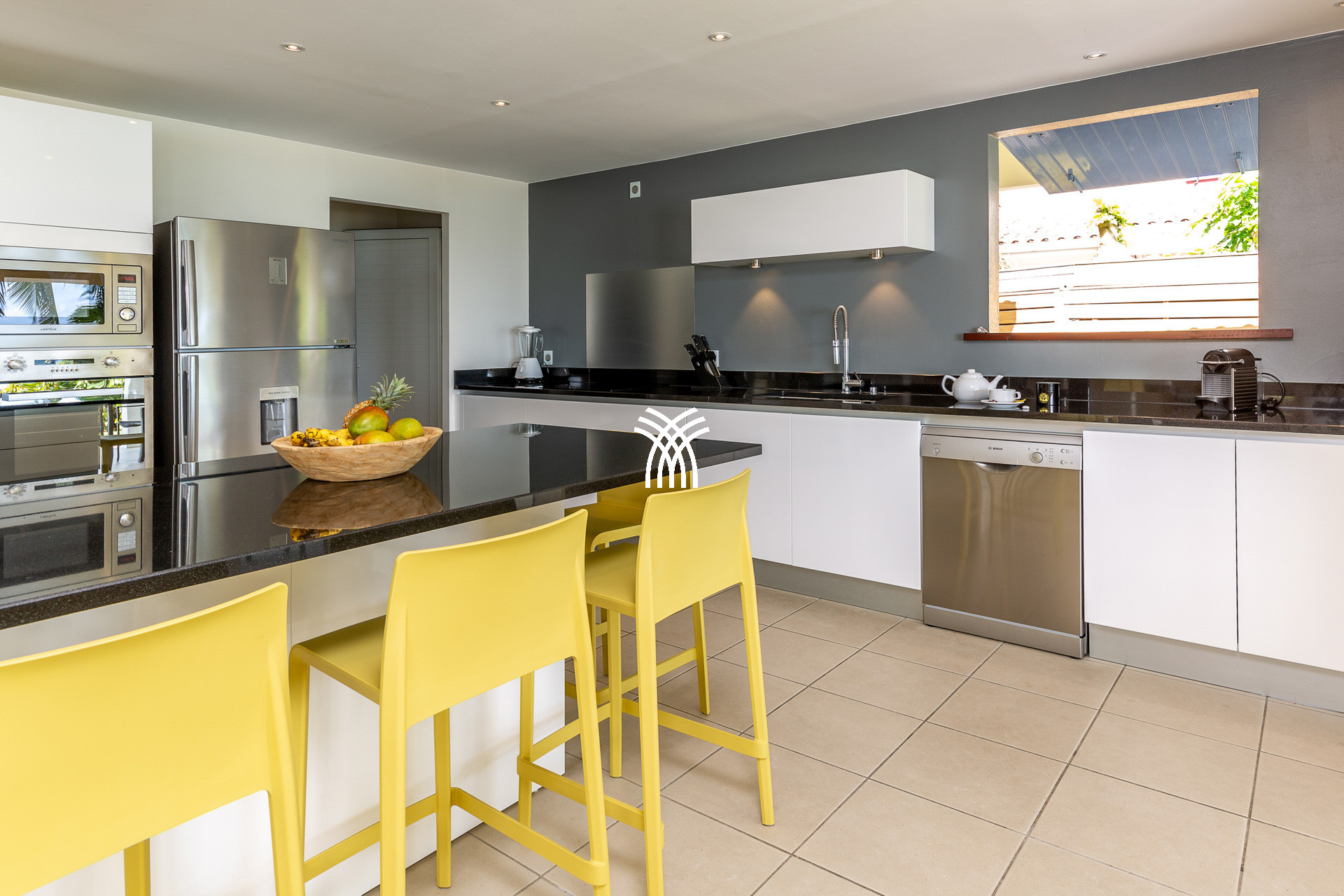 The villa’s premium amenities include two bedrooms with king-size beds (2m x 2m), two bedrooms with queen-size beds (180 x 200), and one bedroom with a queen-size bed that can be converted into two single beds (90 cm each). The property also boasts a full range of appliances, including an oven, microwave, espresso and Nespresso coffee machines, dishwasher, a large refrigerator, and a citrus juicer to craft delicious tropical cocktails. The utility room is equipped with a washer, dryer, and a safe.