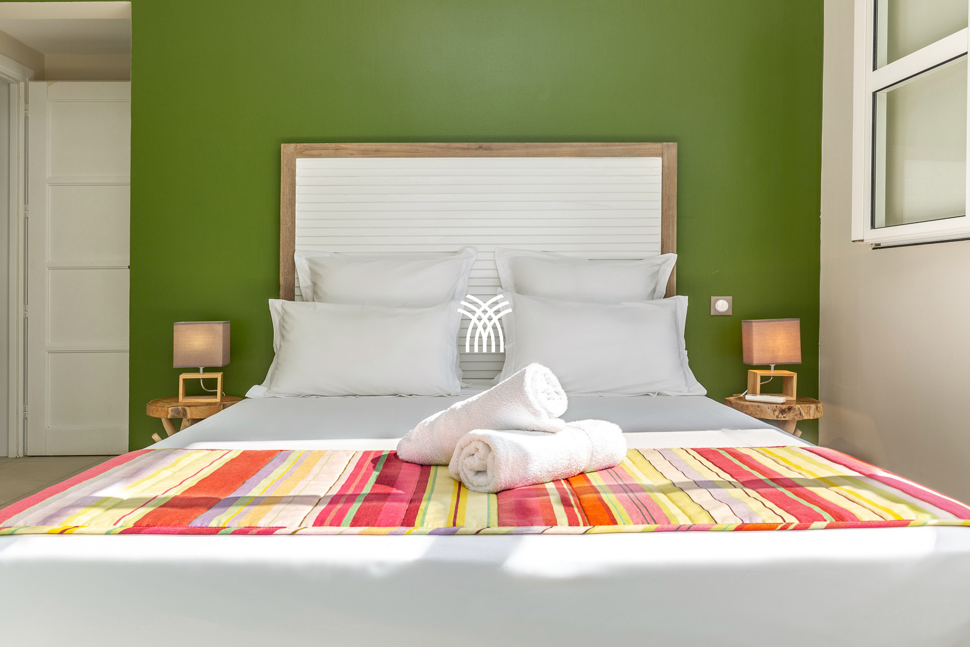 The main villa houses three air-conditioned bedrooms, each with its own private bathroom, offering a level of comfort suitable for families and groups of friends. The cottage, completely renovated, offers two elegant suites with private shower room and toilet, allowing everyone to enjoy total privacy while sharing an exceptional place. The open kitchen in exotic wood, extended by a friendly serving hatch and counter-style stools, becomes a true living heart to cook, discuss, taste and create memories.