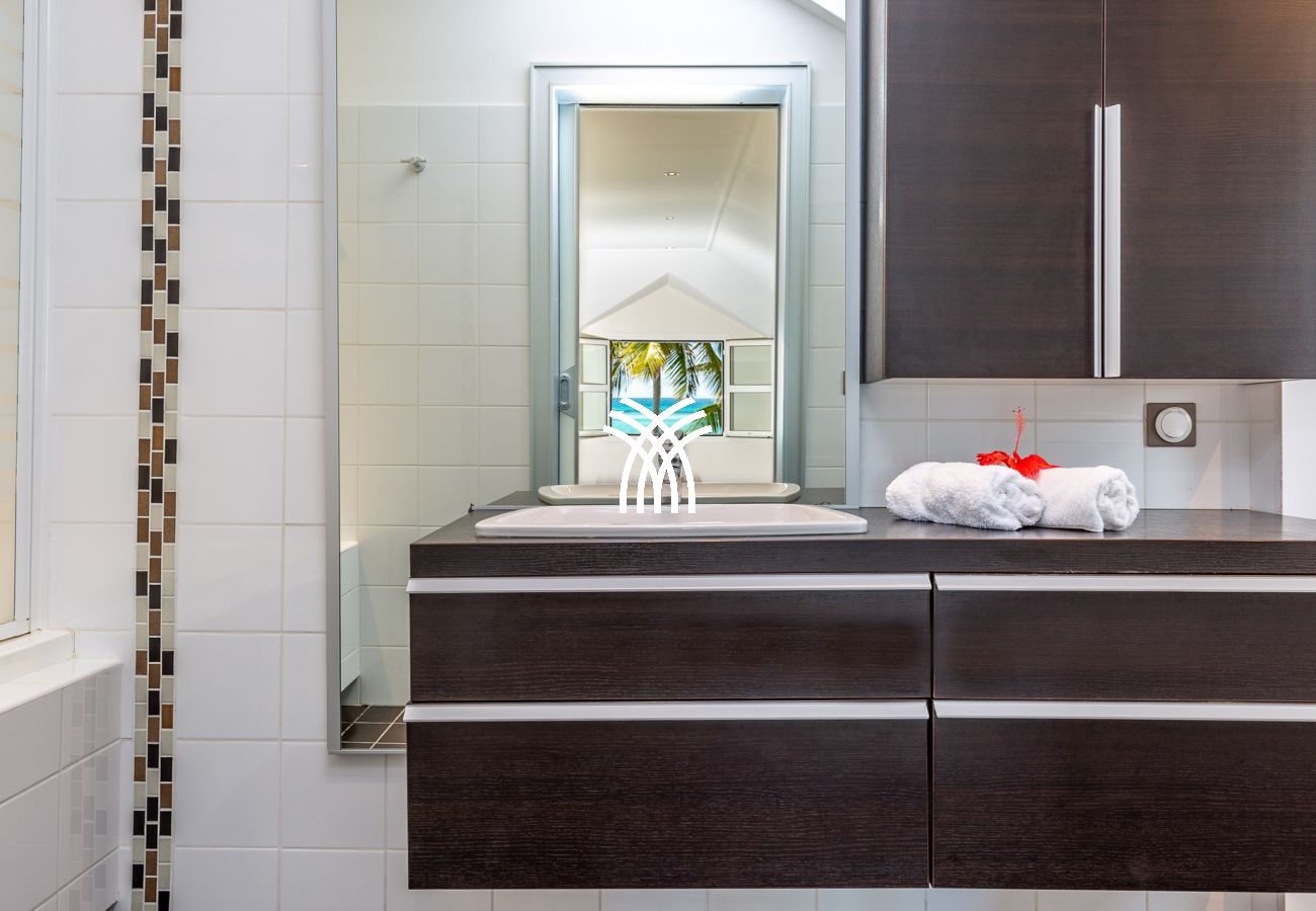 Classified 5 stars in Furnished Tourism by Atout France, Villa Lagon Marine is a true luxury haven nestled in the heart of the prestigious “Le Hamak” residence in Saint-François. Offering an idyllic setting, this sumptuous waterfront villa has direct access to a private beach that borders the famous turquoise lagoon of Saint-François. Ideally located, it allows you to walk to the 18-hole golf course, the lively village, the marina, restaurants and the many nautical and leisure activities offered by this popular destination in Guadeloupe.