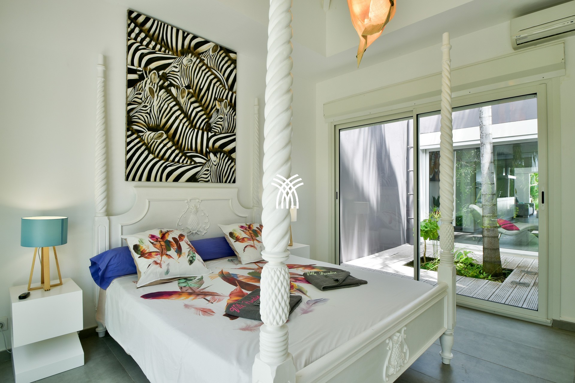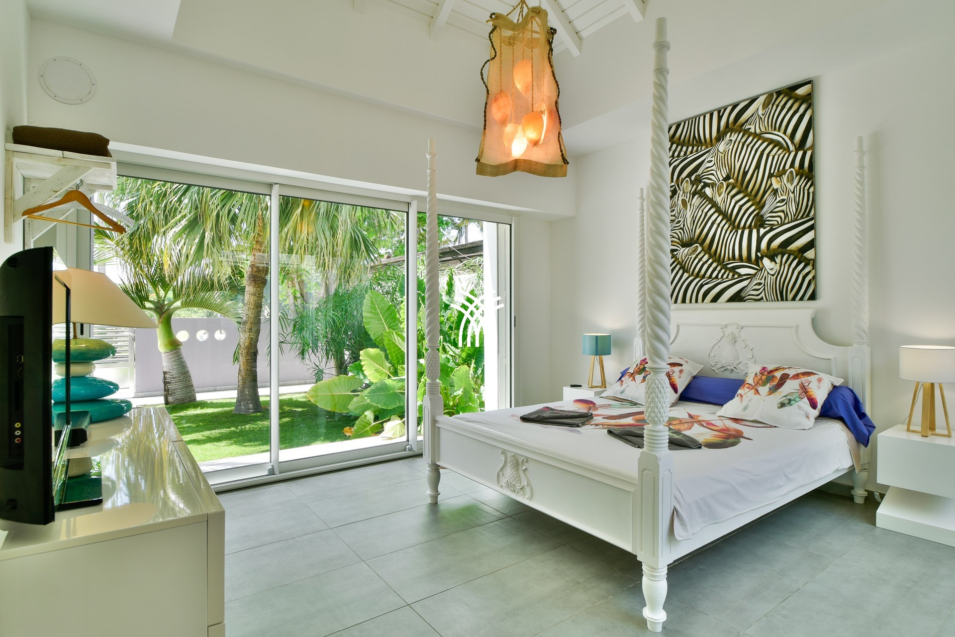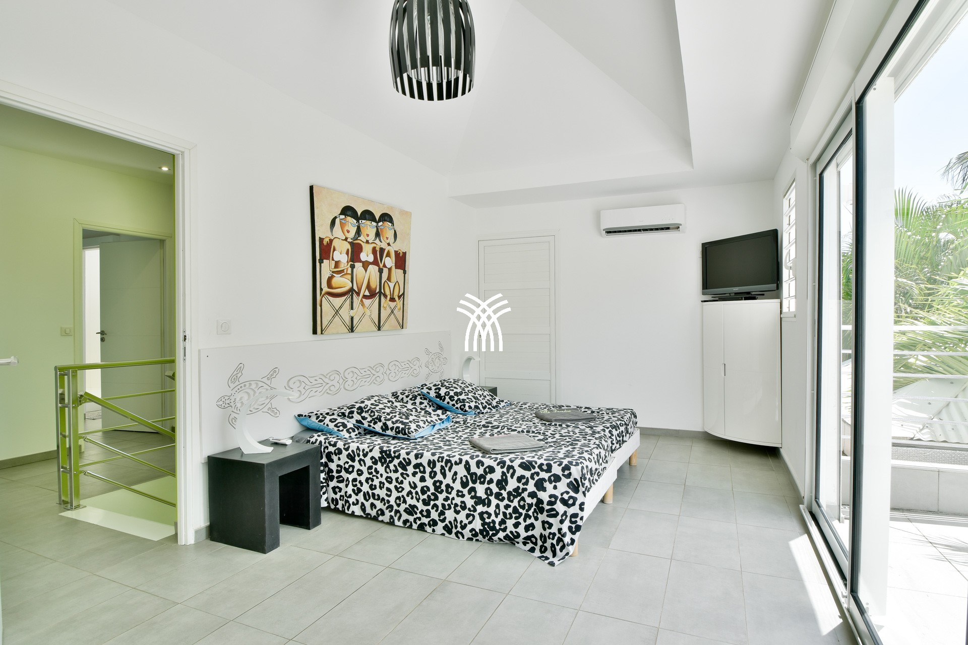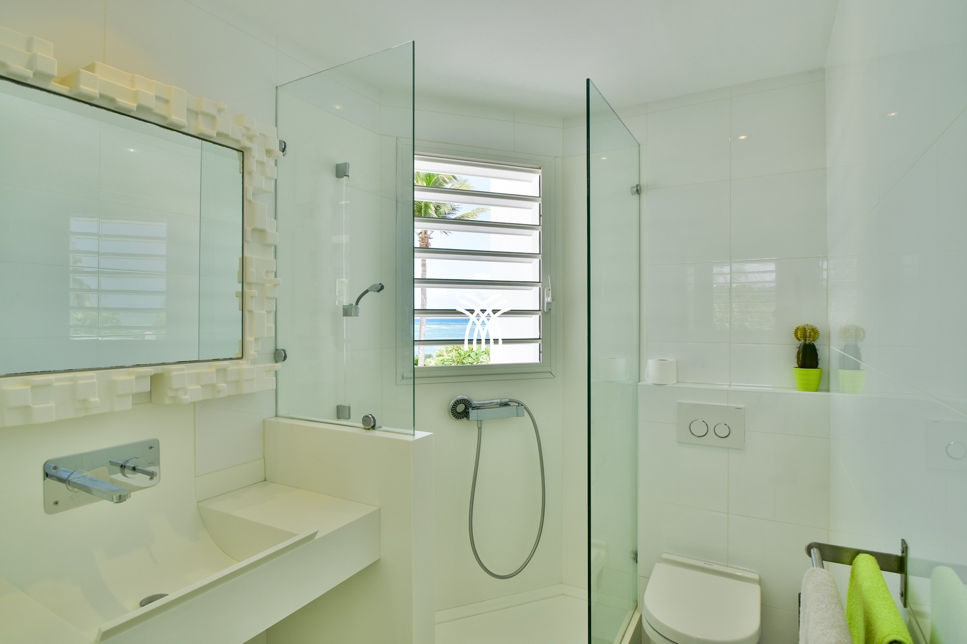 The single-storey Abawak villa features 4 air-conditioned bedrooms tastefully decorated to offer comfort and serenity. The main master suite is a true cocoon with a king-size bed, walk-in closet, and private bathroom. A second master suite offers a unique experience with an outdoor shower under the starry sky of Guadeloupe.