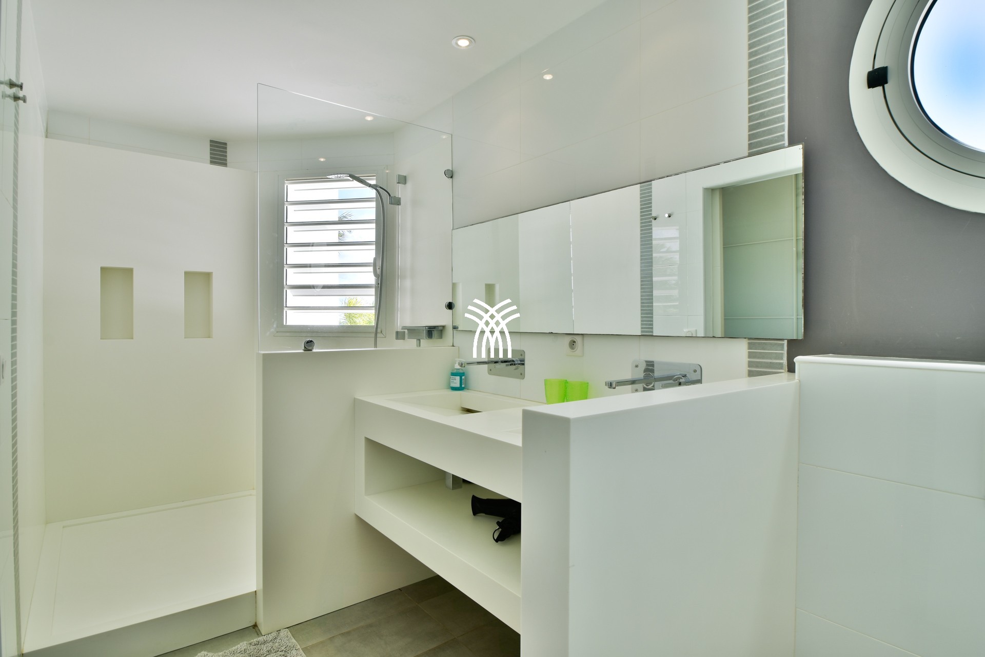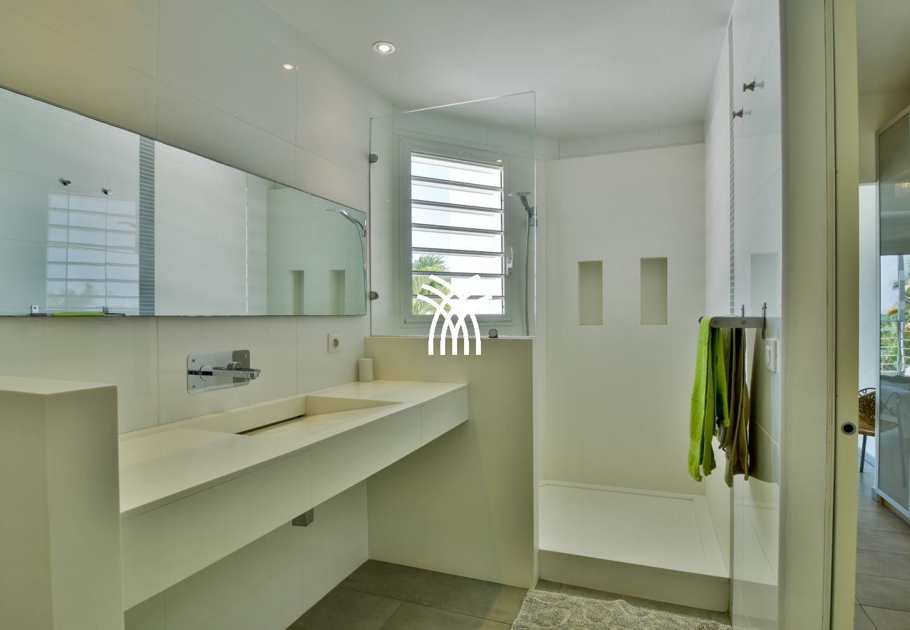 Discover Abawak, a superb villa for rent in Guadeloupe, ideally located in Saint-François, just a few minutes from the marina, golf course, and paradise beaches. This luxury villa rental can accommodate up to 8 people in a peaceful and refined setting.