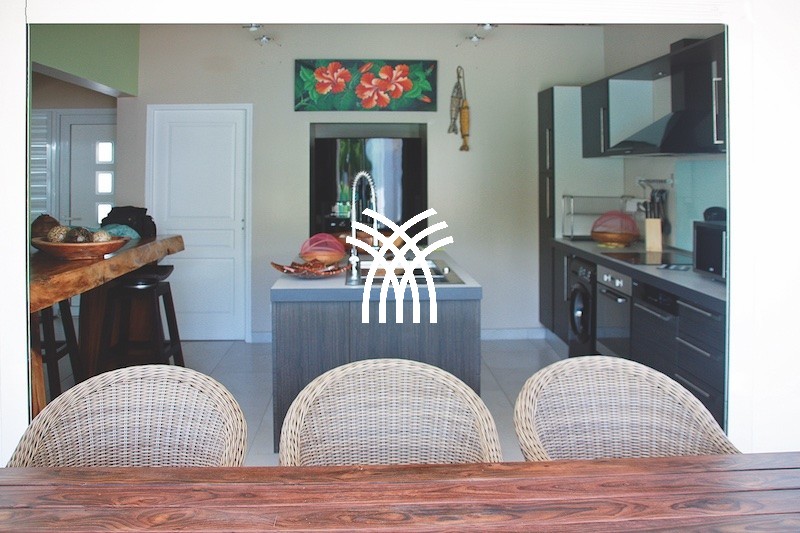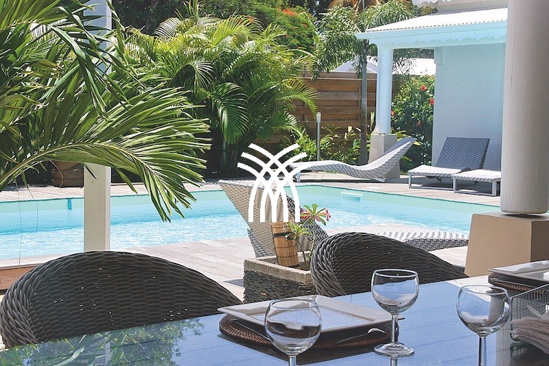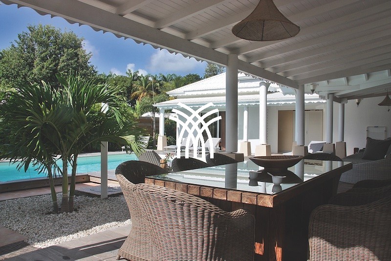 The outdoor space of Villa Abawak is ideal for gathering with family or friends. The covered terrace allows sharing meals with a view of the salt water pool and tropical garden. The private carbet is perfect for relaxing around a ti-punch or local specialties.