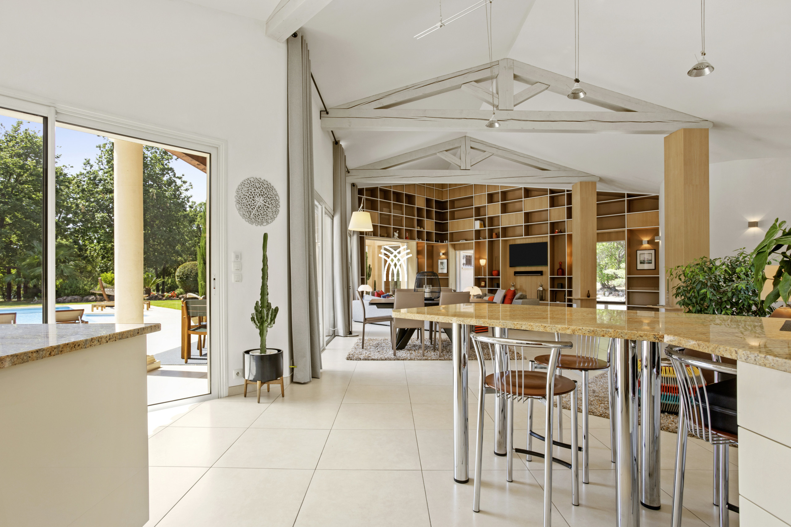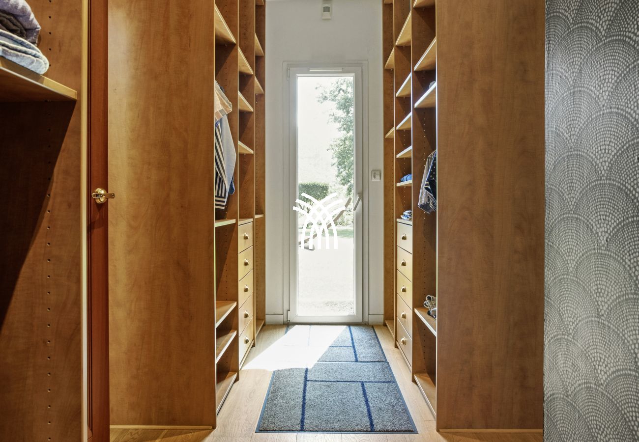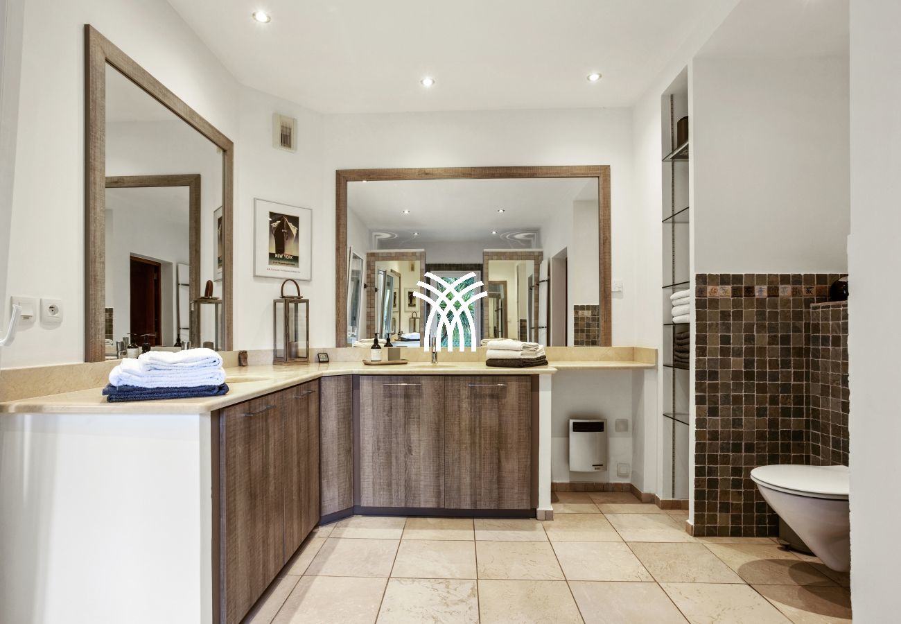 Air-conditioned villa 5 rooms of 300m²: Living room / Dining room with TV (Sat), CD / DVD, Internet, HIFI centralized throughout the villa (SONOS). Open fitted kitchen. Guest WC. Master bedroom with 1 King Size bed (180), TV (Sat), Dressing room, Shower room with double shower / WC, exit to the swimming pool. 1 Bedroom with 1 double bed (160), Dressing room, TV (Sat), Bathroom with exit to the swimming pool. 1 Bedroom with 1 double bed (160), TV (Sat), Shower room. Separate WC. 1 Bedroom with 1 double bed (2x80), TV (Sat), exit to the swimming pool, Shower room / WC. Electricity extra. Classification 5 ***** in furnished tourist accommodation since June 2015. Filming location of episode n ° 134 of the detective series "Research section" of TF1.