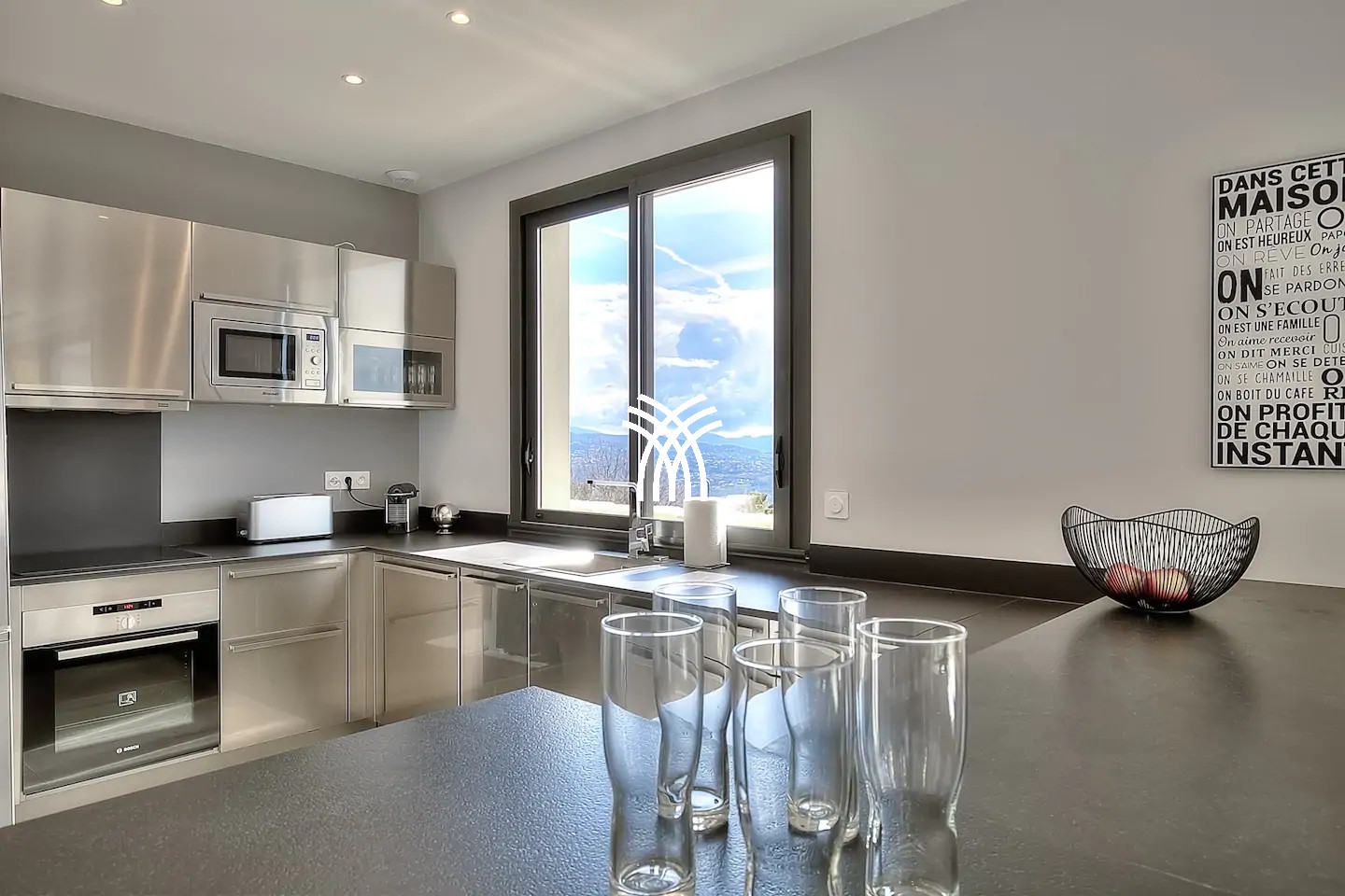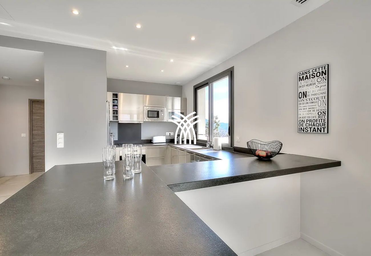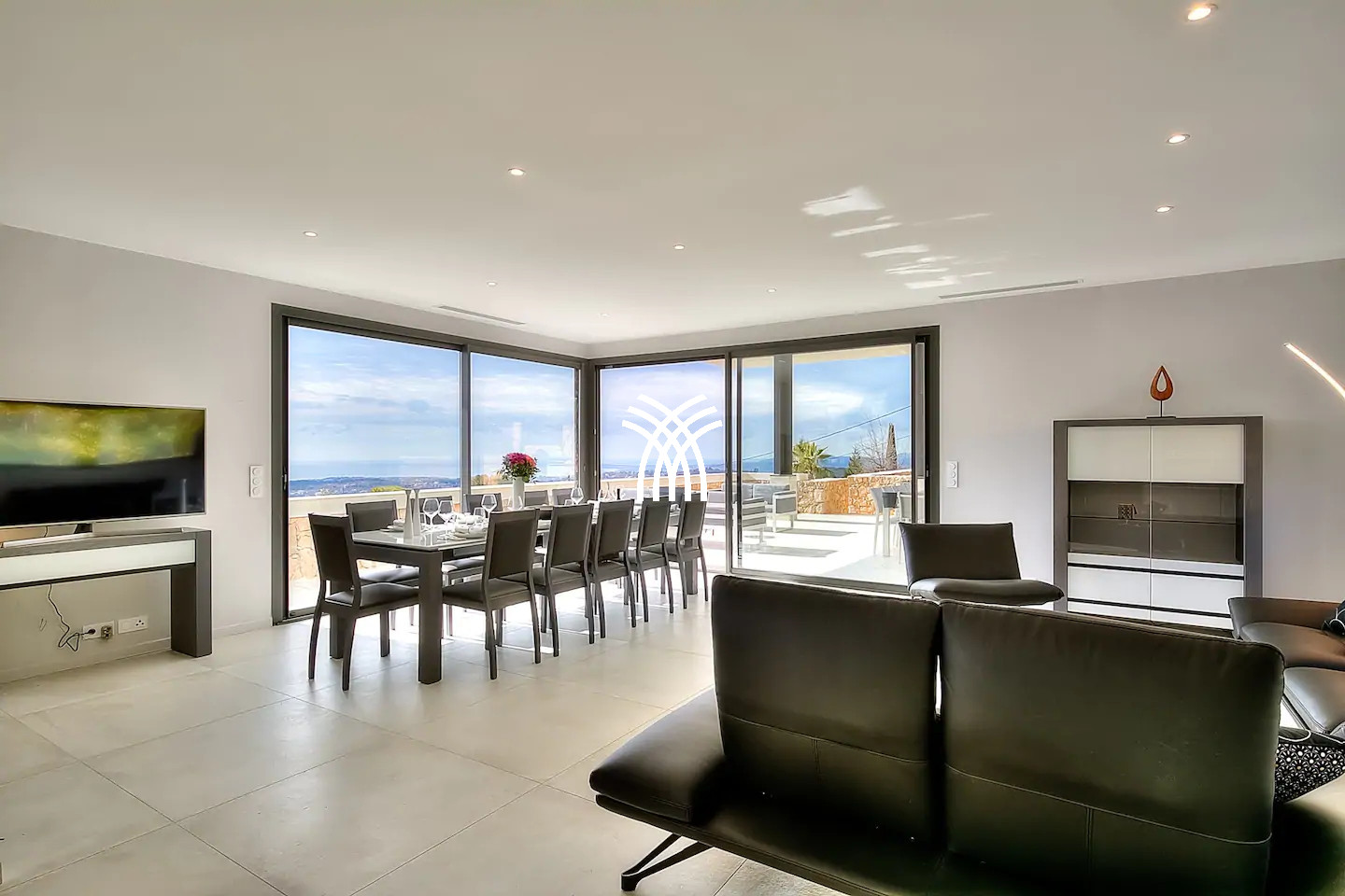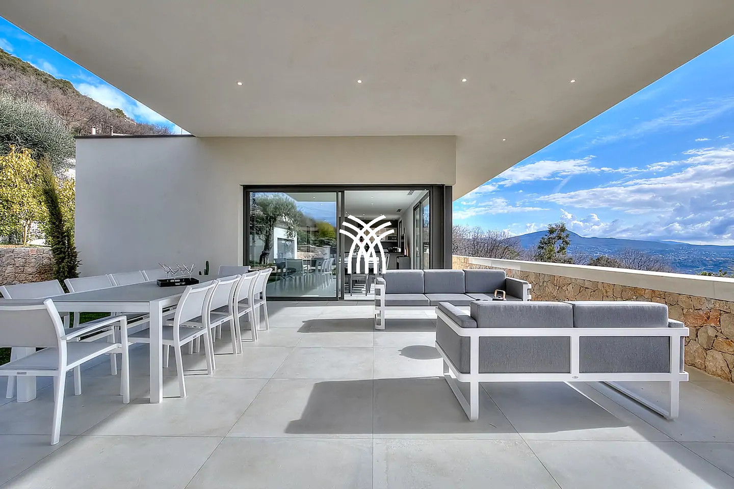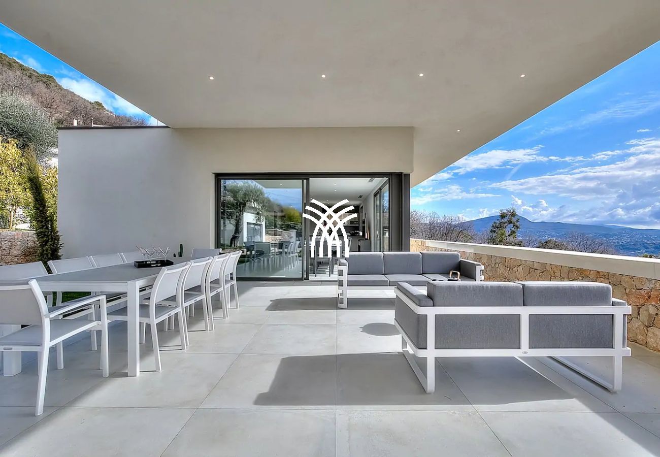 Villa Mastro, located in Saint-Jeannet on the French Riviera, is a luxurious contemporary villa offering an exceptional panoramic view extending from Cap d'Antibes to Nice. With 300 m² of space, this villa combines elegance and comfort in an idyllic setting, ideal for an unforgettable stay with family or friends.
