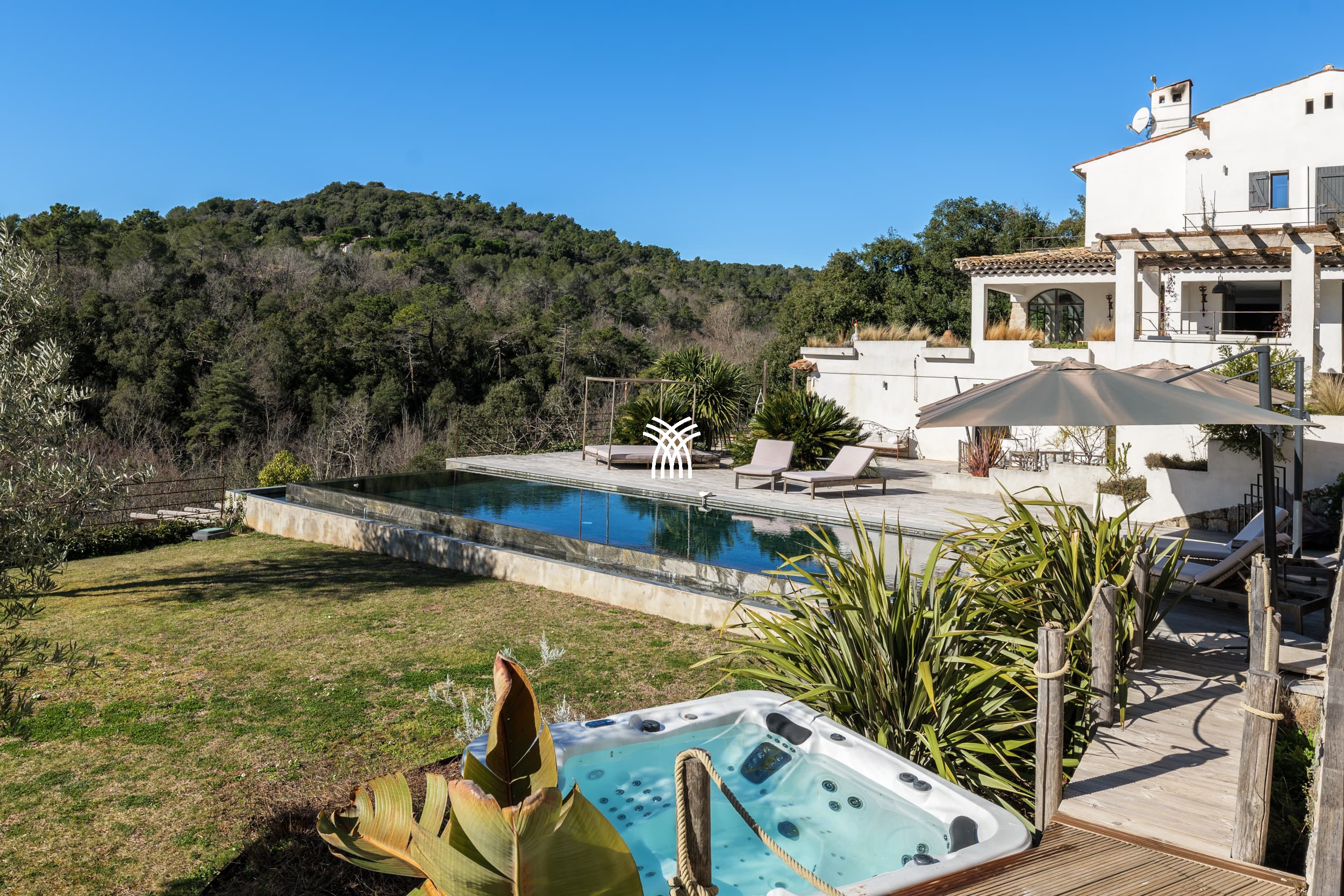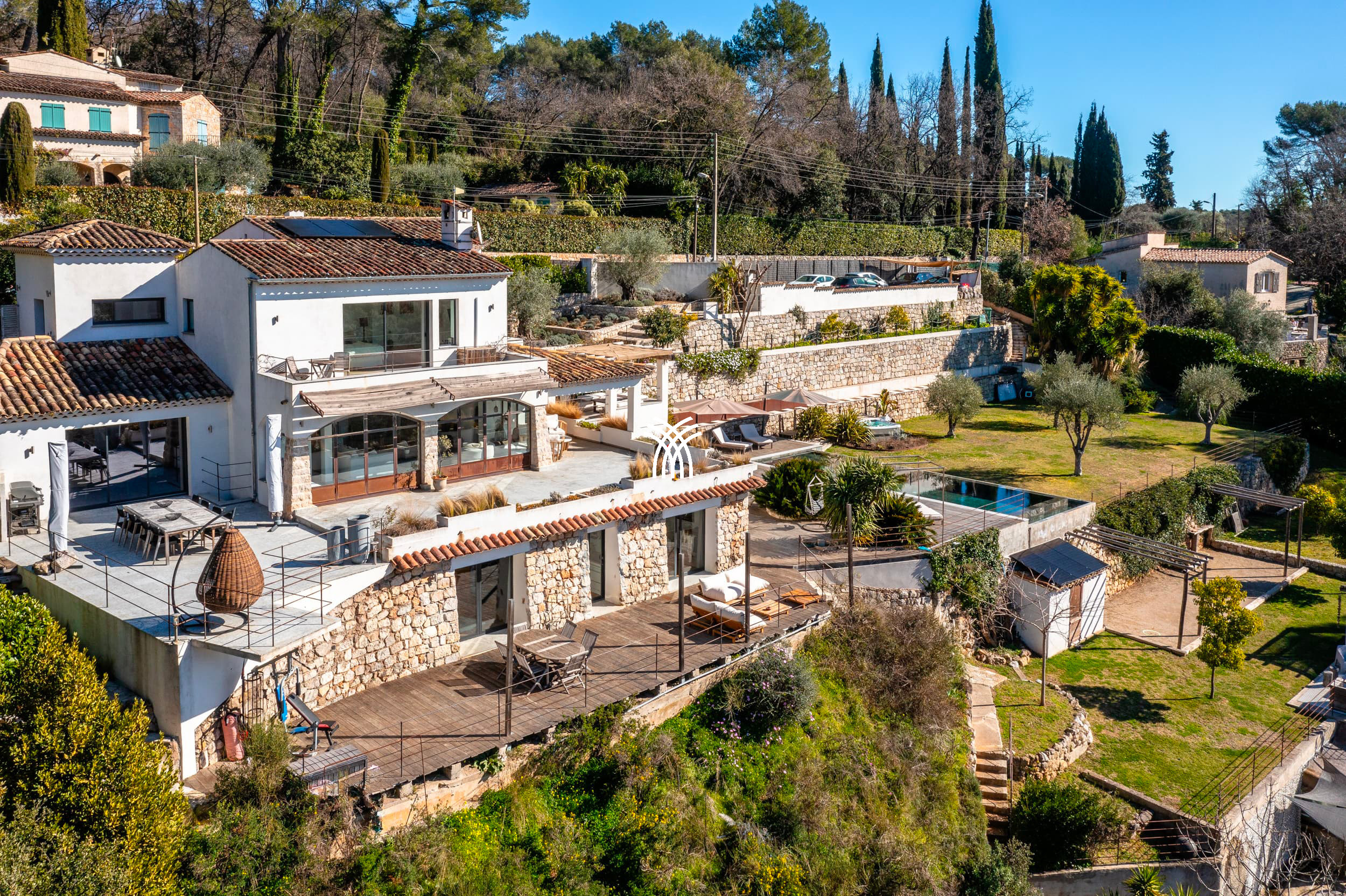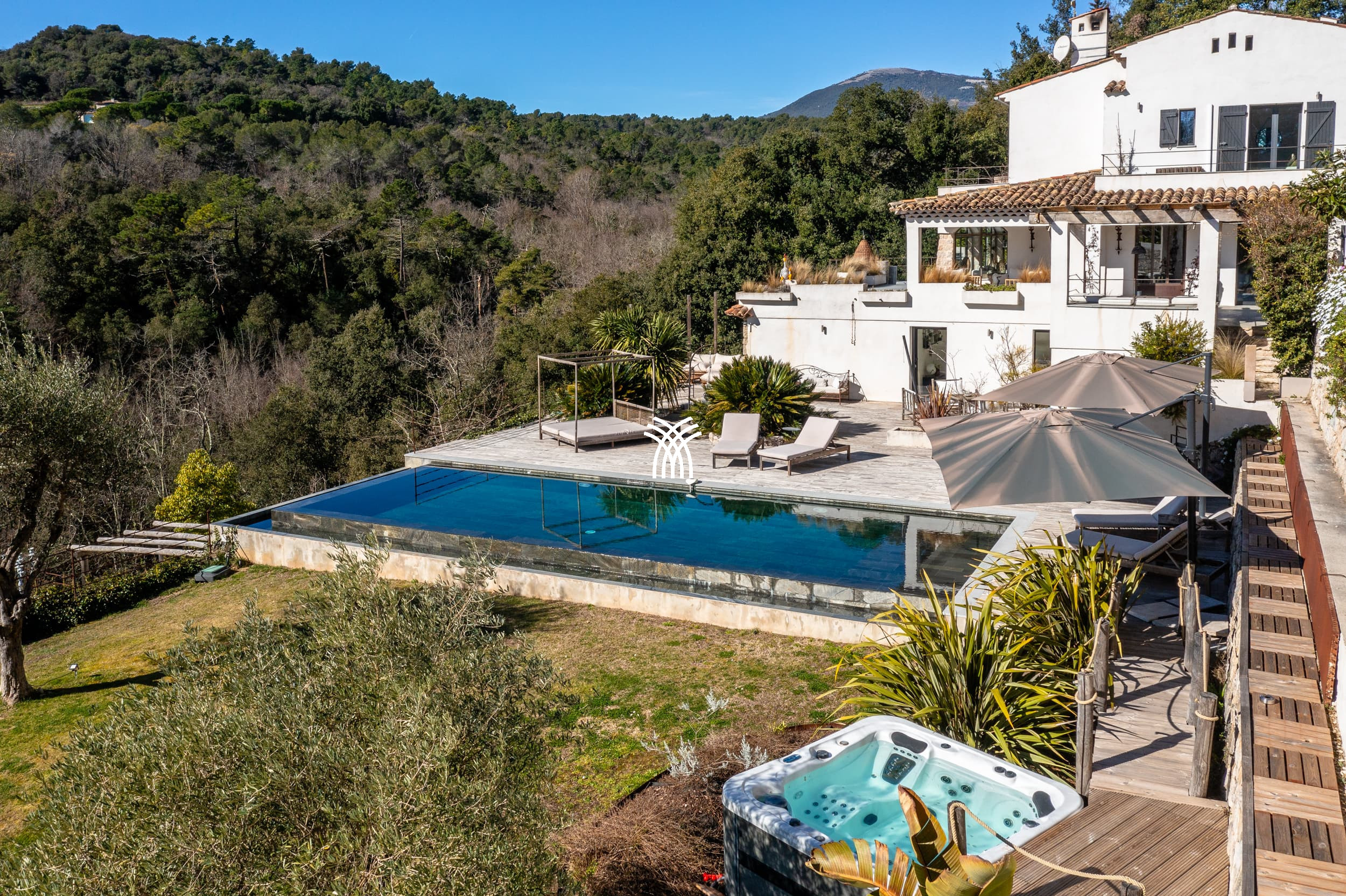 Near the prestigious village of Saint-Paul de Vence, Domaine Anne invites you to experience a unique moment combining luxury, comfort and authenticity. Nestled in a 5000 m² green setting, this 300 m² villa offers an unobstructed view of the Provençal hills, the forest and the Cap d'Antibes.