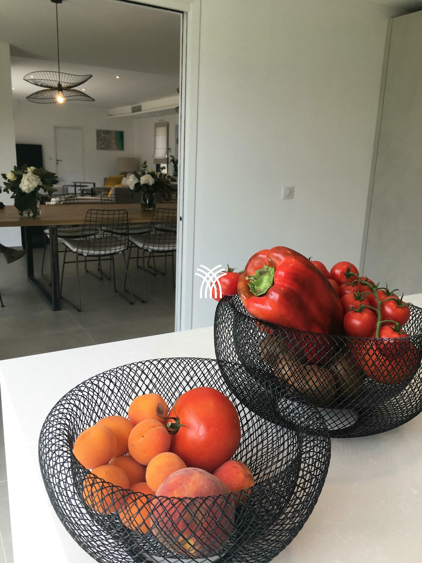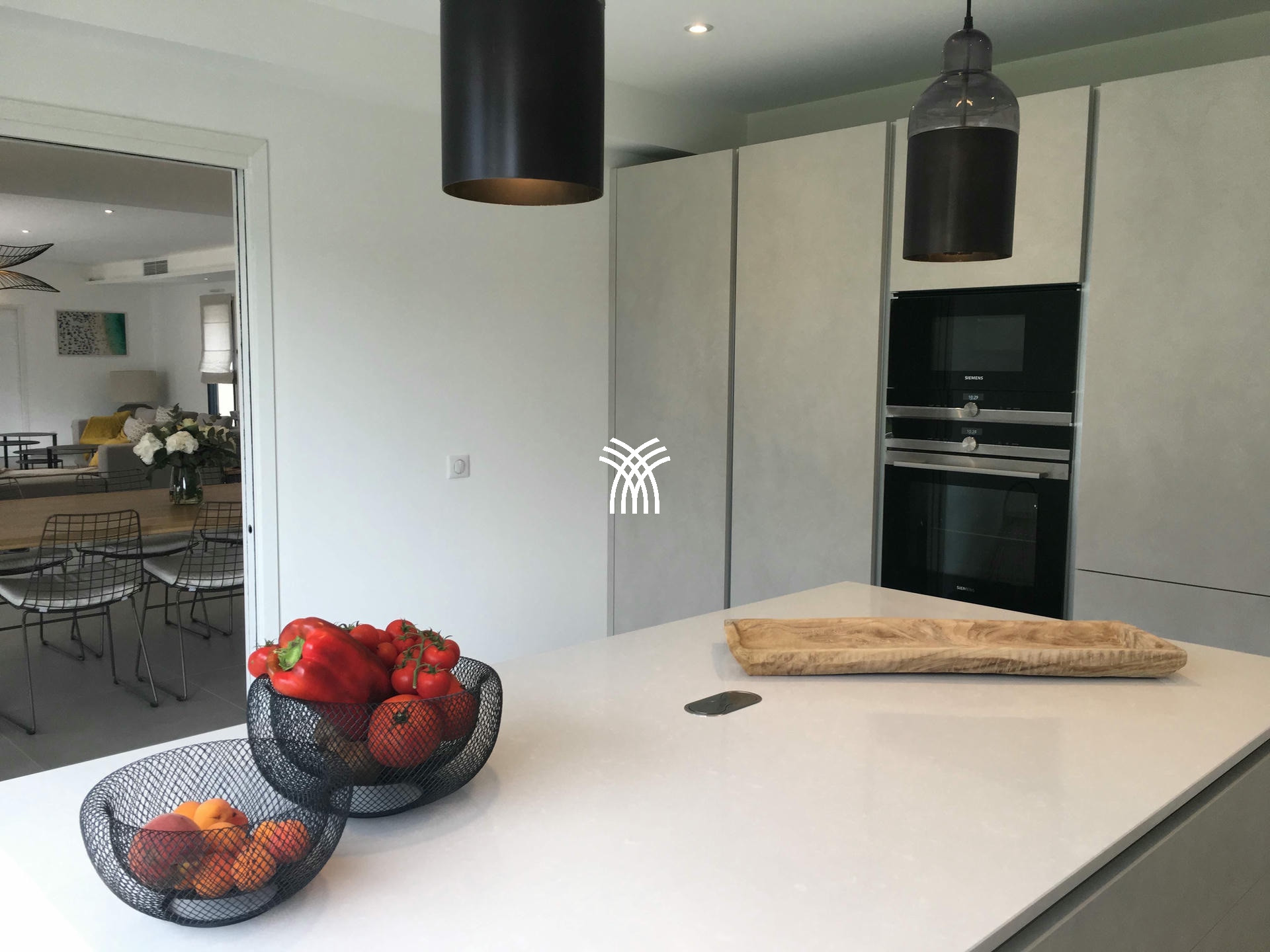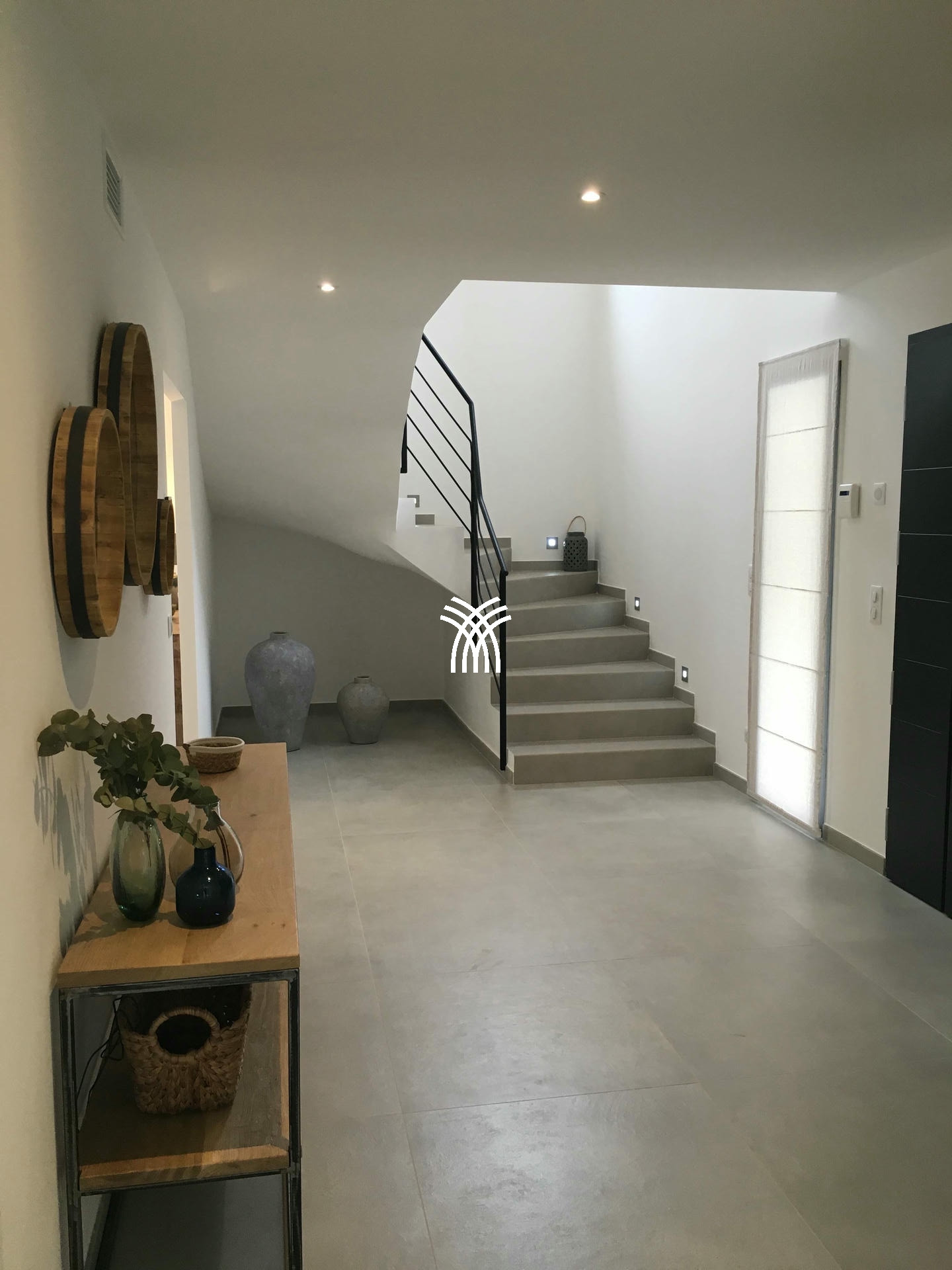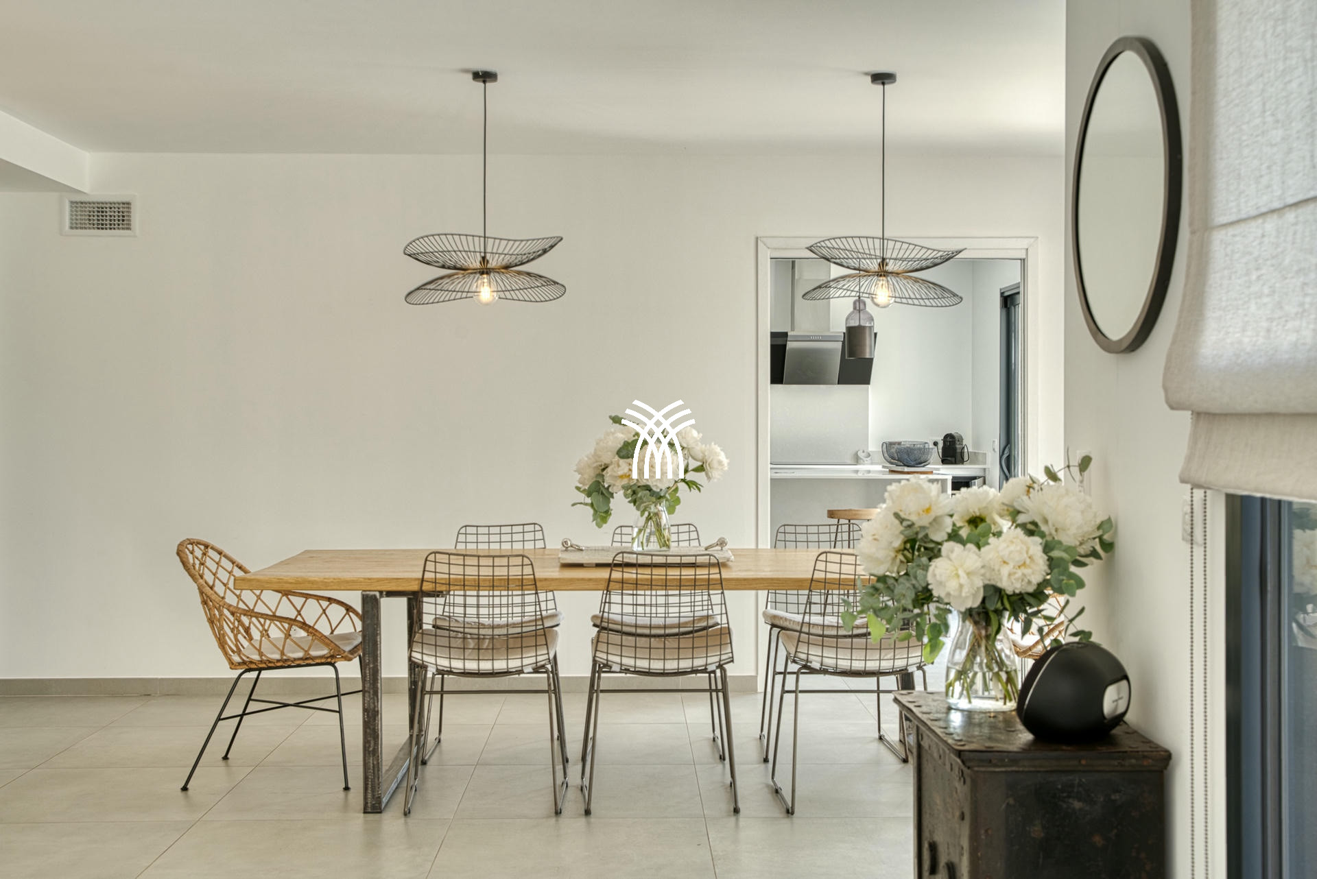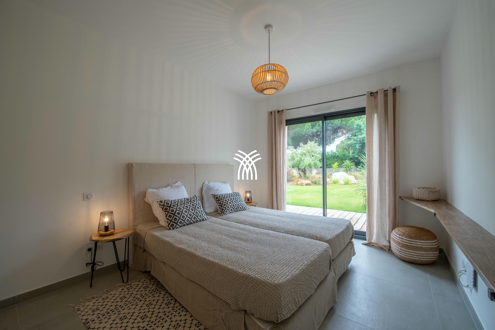 Equipped with six bedrooms and six bathrooms, the villa accommodates up to 12 travelers in bright and refined spaces, designed for relaxation and shared moments. The interior design blends contemporary sobriety with Mediterranean touches, creating a warm and soothing atmosphere.