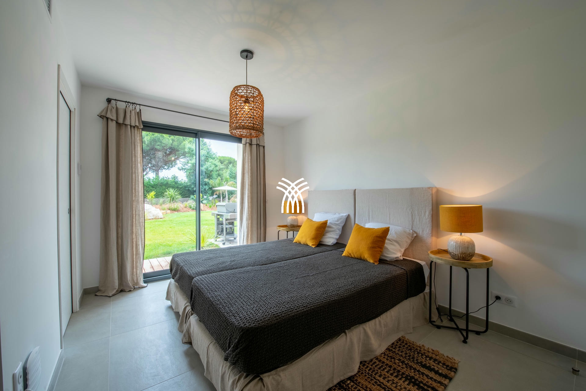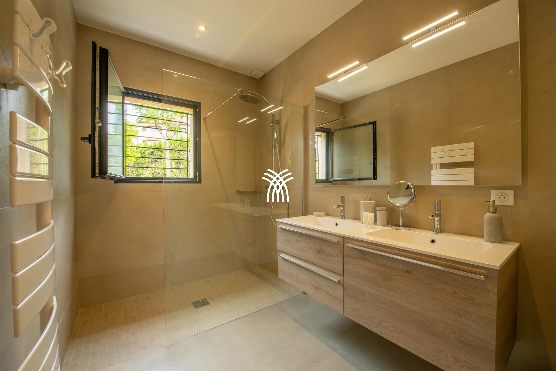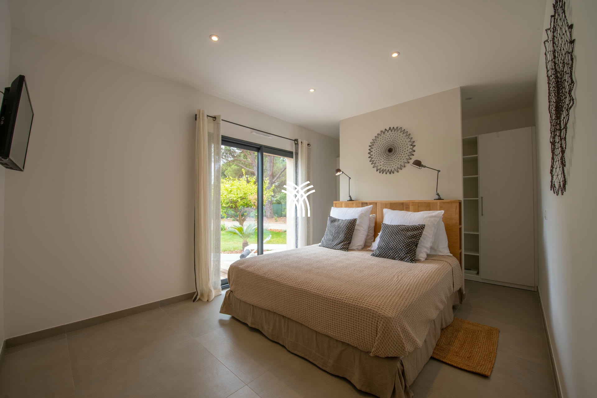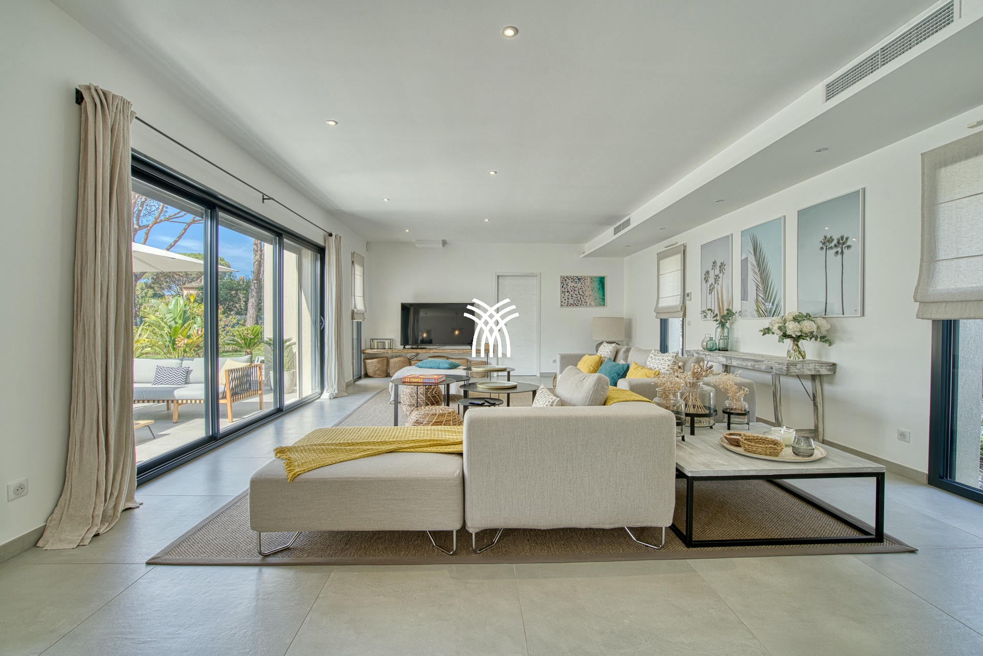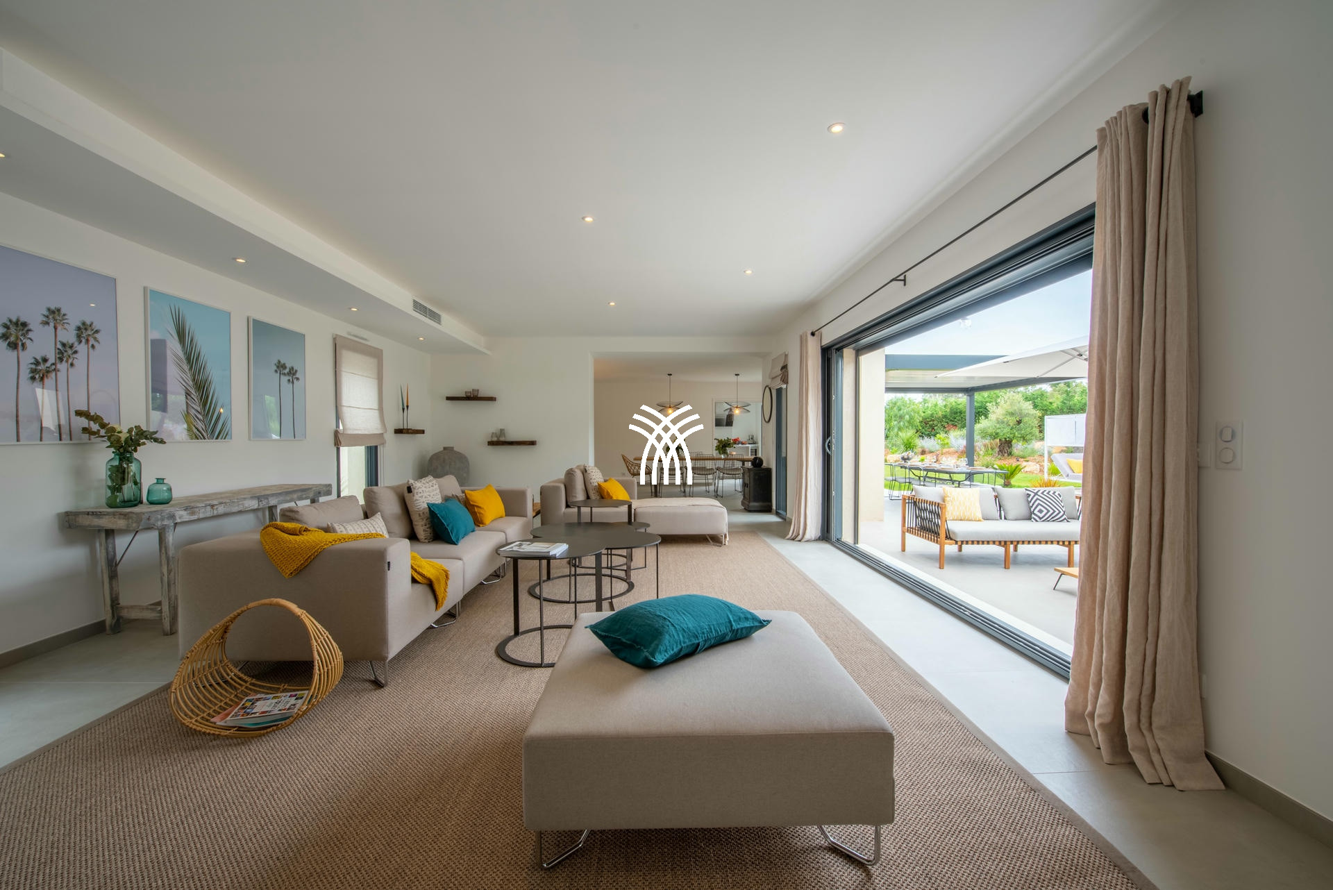 The villa is appealing with its high-end amenities: staff room, large laundry room, cold room, barbecue, fireplace, air conditioning, video surveillance system, Wi-Fi, as well as access to the domain's tennis courts. Children are welcome in a secure and privileged environment, with a sea view in the background.